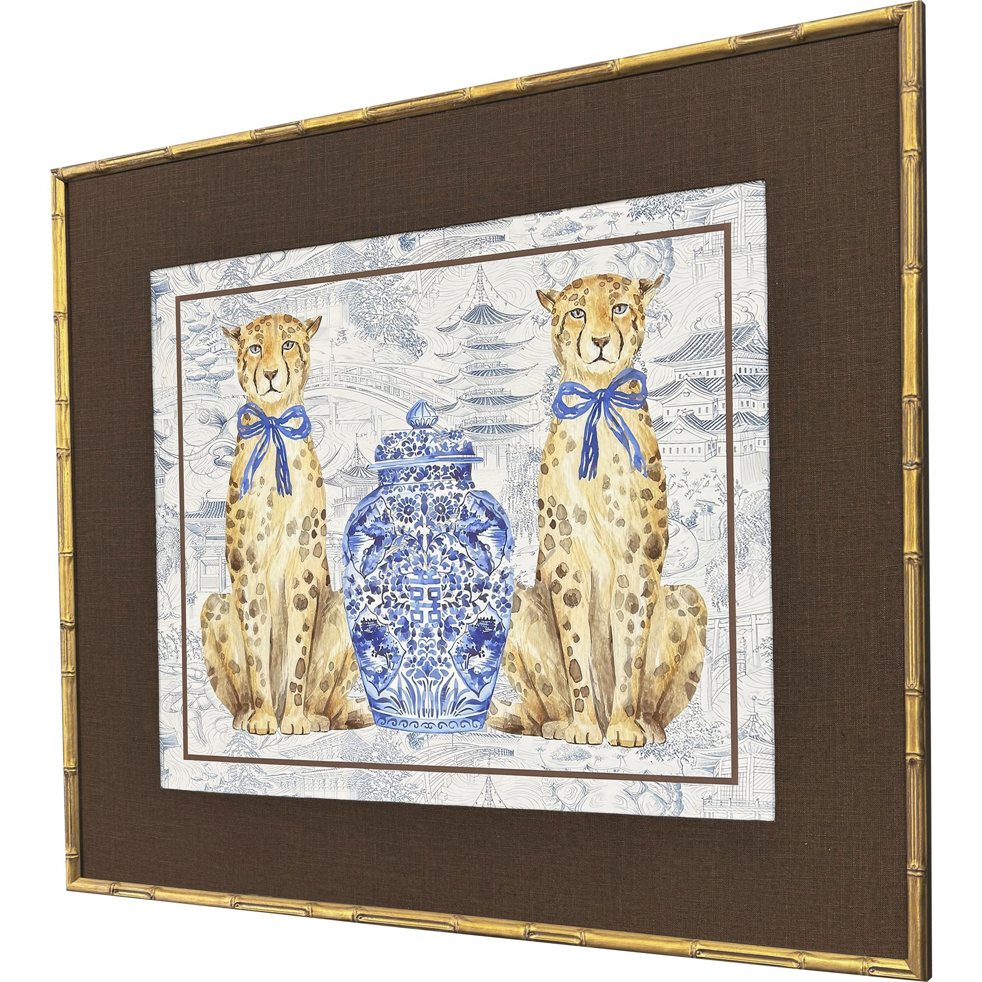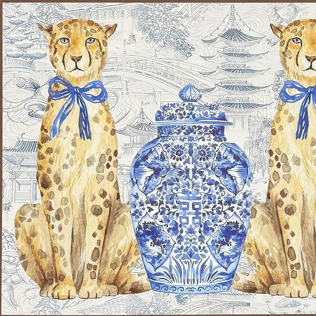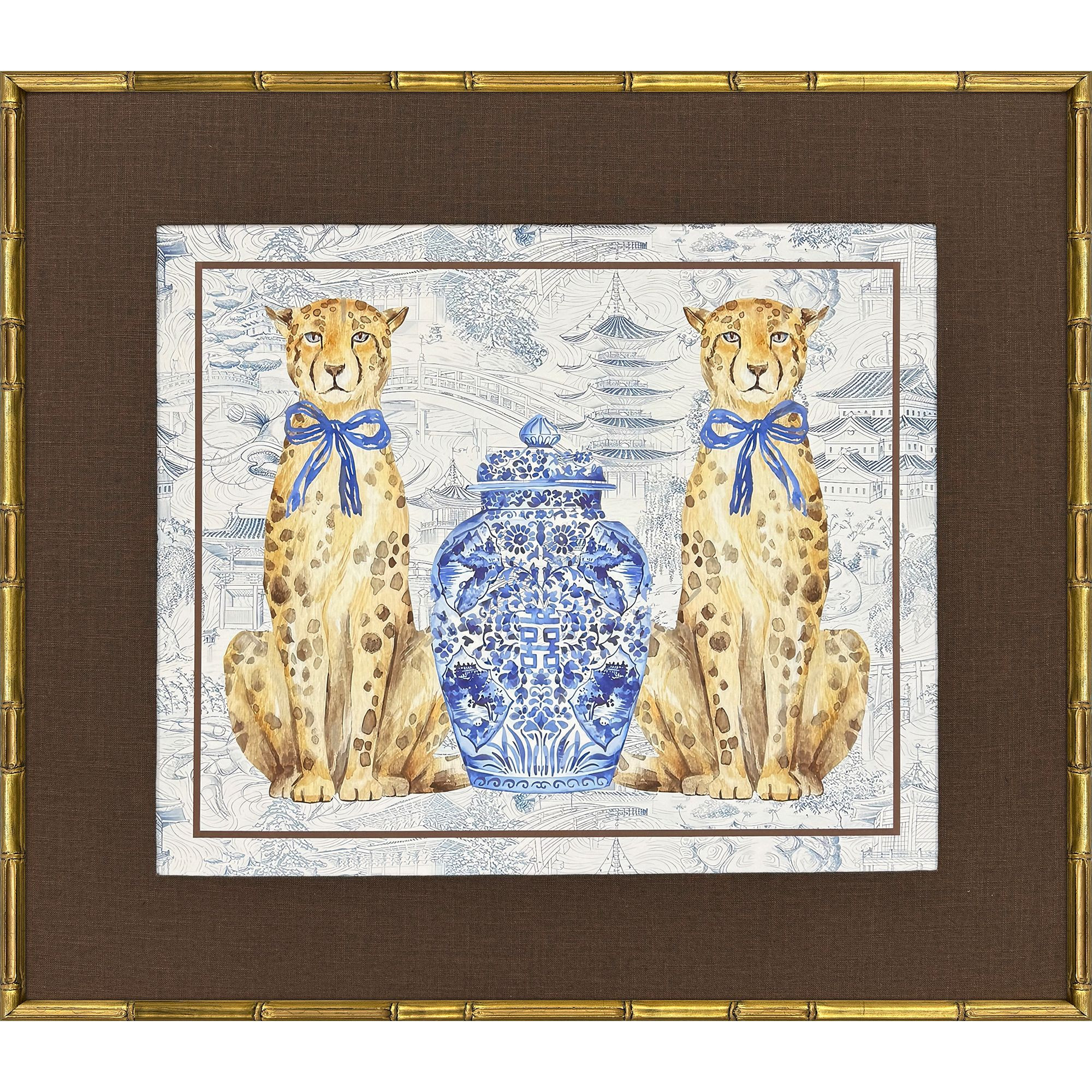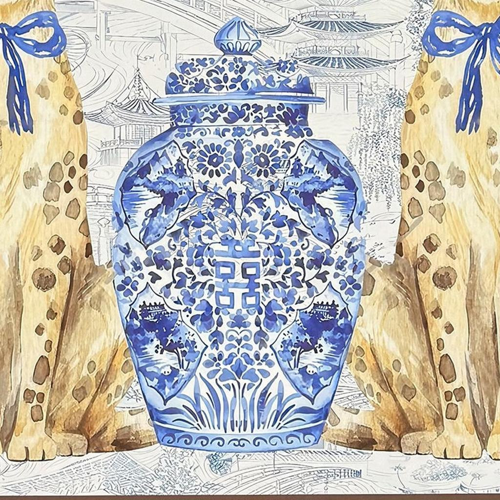 Leopards,Vases,Porcelain,Exclusive,Giclee,Hand Finished,Glass Front,Oriental Leopards |
