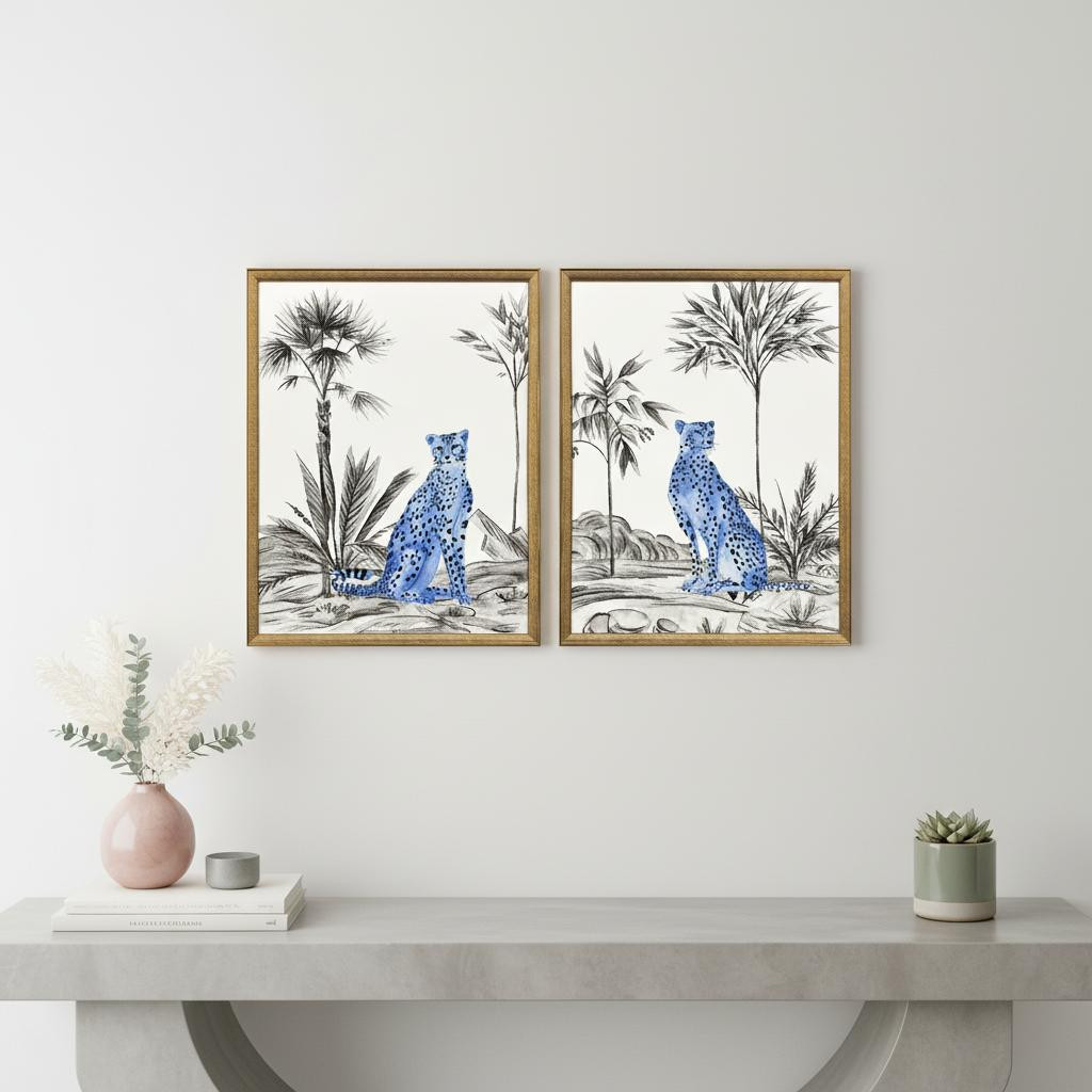 Add an air of fashion to your room and rejuvenate the space with this set of two neon prowl gold framed wall art. Bring a little bit of the exotic jungle indoors with this good looking leopard wall art. Reproduced for you on paper, this hanging decorative accent will be a trendy and fashionable way to dress your walls. Adding this hanging wall art to your space to make your room feel more finished and attractive. Utilize this opportunity to create a focal point in the room with this fabulous wall decor option. 27.00-inch h x 21.00-inch w x 2.00-inch d.