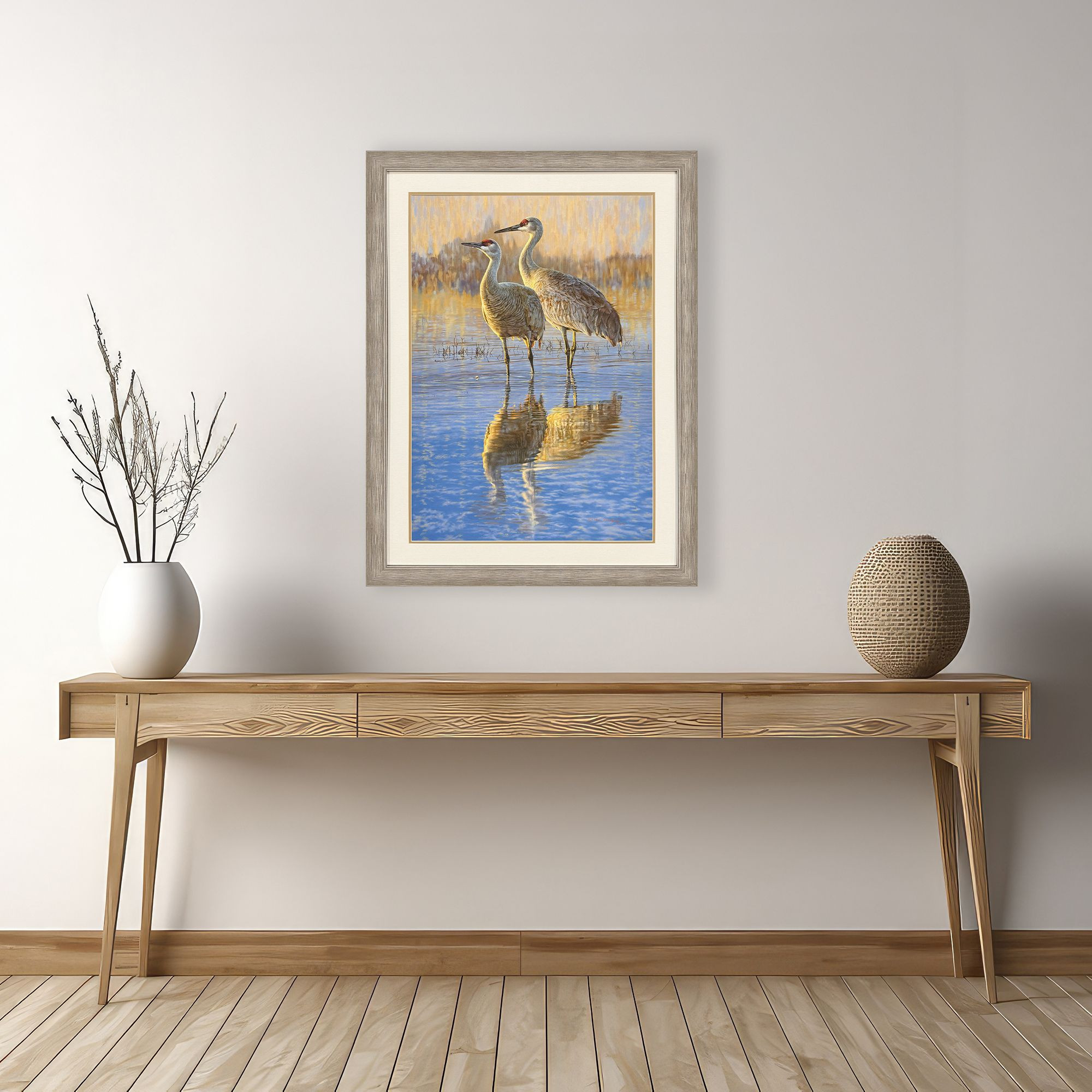 Birds,Egrets,Marshes,Shores,Herons,Giclee,Matted Image,Glass Front,Hand Assembled,Reflection |