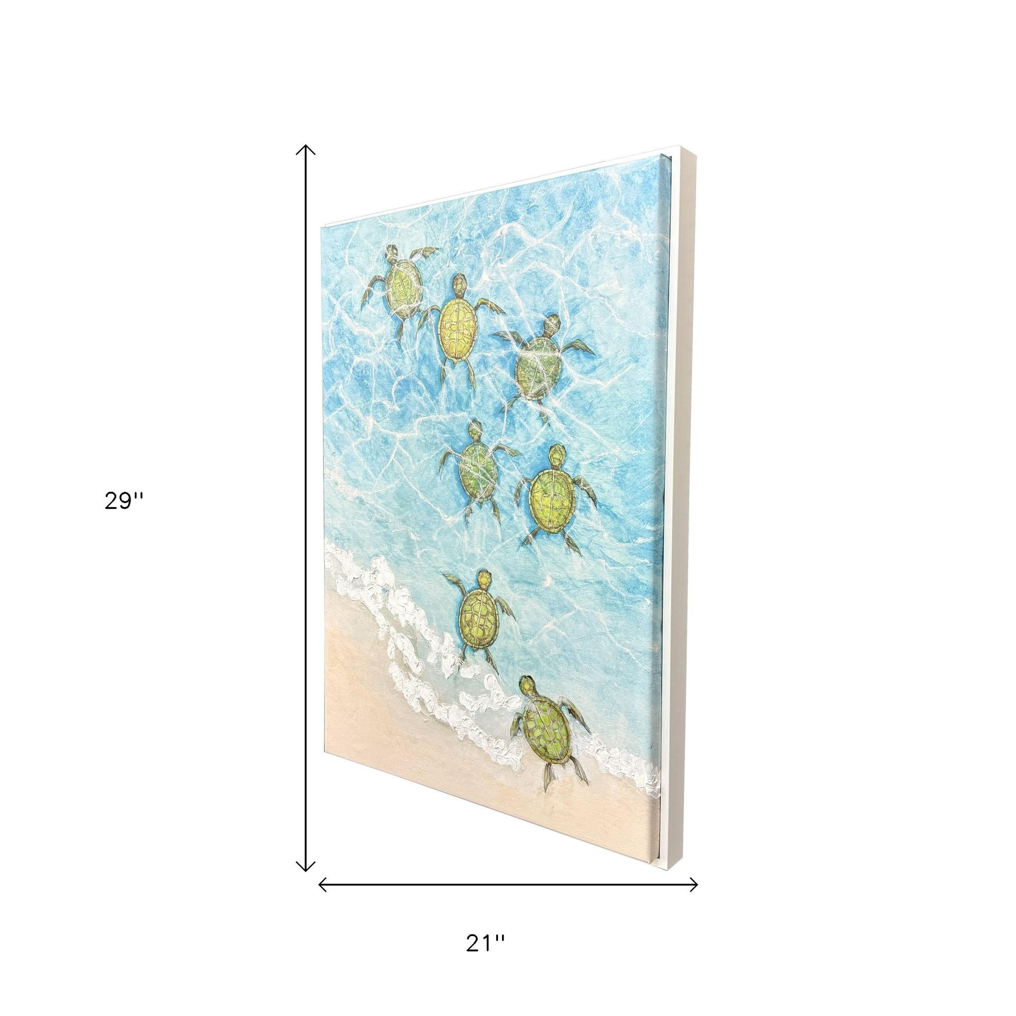 Unique and decorative, this swimming turtles ii white framed wall art will leave a lasting impression. Update your walls with this great tropical sea life art. Reproduced for you on canvas, this hanging decorative accent will be a trendy and fashionable way to dress your walls. Hang on your wall to add some up to date fashion and decoration. Instantly liven up your space with this art that brings color and dimension to your walls. 29.00-inch h x 21.00-inch w x 3.00-inch d.