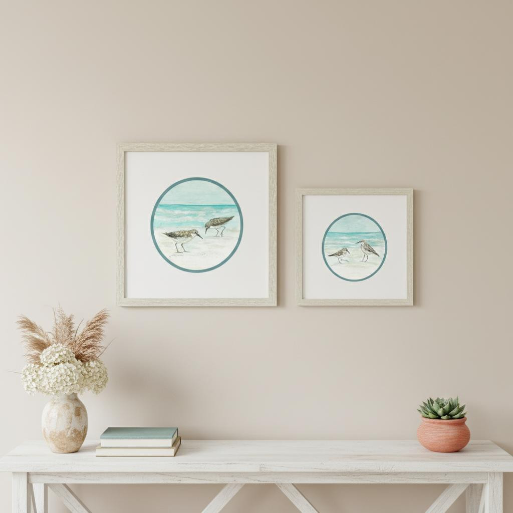 Birds,Sandpipers,Oceans,Beaches,Coasts,Sands,Exclusive,Matted Image,Glass Front,Hand Assembled,Shoreline Duo S/2 |