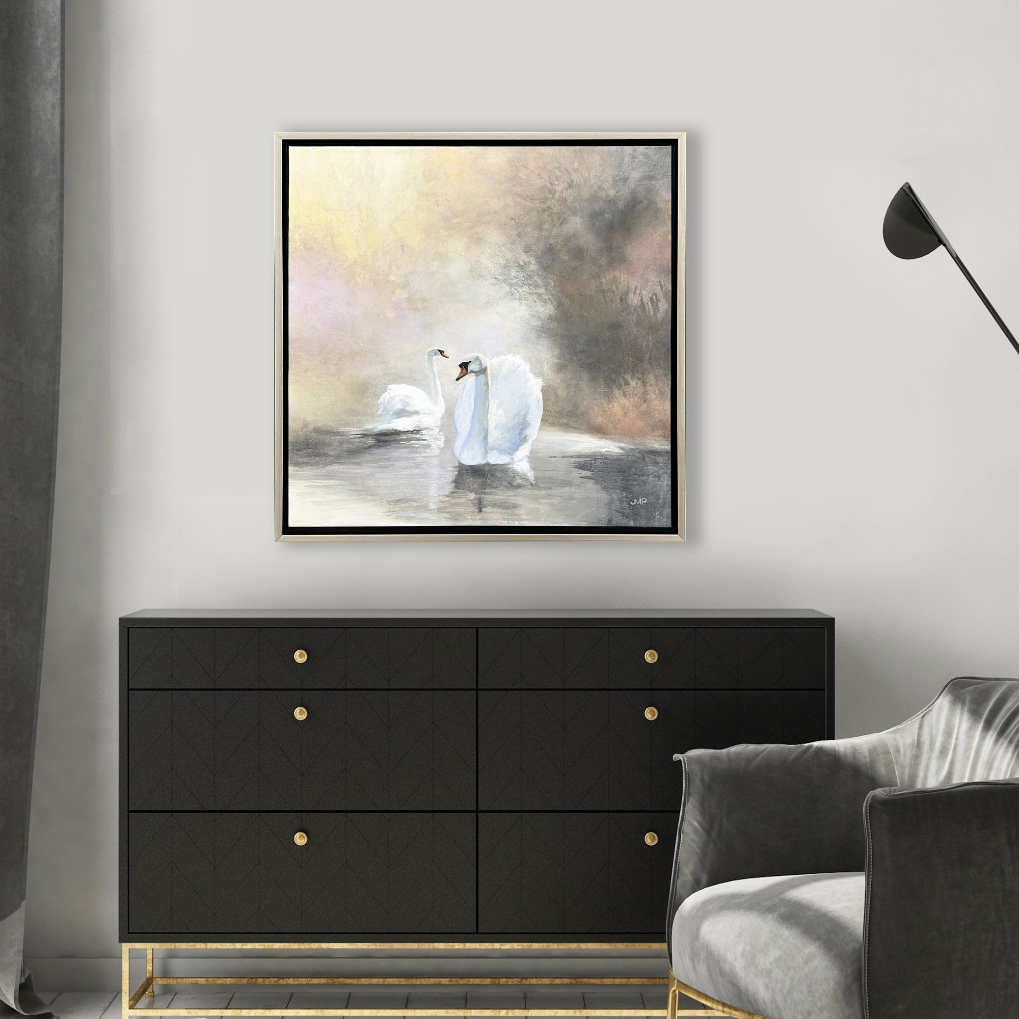 Add an air of fashion to your room and rejuvenate the space with this swans in mist silver floater frame wall art. This pretty swan inspired artwork will be a beautiful and special addition to your room's decor. Reproduced for you on canvas, this hanging decorative accent will be a trendy and fashionable way to dress your walls. Adding this hanging wall art to your space to make your room feel more finished and attractive. Utilize this opportunity to create a focal point in the room with this fabulous wall decor option. 30.00-inch h x 30.00-inch w x 2.00-inch d.