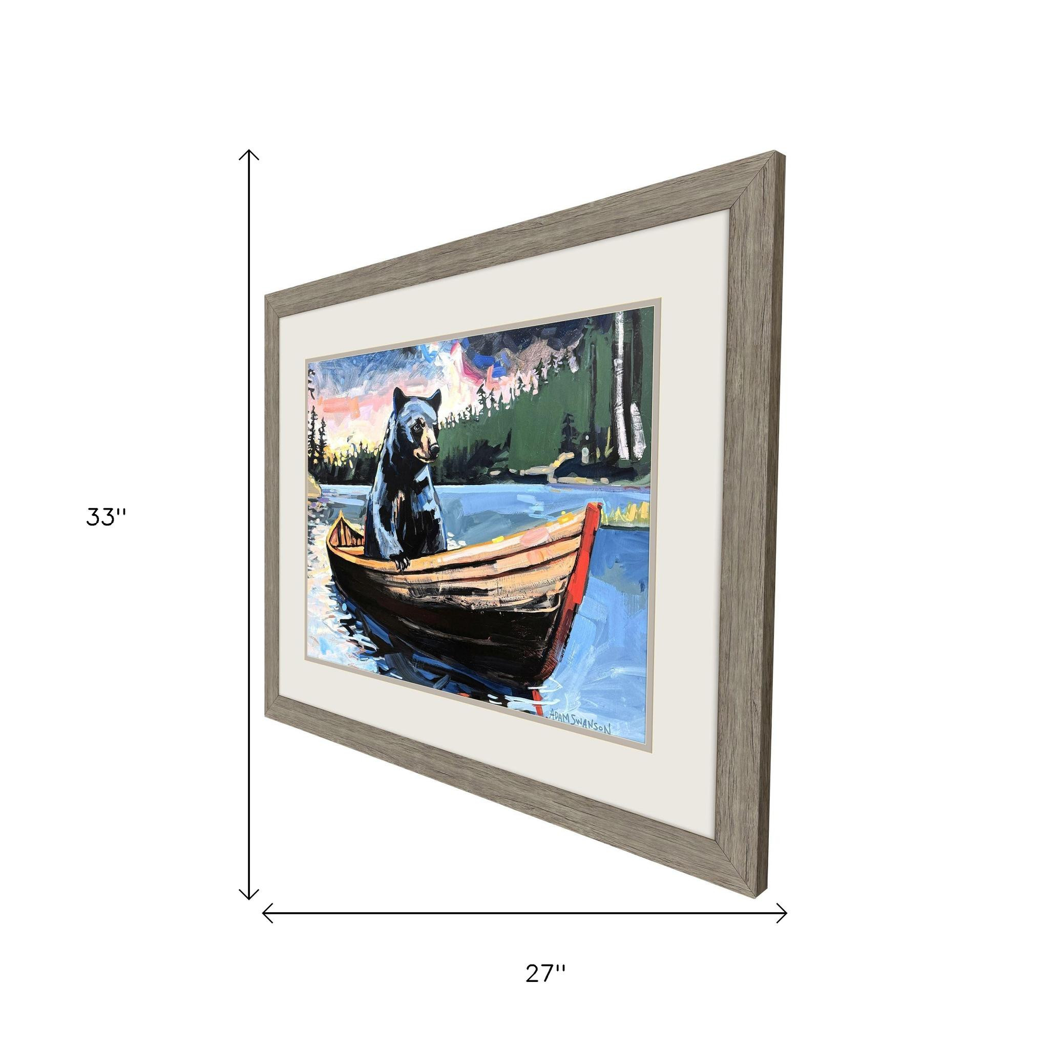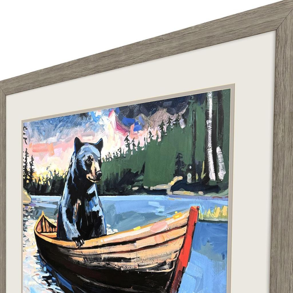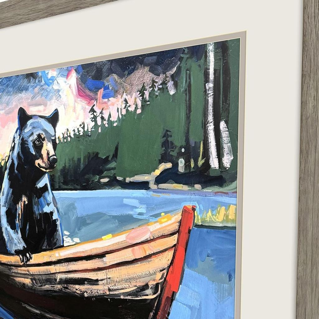 Bears,Forests,Lakes,Rivers,Canoes,Trees,Lodge,Matted Image,Glass Front,Hand Assembled,Shades of Red |