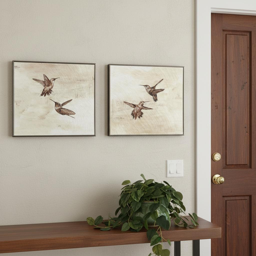 Hummingbirds,Brown,Neutral,Cream,Birds,Enhanced Gel Finish,Hand Finished,Dimensional Framing,Frame Without Glass,Neutral Flight S/2 |