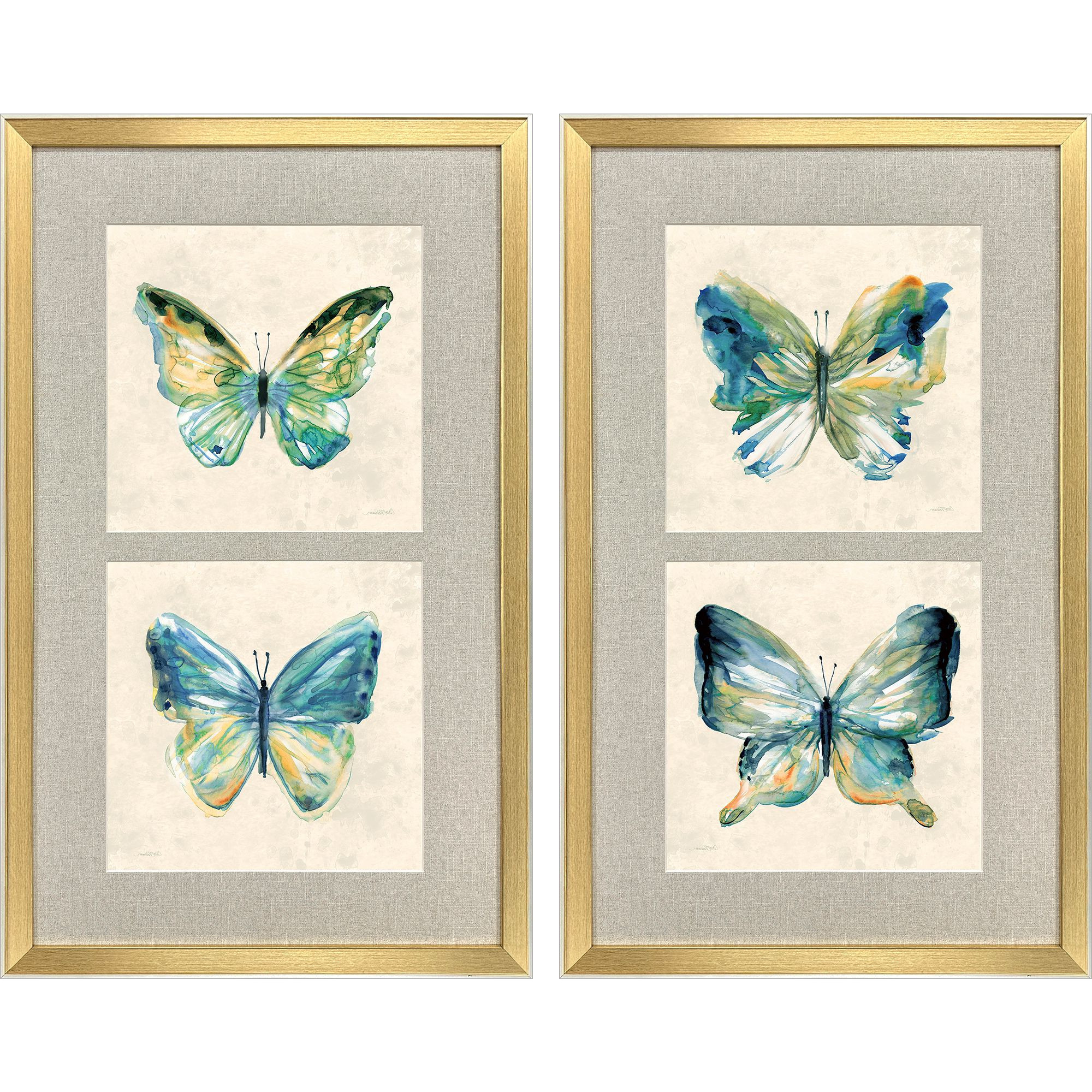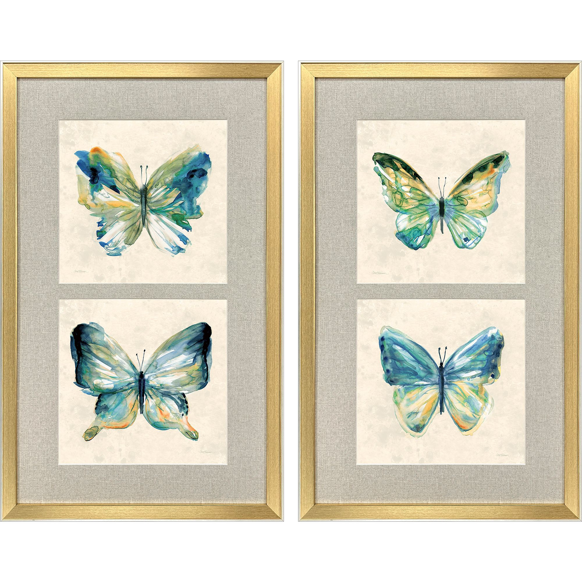Bring some sizzle to your space with this eye-catching set of two watery butterfly gold framed wall art. Inspired by one of nature's most revered icons, this pretty butterfly inspired artwork will be a beautiful and special addition to your room's decor. Reproduced for you on paper, this hanging decorative accent will be a trendy and fashionable way to dress your walls. Hang on your wall to add some up to date fashion and decoration. Instantly liven up your space with this art that brings color and dimension to your walls. 33.00-inch h x 20.00-inch w x 2.00-inch d.