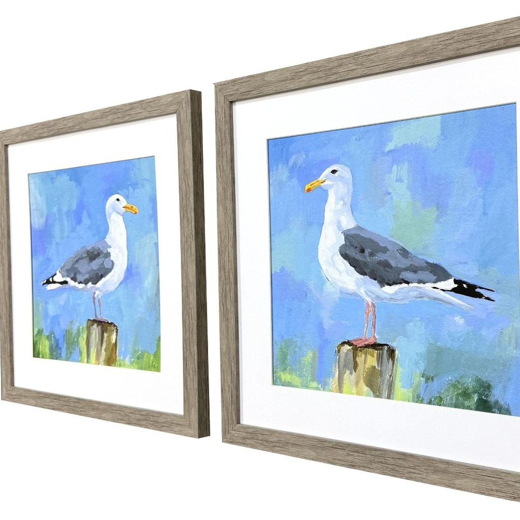 Salty Gulls,Seagulls,Oceans,Birds,Beaches,Matted Image,Glass Front,Hand Assembled,Salty Gull S/2 |