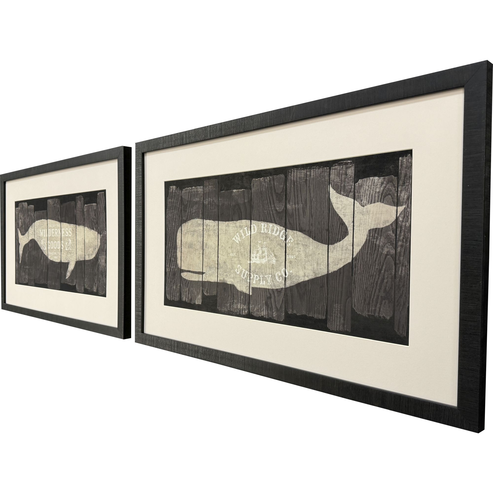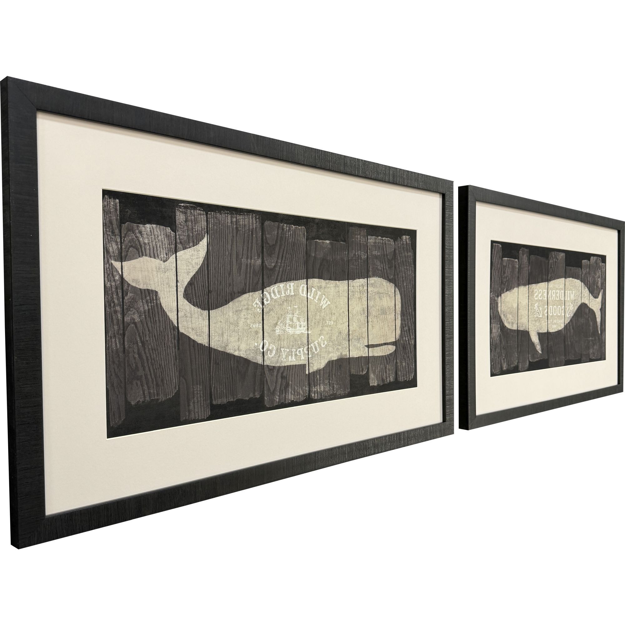 Whales,Vintage,Signs,Oceans,Matted Image,Glass Front,Hand Assembled,Marine Marks S/2 |