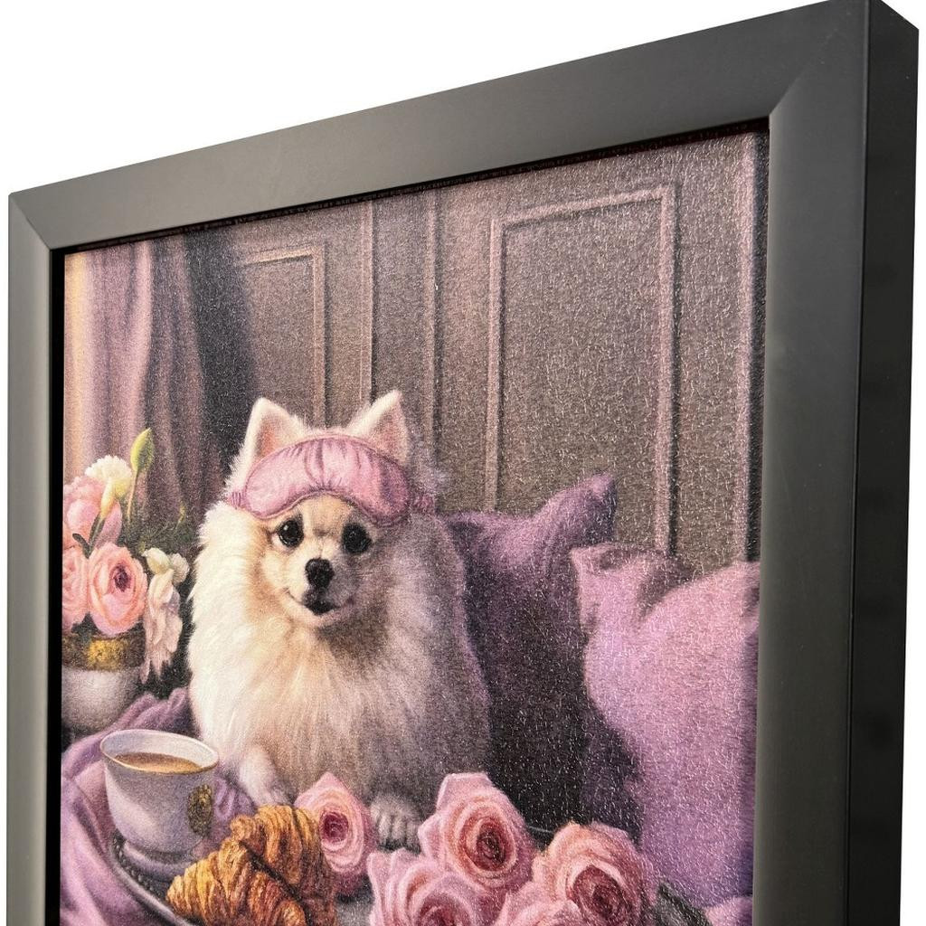Add an air of fashion to your room and rejuvenate the space with this princess gigi black framed wall art. This adorable dog inspired art will hold a special place in your heart. Reproduced for you on paper, this hanging decorative accent will be a trendy and fashionable way to dress your walls. Hang on your wall to add some up to date fashion and decoration. Instantly liven up your space with this art that brings color and dimension to your walls. 11.00-inch h x 11.00-inch w x 2.00-inch d.