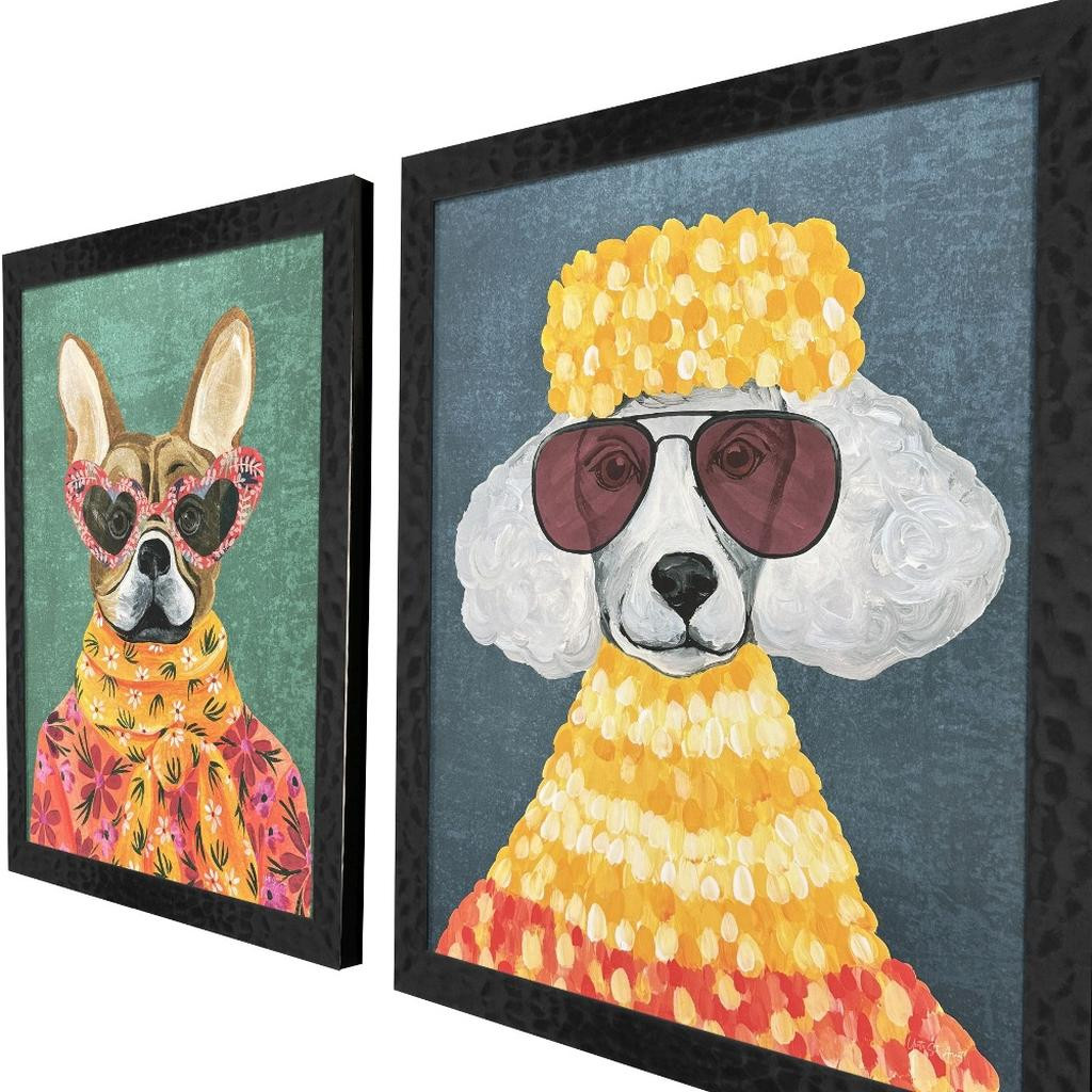 Dogs,Sunglasses,Clothes,Hats,Flowers,Framed to the Image,Glass Front,Hand Assembled,Whimsy Dog II S/2 |