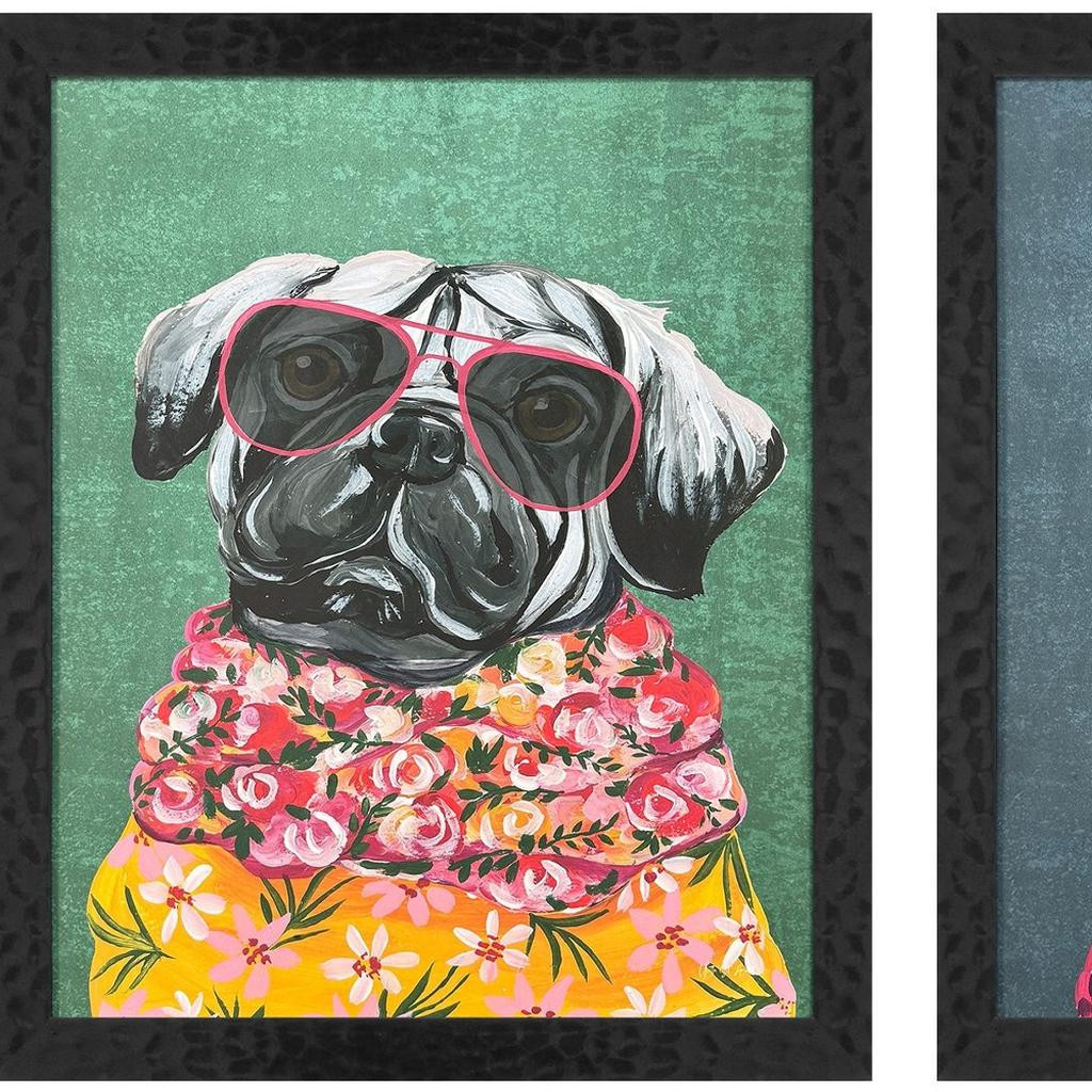 Dogs,Sunglasses,Clothes,Hats,Flowers,Framed to the Image,Glass Front,Hand Assembled,Whimsy Dog IV S/2 |