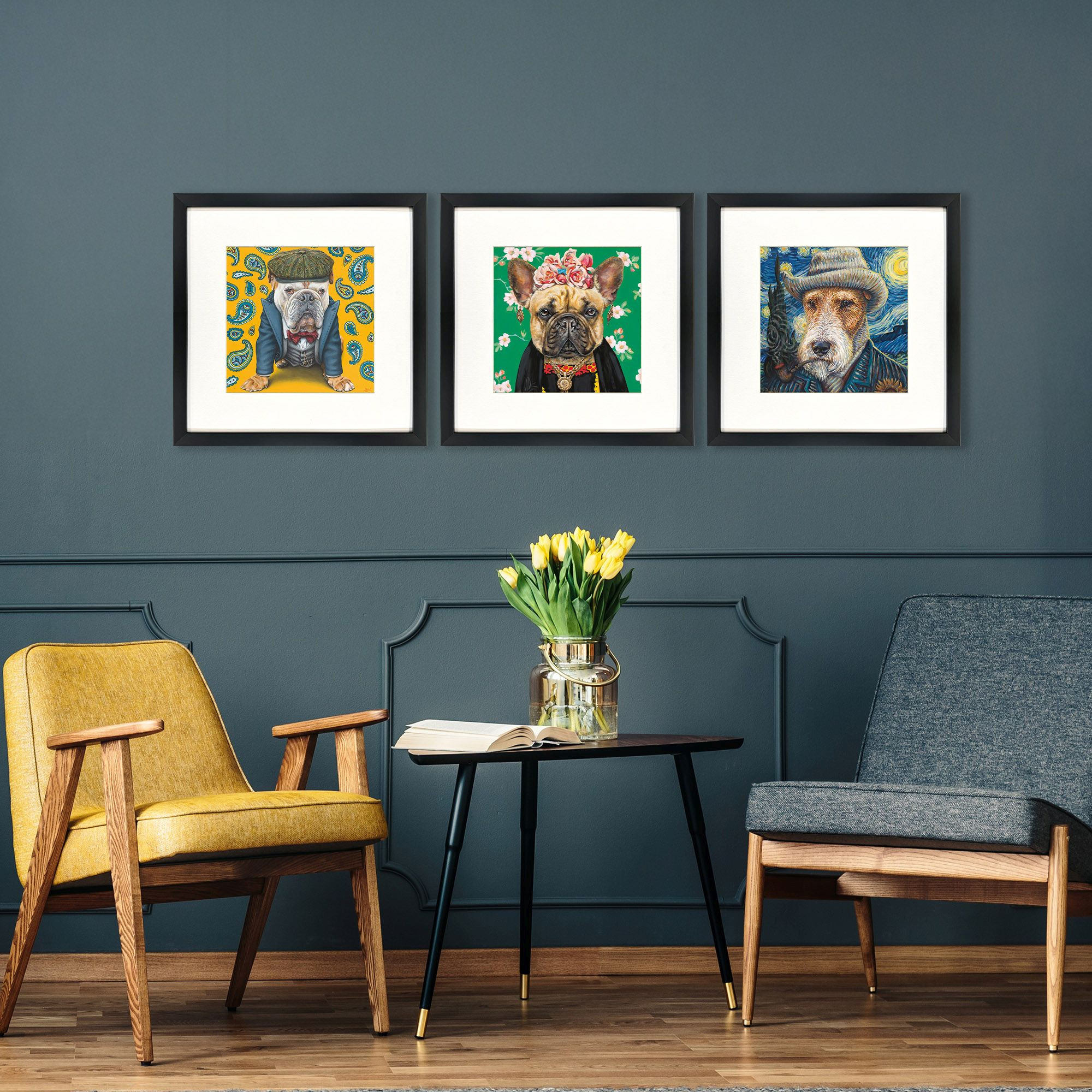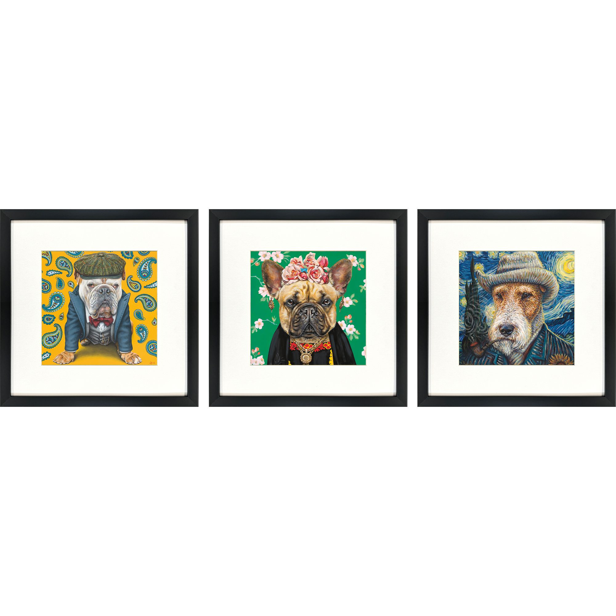 Bring some sizzle to your space with this eye-catching set of three master dogs i black framed wall art. This dog artwork is a great reminder of man's best friend. Reproduced for you on paper, this hanging decorative accent will be a trendy and fashionable way to dress your walls. Hang on your wall to add some up to date fashion and decoration. Instantly liven up your space with this art that brings color and dimension to your walls. 16.00-inch h x 16.00-inch w x 2.00-inch d.