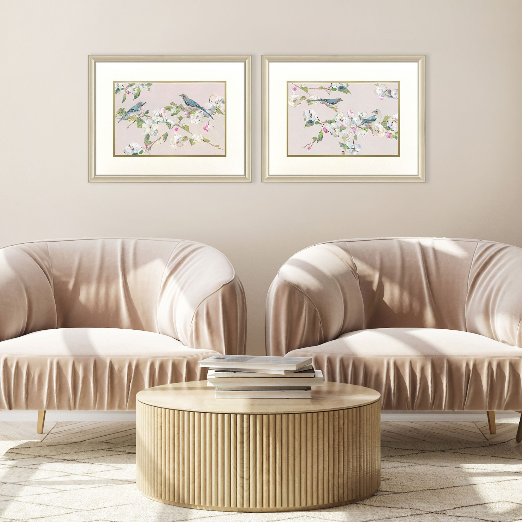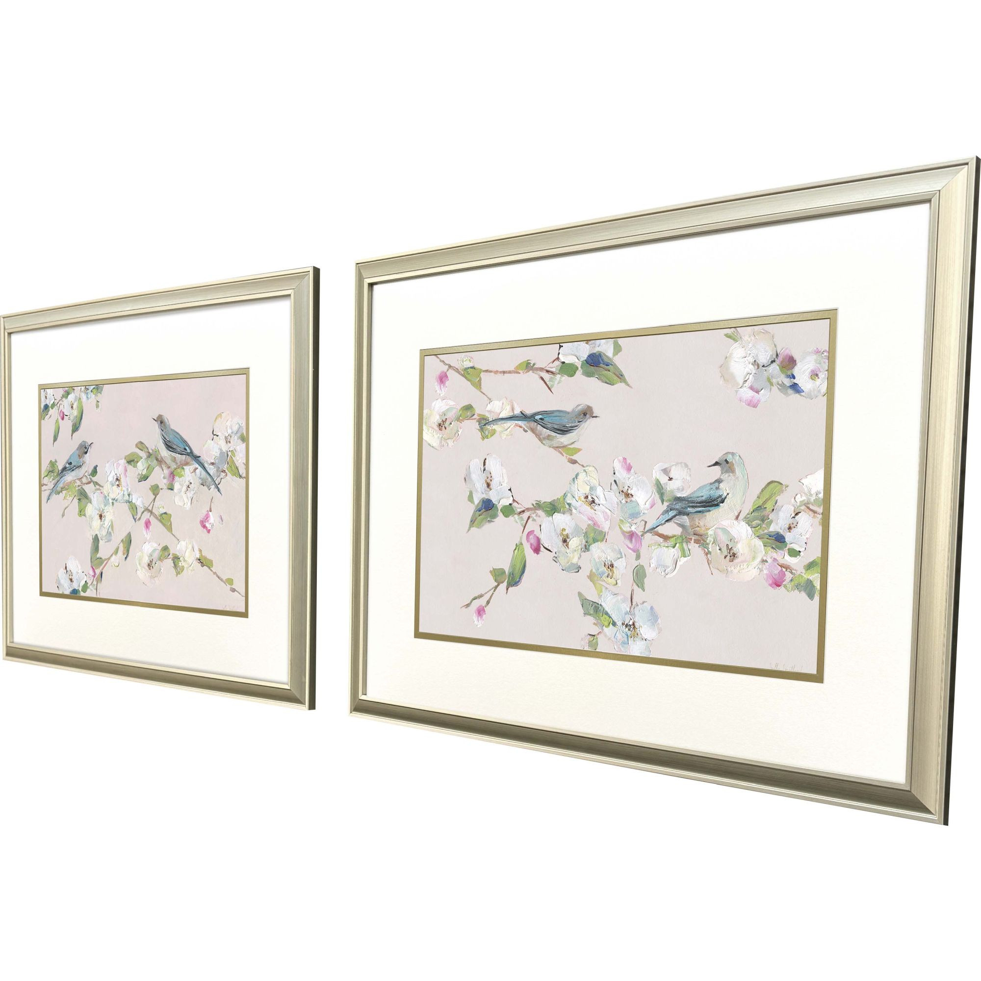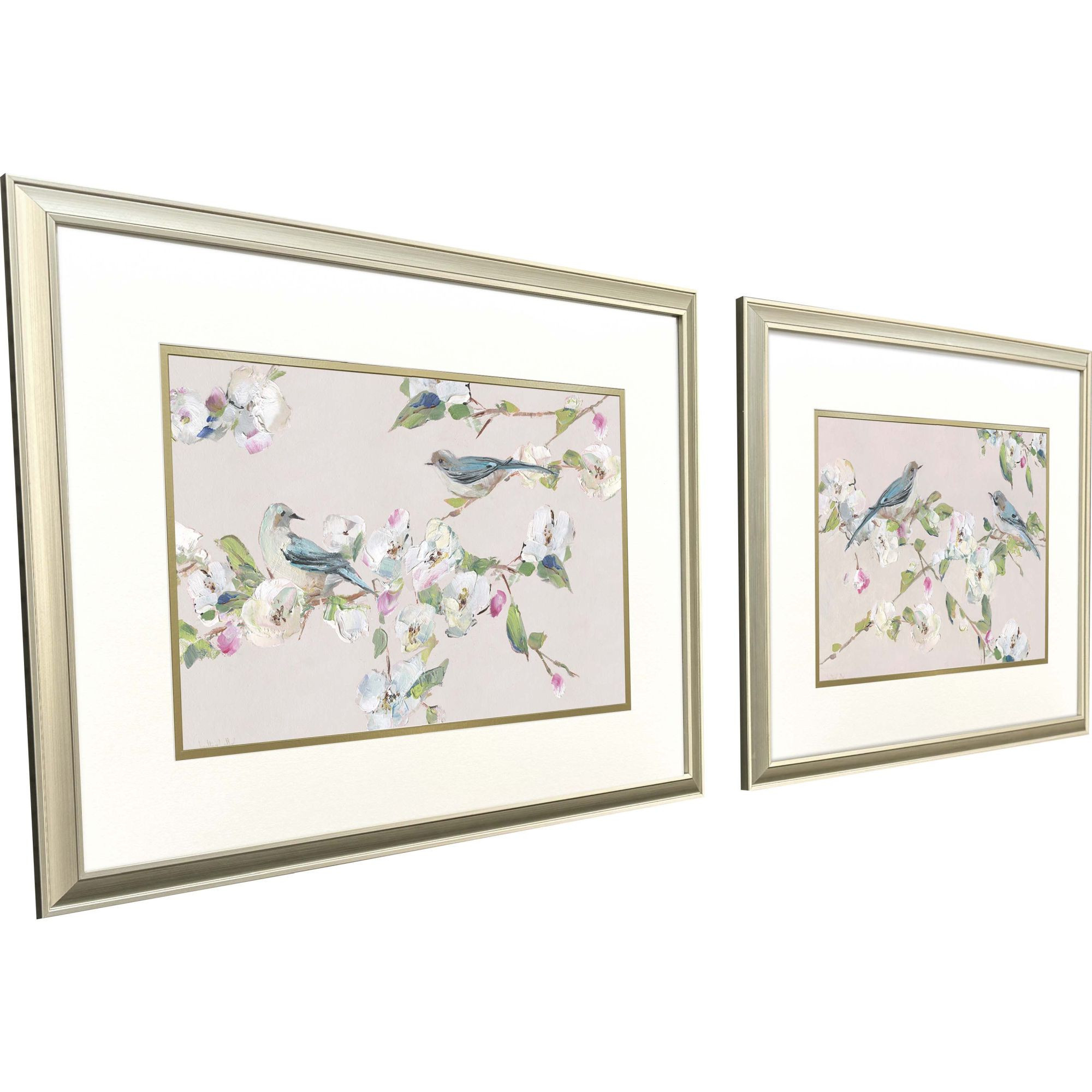 Birds,Flowers,Blossoms,Blooms,Leaf,Leaves,Branches,Matted Image,Glass Front,Hand Assembled,Birds on Branches S/2 |