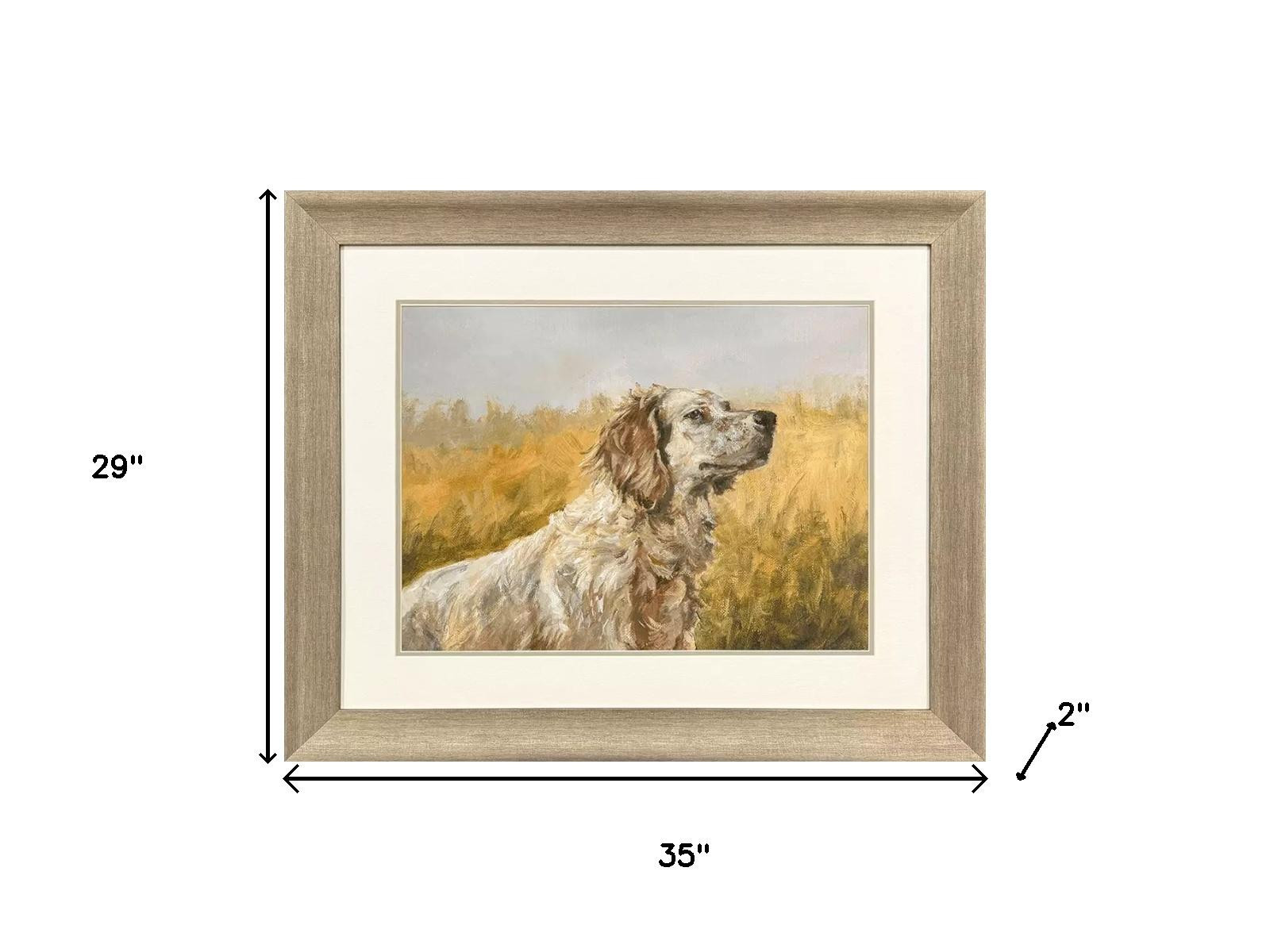 Add an air of fashion to your room and rejuvenate the space with this on the hunt i gold framed wall art. This dog artwork is a great reminder of man's best friend. Reproduced for you on paper, this hanging decorative accent will be a trendy and fashionable way to dress your walls. Adding this hanging wall art to your space to make your room feel more finished and attractive. Utilize this opportunity to create a focal point in the room with this fabulous wall decor option. 29.00-inch h x 35.00-inch w x 2.00-inch d.