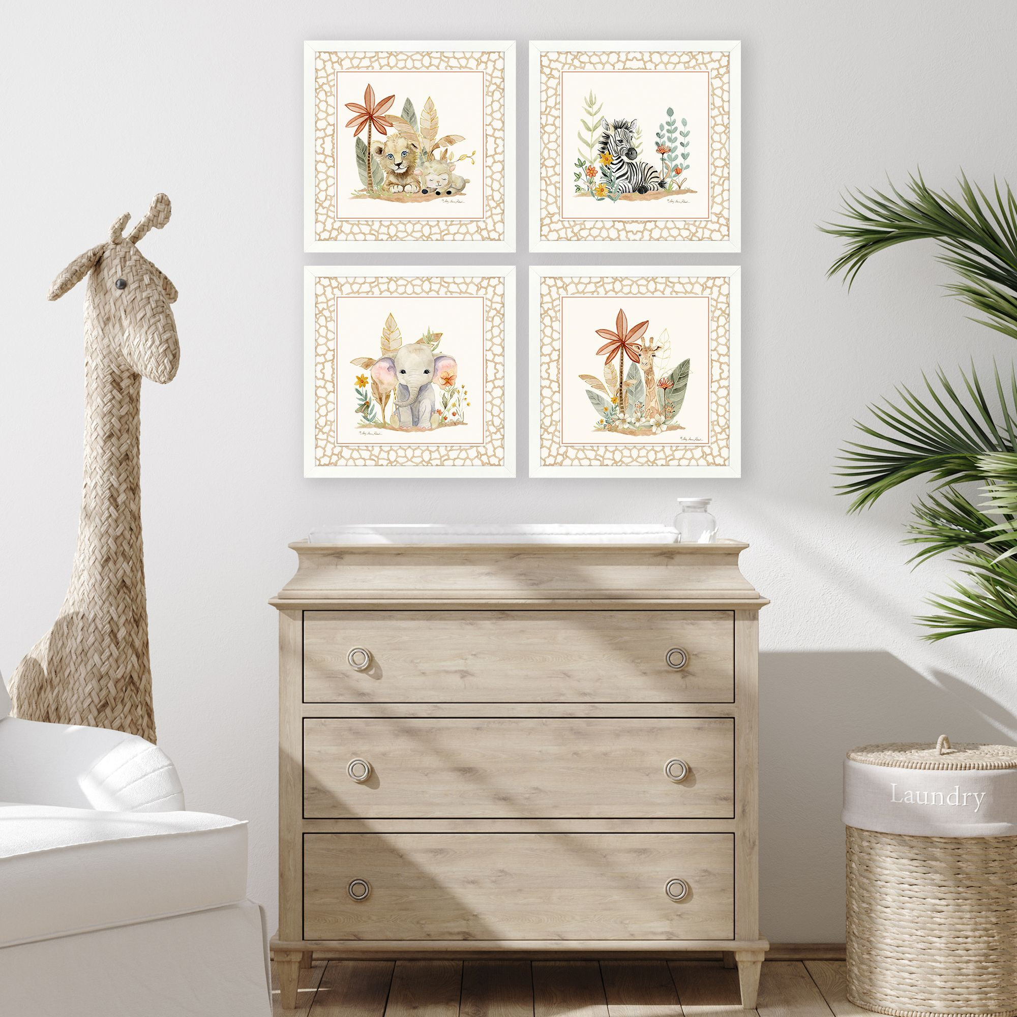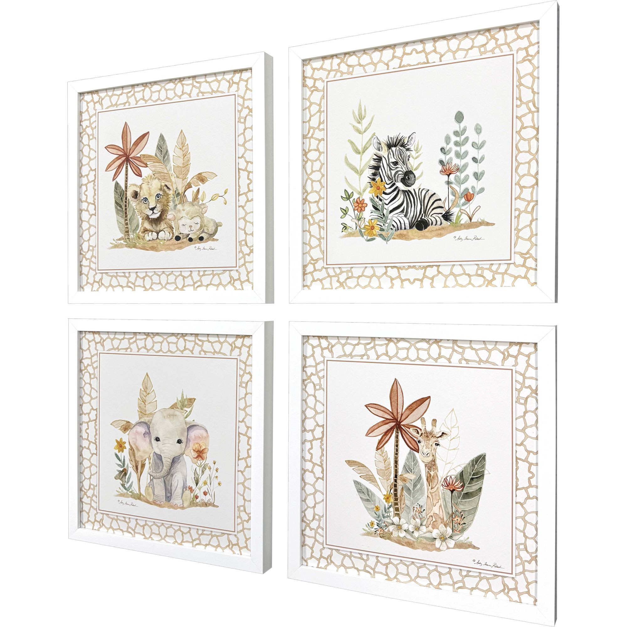 Bring some sizzle to your space with this eye-catching set of four youthful animals white framed wall art. Update your walls with this wild jungle animal decor. Reproduced for you on paper, this hanging decorative accent will be a trendy and fashionable way to dress your walls. Adding this hanging wall art to your space to make your room feel more finished and attractive. Utilize this opportunity to create a focal point in the room with this fabulous wall decor option. 15.00-inch h x 15.00-inch w x 2.00-inch d.
