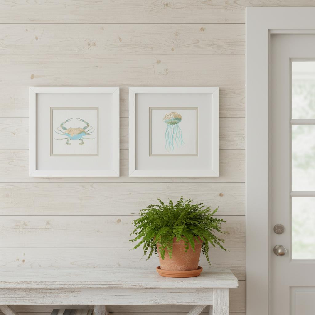 Oceans,Beaches,Crabs,Jellyfishes,Matted Image,Glass Front,Hand Assembled,Sea Creatures II S/2 |