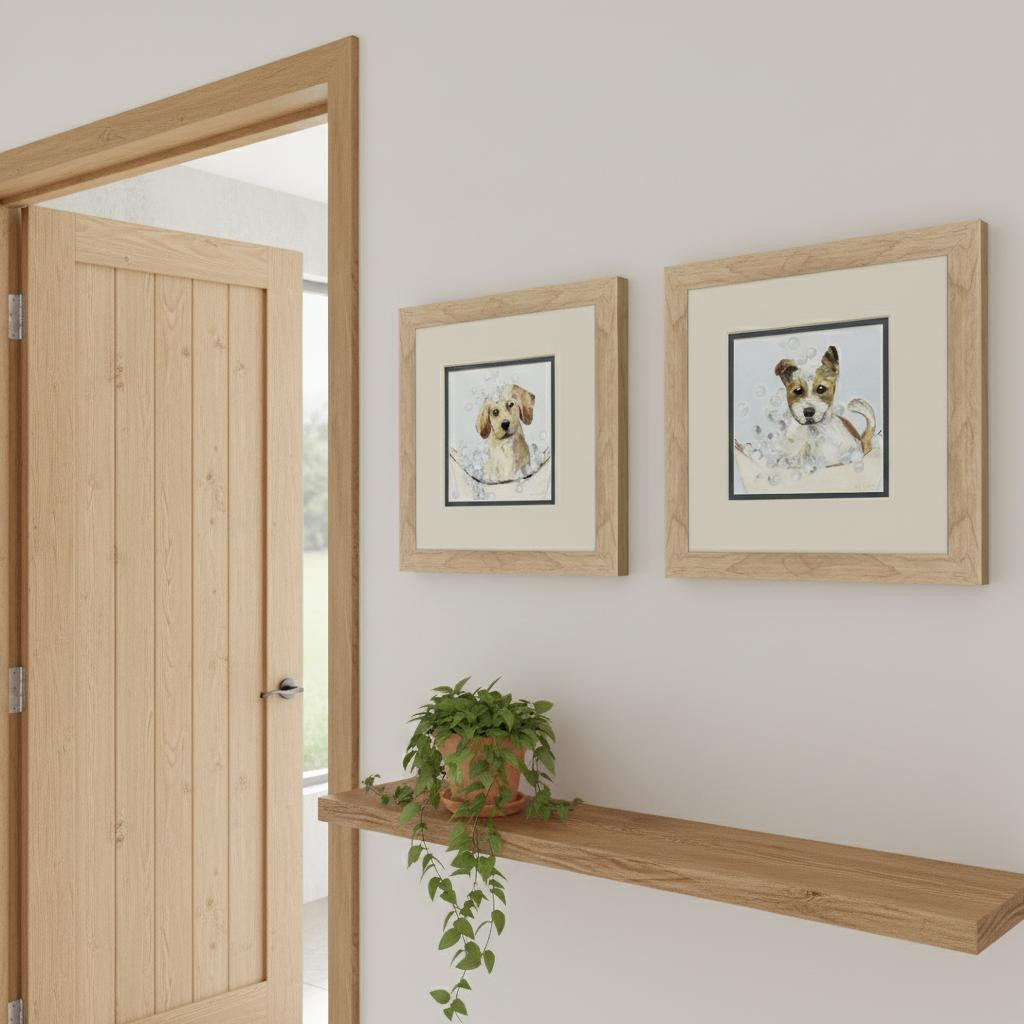 Unique and decorative, this set of two bath time brown framed wall art will leave a lasting impression. This dog artwork is a great reminder of man's best friend. Reproduced for you on paper, this hanging decorative accent will be a trendy and fashionable way to dress your walls. Hang on your wall to add some up to date fashion and decoration. Utilize this opportunity to create a focal point in the room with this fabulous wall decor option. 12.00-inch h x 12.00-inch w x 1.00-inch d.