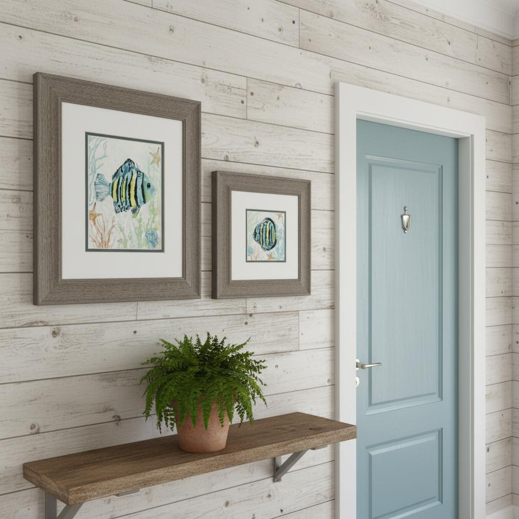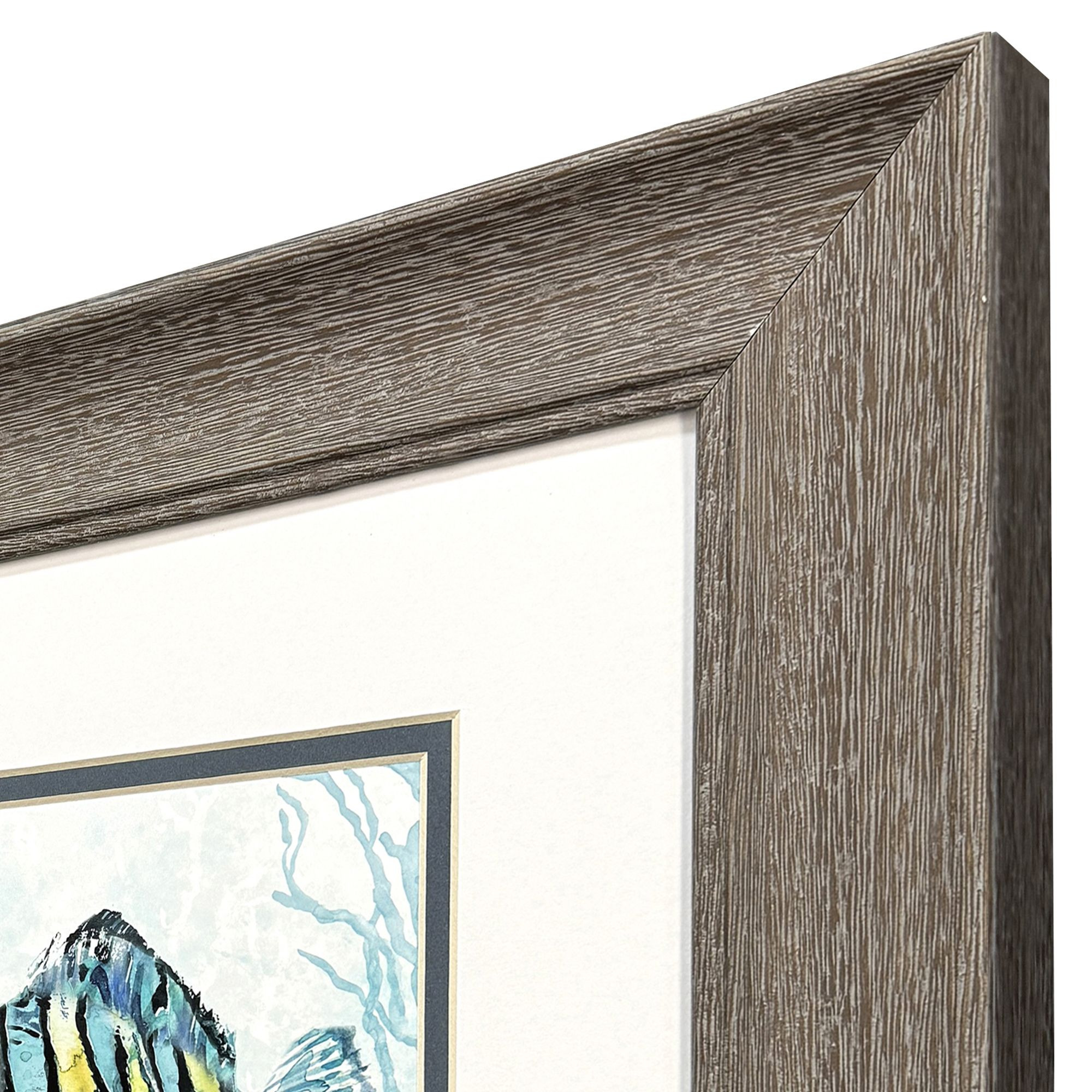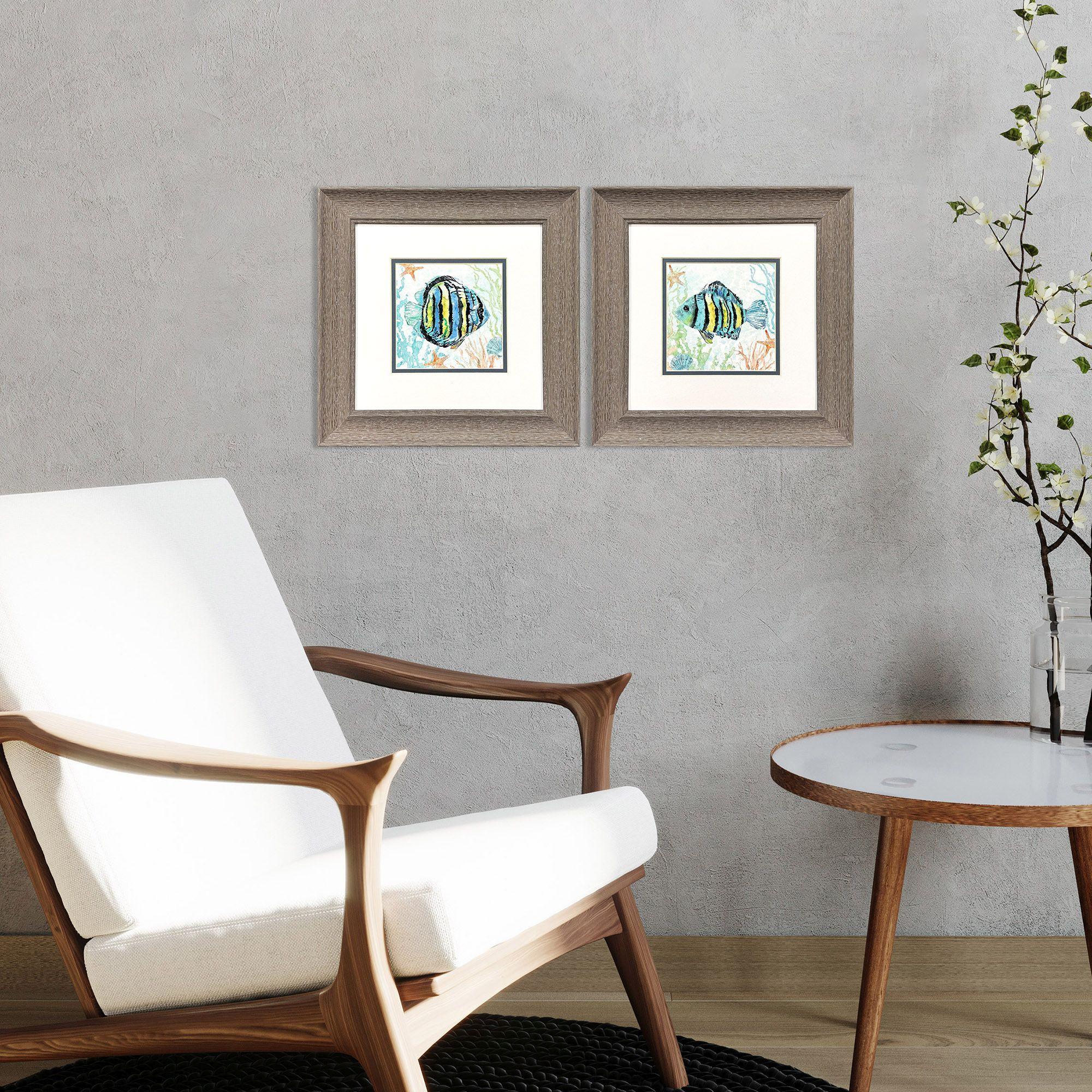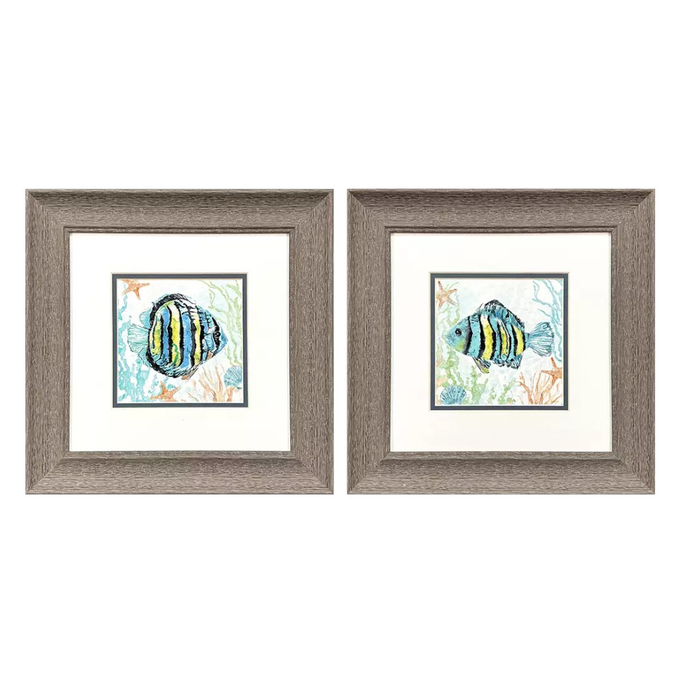 Add an air of fashion to your room and rejuvenate the space with this set of two striped tropical fish brown framed wall art. Bring a little bit of tropical sea life indoors with this good looking fish art. Reproduced for you on paper, this hanging decorative accent will be a trendy and fashionable way to dress your walls. Adding this hanging wall art to your space to make your room feel more finished and attractive. Instantly liven up your space with this art that brings color and dimension to your walls. 13.00-inch h x 13.00-inch w x 1.00-inch d.