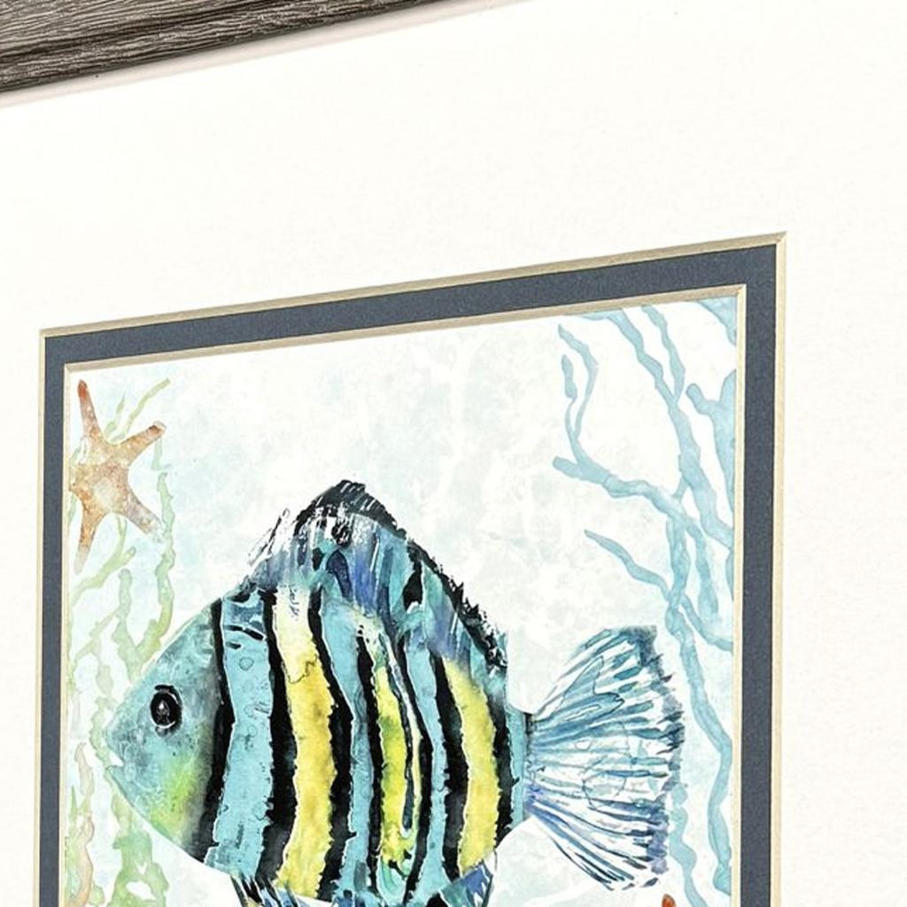 Tropical,Fish,Oceans,Starfish,Coral,Blue,Green,Matted Image,Glass Front,Hand Assembled,Striped Tropical Fish S/2 |