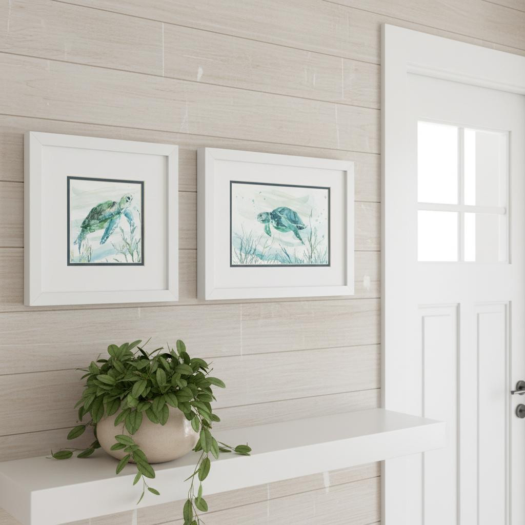 Turtles,Seaweed,Water,Oceans,Watercolor,Swim,Matted Image,Glass Front,Hand Assembled,Tropical Current S/2 |
