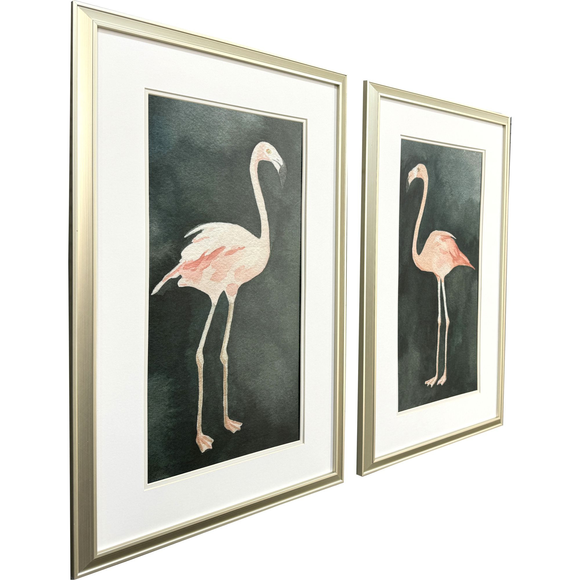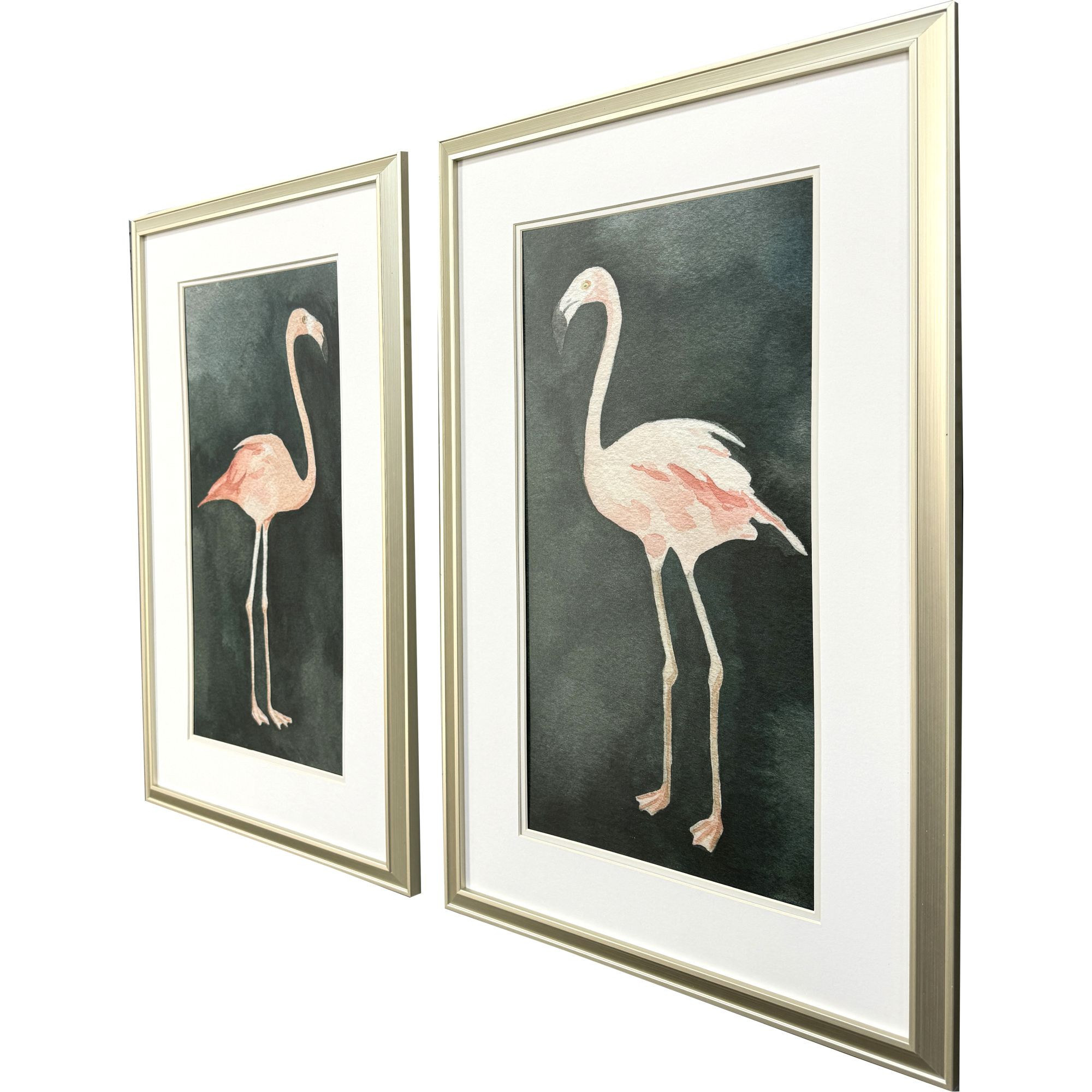 Unique and decorative, this set of two forest flamingo gold framed wall art will leave a lasting impression. Update your walls with this great tropical sea life art. Reproduced for you on paper, this hanging decorative accent will be a trendy and fashionable way to dress your walls. Hang on your wall to add some up to date fashion and decoration. Instantly liven up your space with this art that brings color and dimension to your walls. 32.00-inch h x 20.00-inch w x 1.00-inch d.