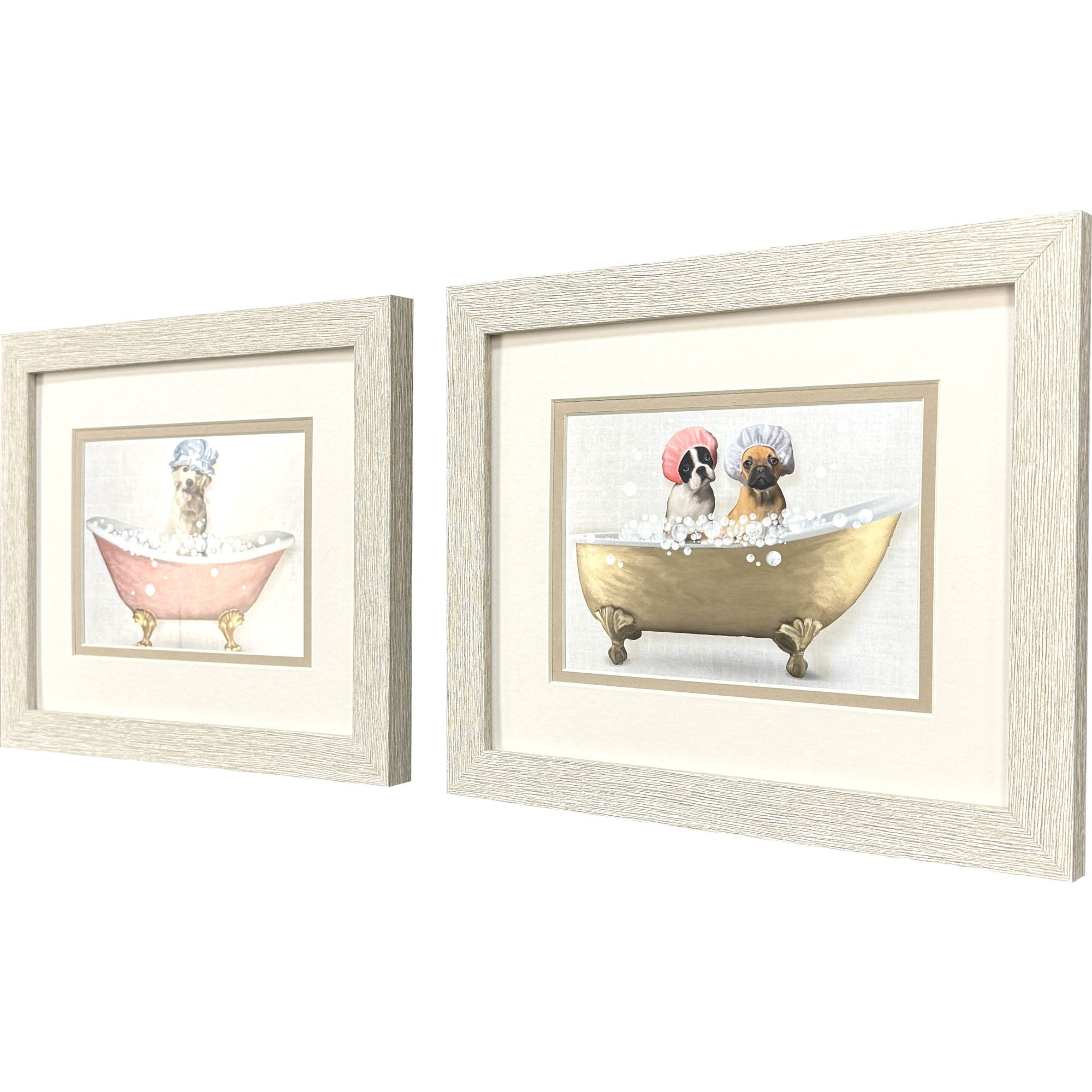 Bring some sizzle to your space with this eye-catching set of two bath dogs ii distressed white framed wall art. This dog artwork is a great reminder of man's best friend. Reproduced for you on paper, this hanging decorative accent will be a trendy and fashionable way to dress your walls. Hang on your wall to add some up to date fashion and decoration. Instantly liven up your space with this art that brings color and dimension to your walls. 9.00-inch h x 11.00-inch w x 1.00-inch d.