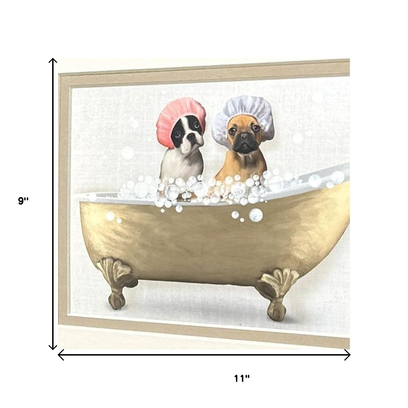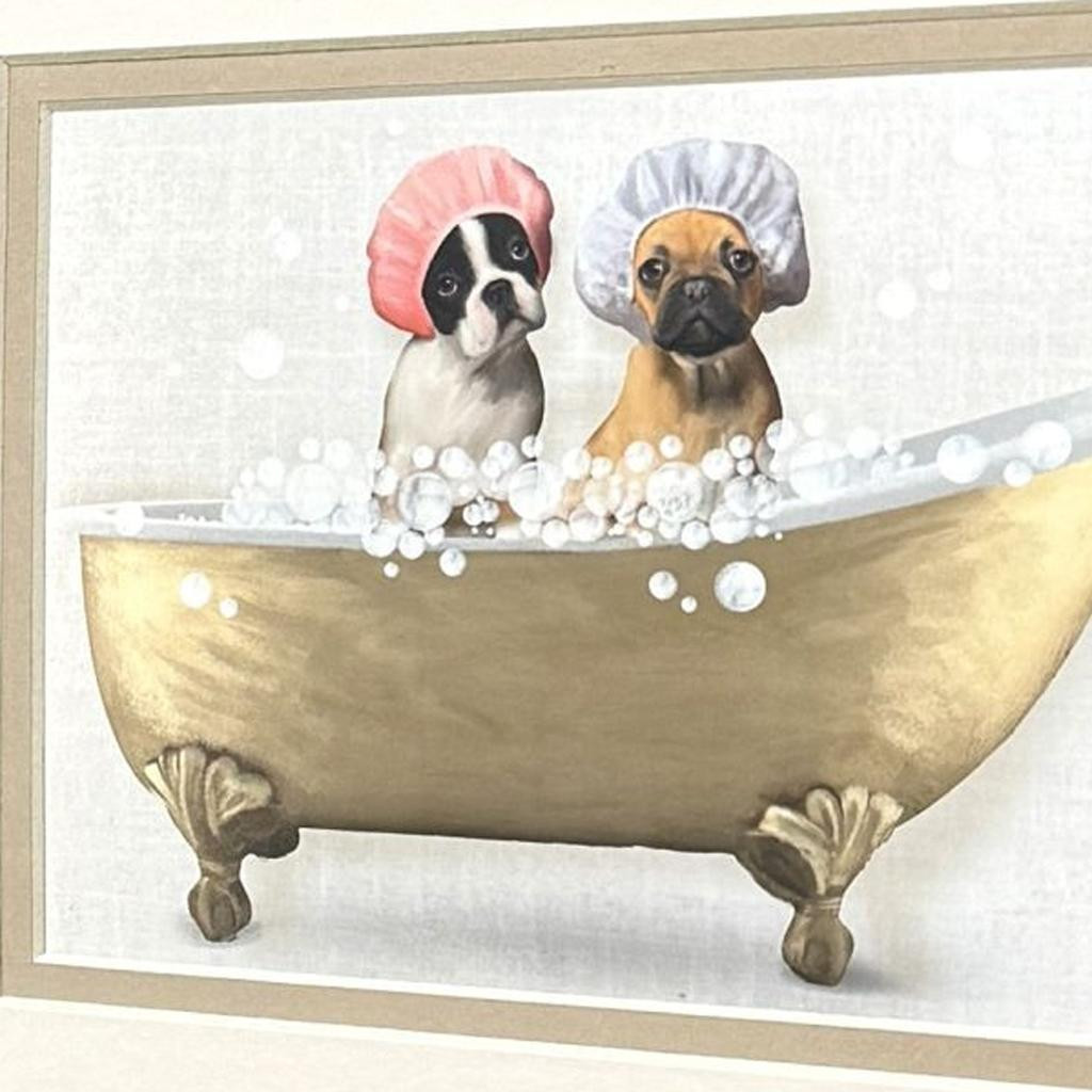 Dogs,Labs,Retrievers,Bulldogs,Pets,Bubbles,Tubs,Bathrooms,Matted Image,Glass Front,Hand Assembled,Bath Dogs II S/2 |