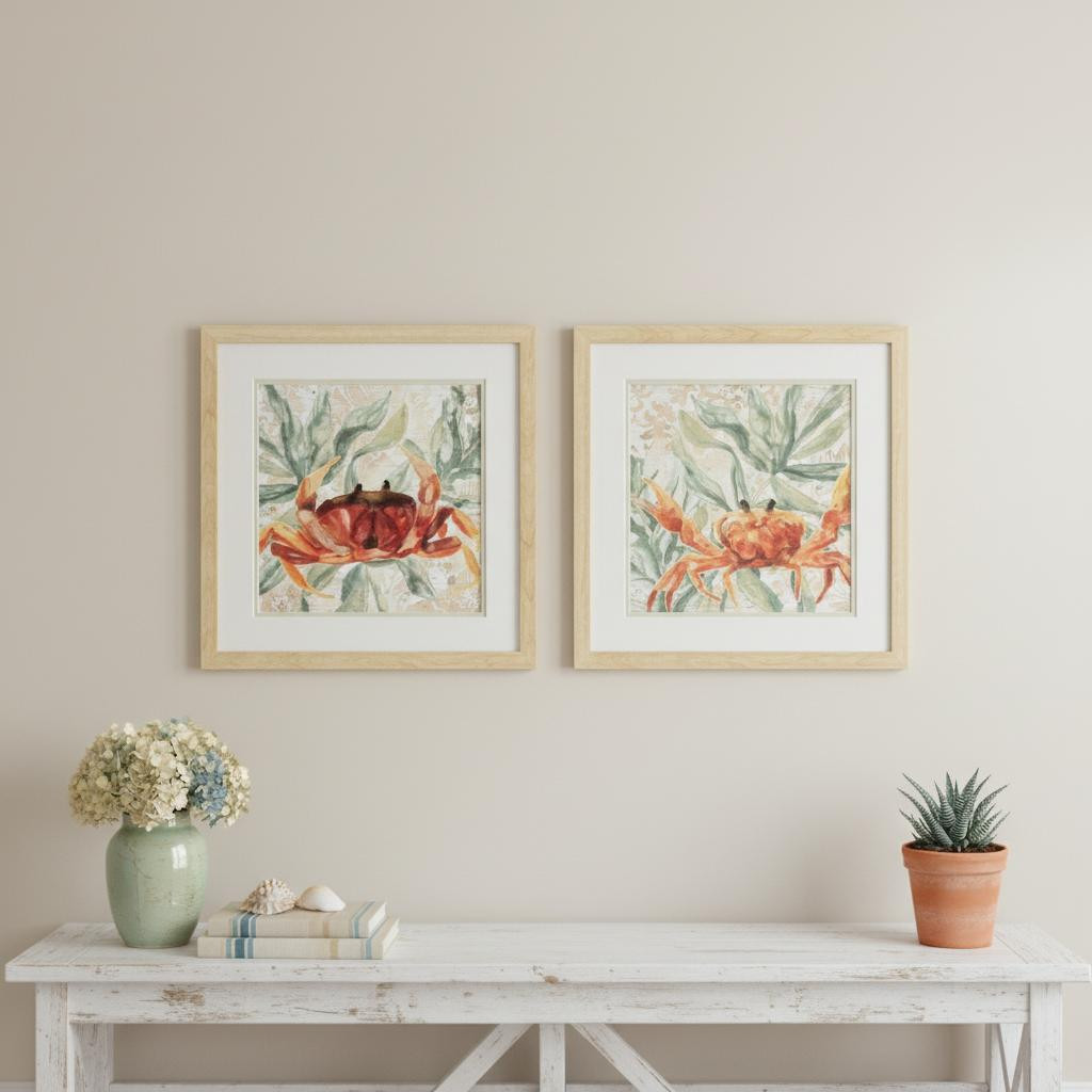 Unique and decorative, this set of two crabby melody brown framed wall art will leave a lasting impression. Bring a little bit of tropical sea life indoors with this good looking crab art. Reproduced for you on paper, this hanging decorative accent will be a trendy and fashionable way to dress your walls. Hang on your wall to add some up to date fashion and decoration. Utilize this opportunity to create a focal point in the room with this fabulous wall decor option. 18.00-inch h x 18.00-inch w x 1.00-inch d.