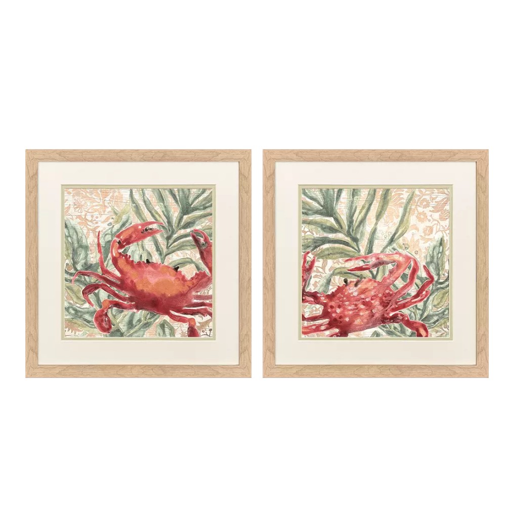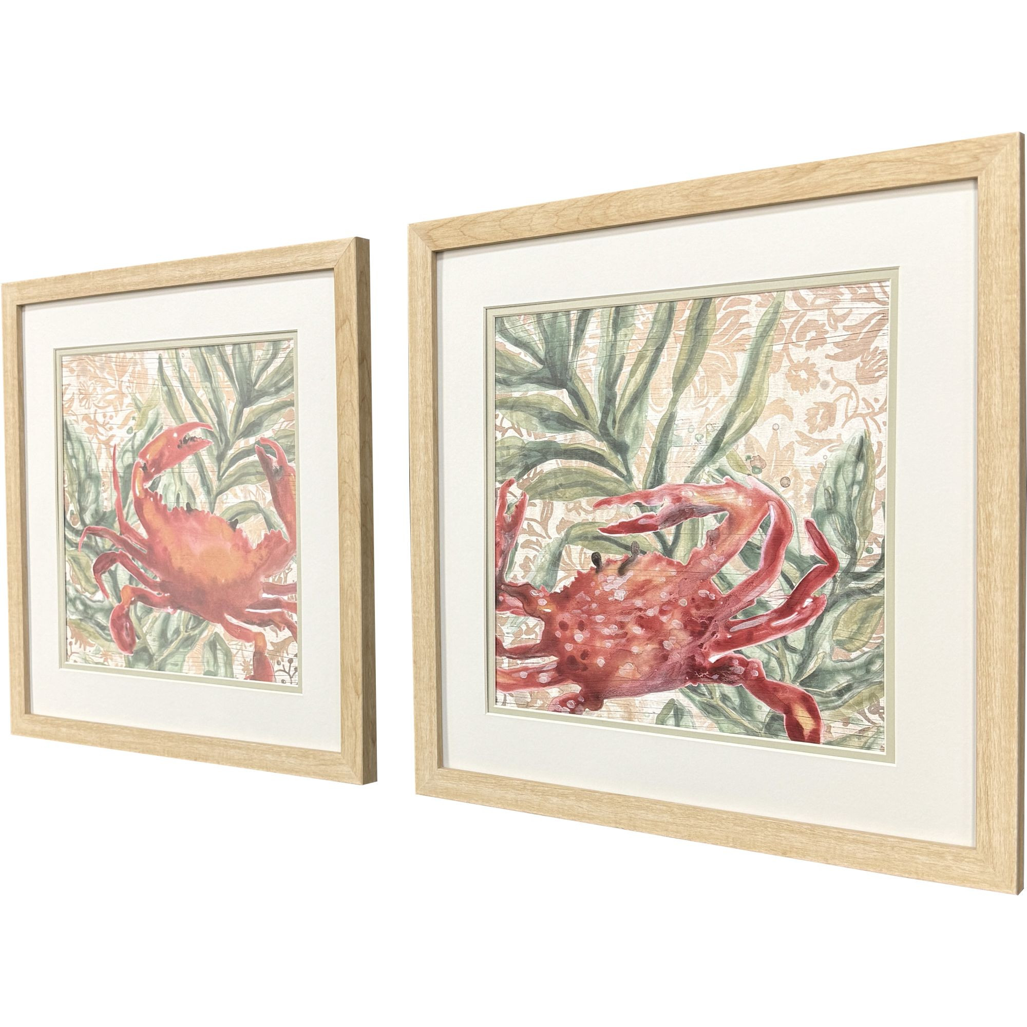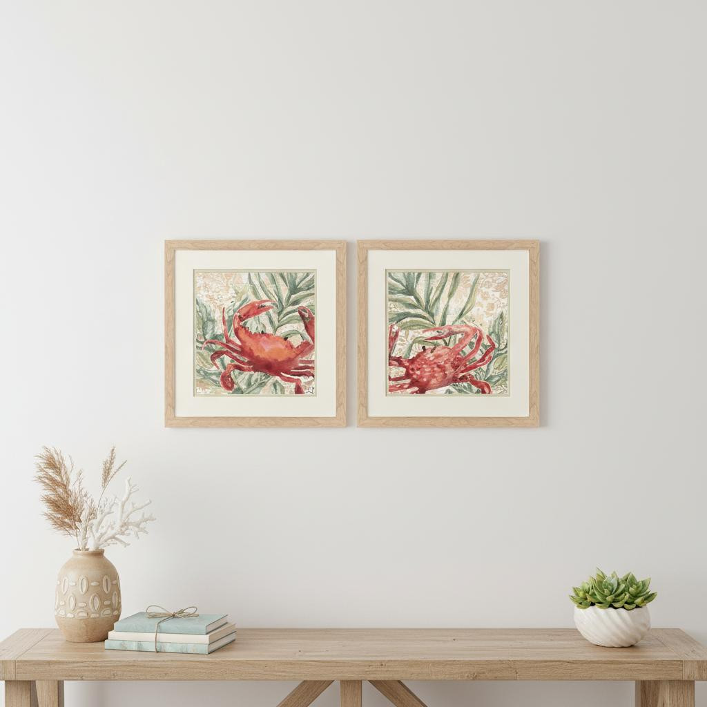Unique and decorative, this set of two crabby crab brown framed wall art will leave a lasting impression. Bring a little bit of tropical sea life indoors with this good looking crab art. Reproduced for you on paper, this hanging decorative accent will be a trendy and fashionable way to dress your walls. Hang on your wall to add some up to date fashion and decoration. Utilize this opportunity to create a focal point in the room with this fabulous wall decor option. 18.00-inch h x 18.00-inch w x 1.00-inch d.