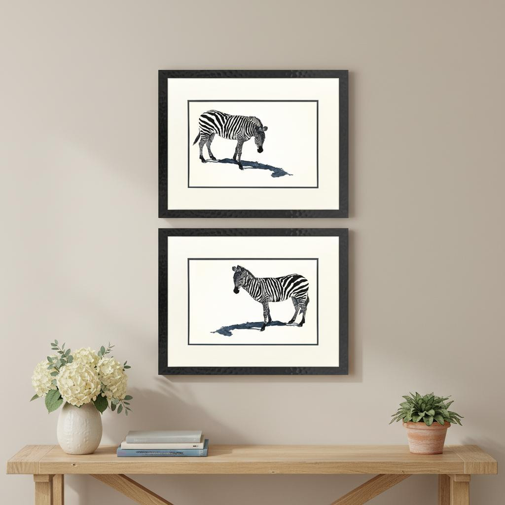 Zebras,Matted Image,Glass Front,Hand Assembled,Stand By Me S/2 |