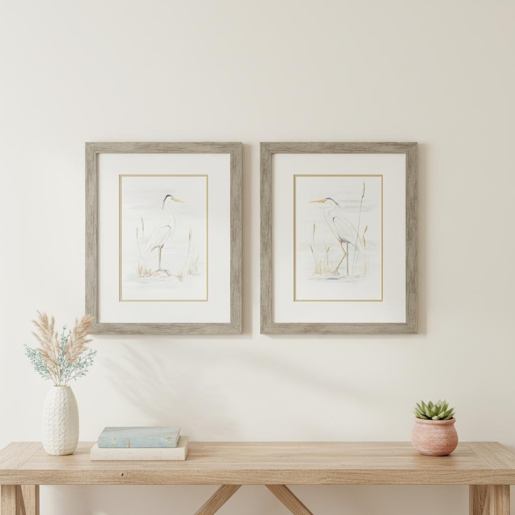 Birds,Herons,Cattails,Oceans,Shores,Lakes,Ponds,Matted Image,Glass Front,Hand Assembled,Heron Stance S/2 |