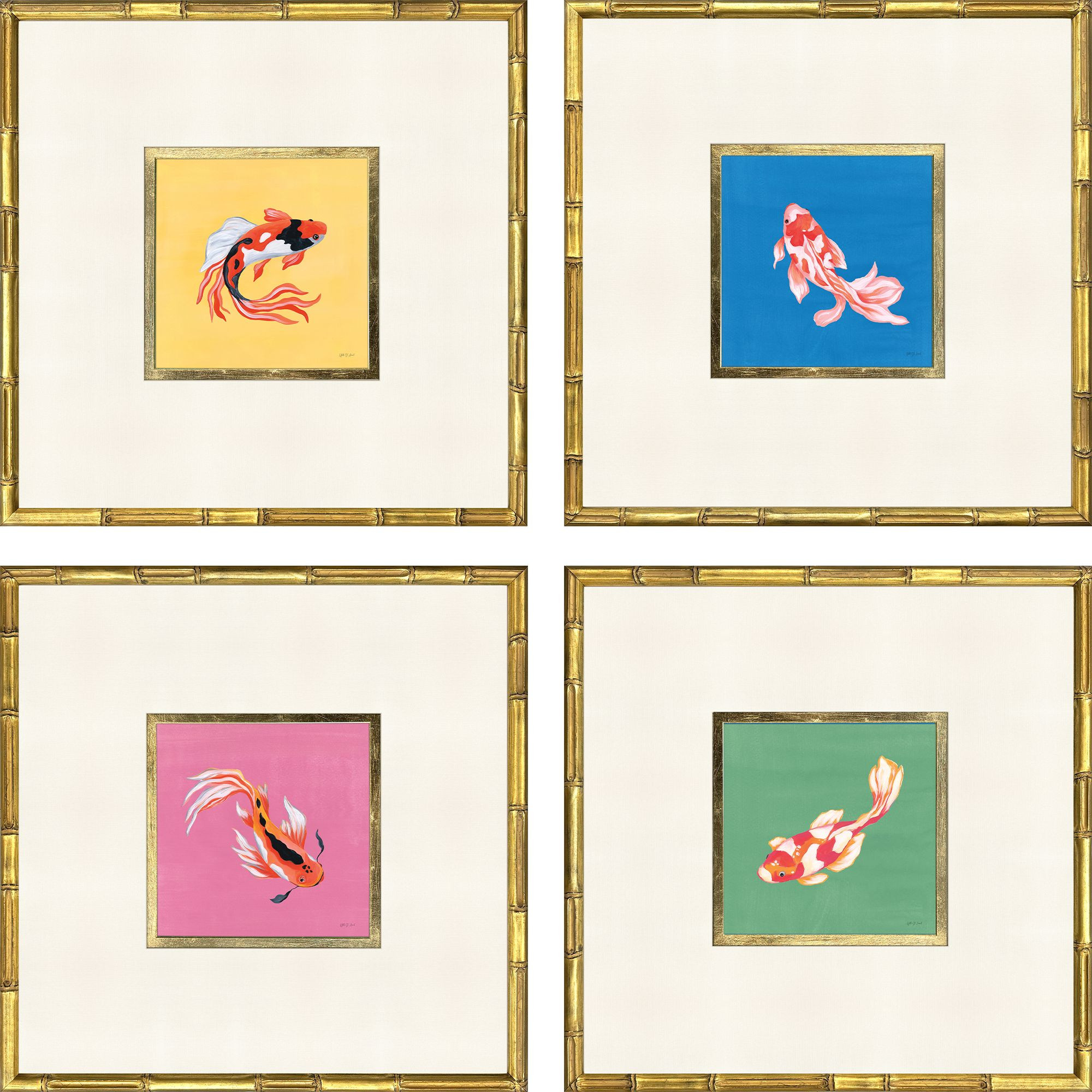 Koi,Fishes,Ponds,Giclee,Hand Finished,Matted Image,Glass Front,Colorful Koi S/4 |