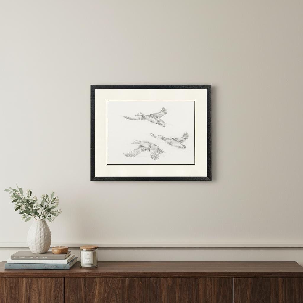 Mallards,Ducks,Giclee,Matted Image,V-Groove Mat Detail,Glass Front,Mallard Duck Sketch II |