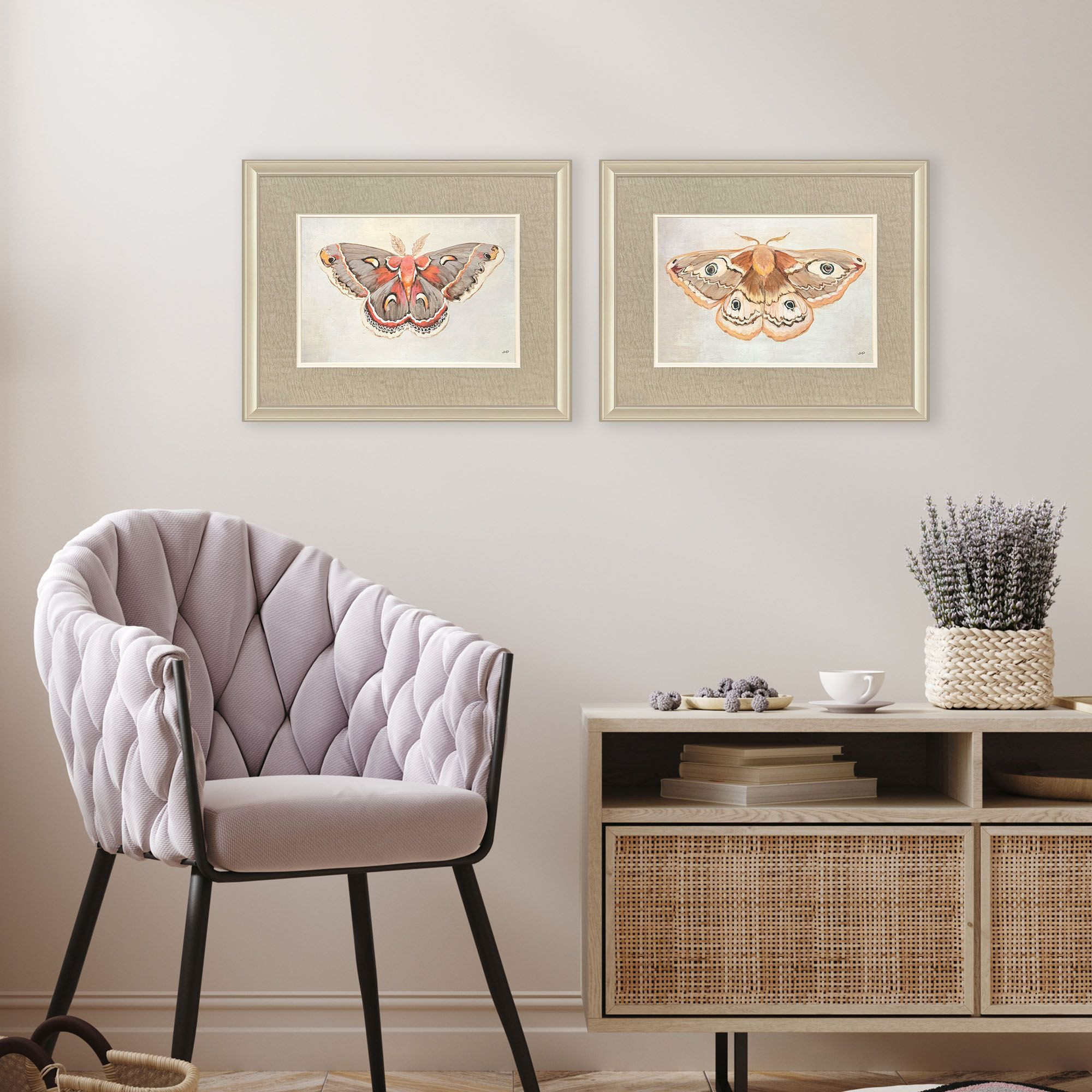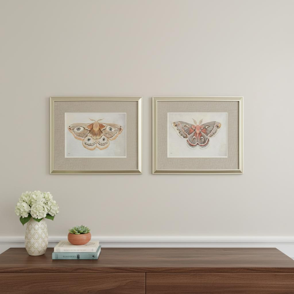 This set of two forest moth gold framed wall art will add a beautiful decorative accent to your decor. This butterfly inspired art will be a great addition to your space. Reproduced for you on paper, this hanging decorative accent will be a trendy and fashionable way to dress your walls. Adding this hanging wall art to your space to make your room feel more finished and attractive. Instantly liven up your space with this art that brings color and dimension to your walls. 19.00-inch h x 24.00-inch w x 1.00-inch d.