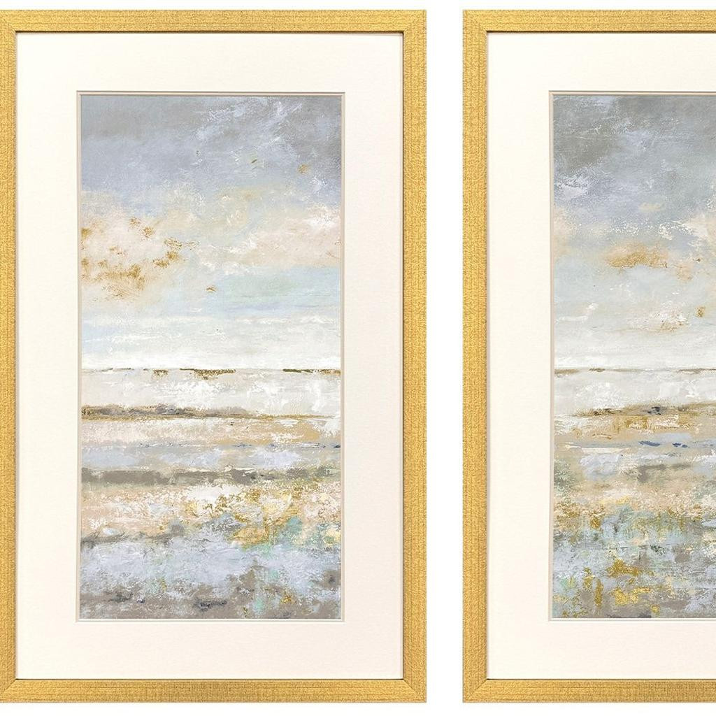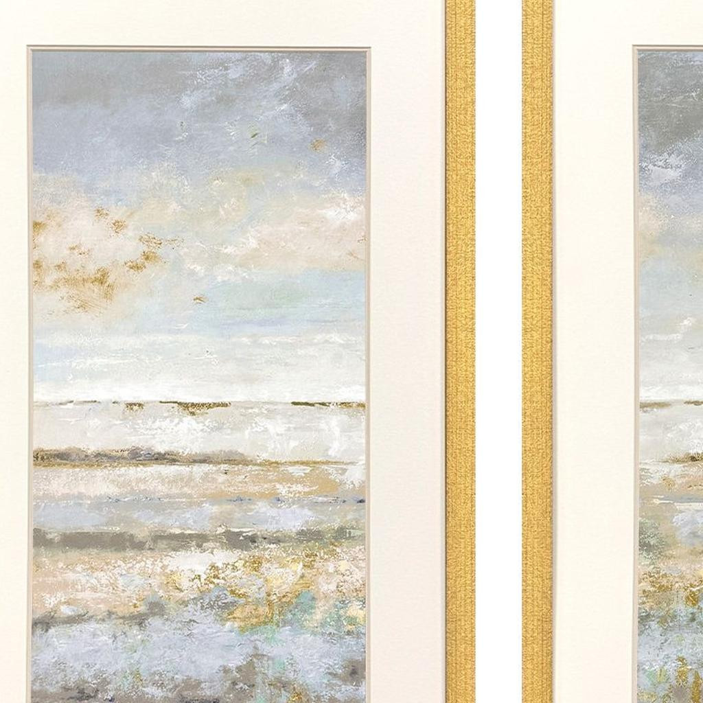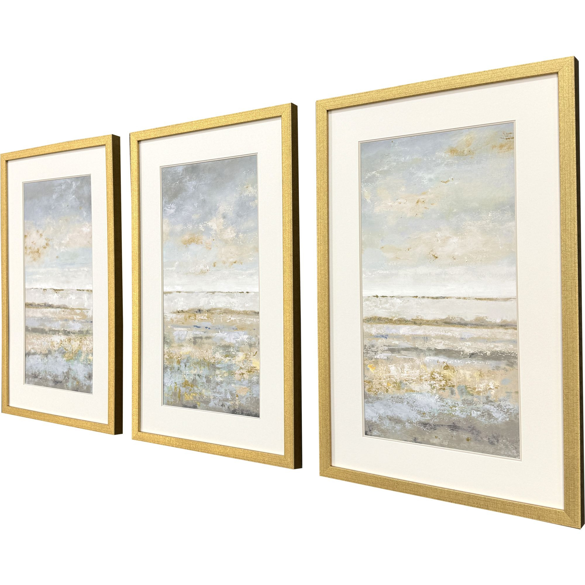 Unique and decorative, this set of three sea horizon distressed gold framed wall art will leave a lasting impression. This block print is a way to express your artistic style and add some fashion to your walls. Reproduced for you on paper, this hanging decorative accent will be a trendy and fashionable way to dress your walls. Adding this hanging wall art to your space to make your room feel more finished and attractive. Utilize this opportunity to create a focal point in the room with this fabulous wall decor option. 32.00-inch h x 20.00-inch w x 2.00-inch d.