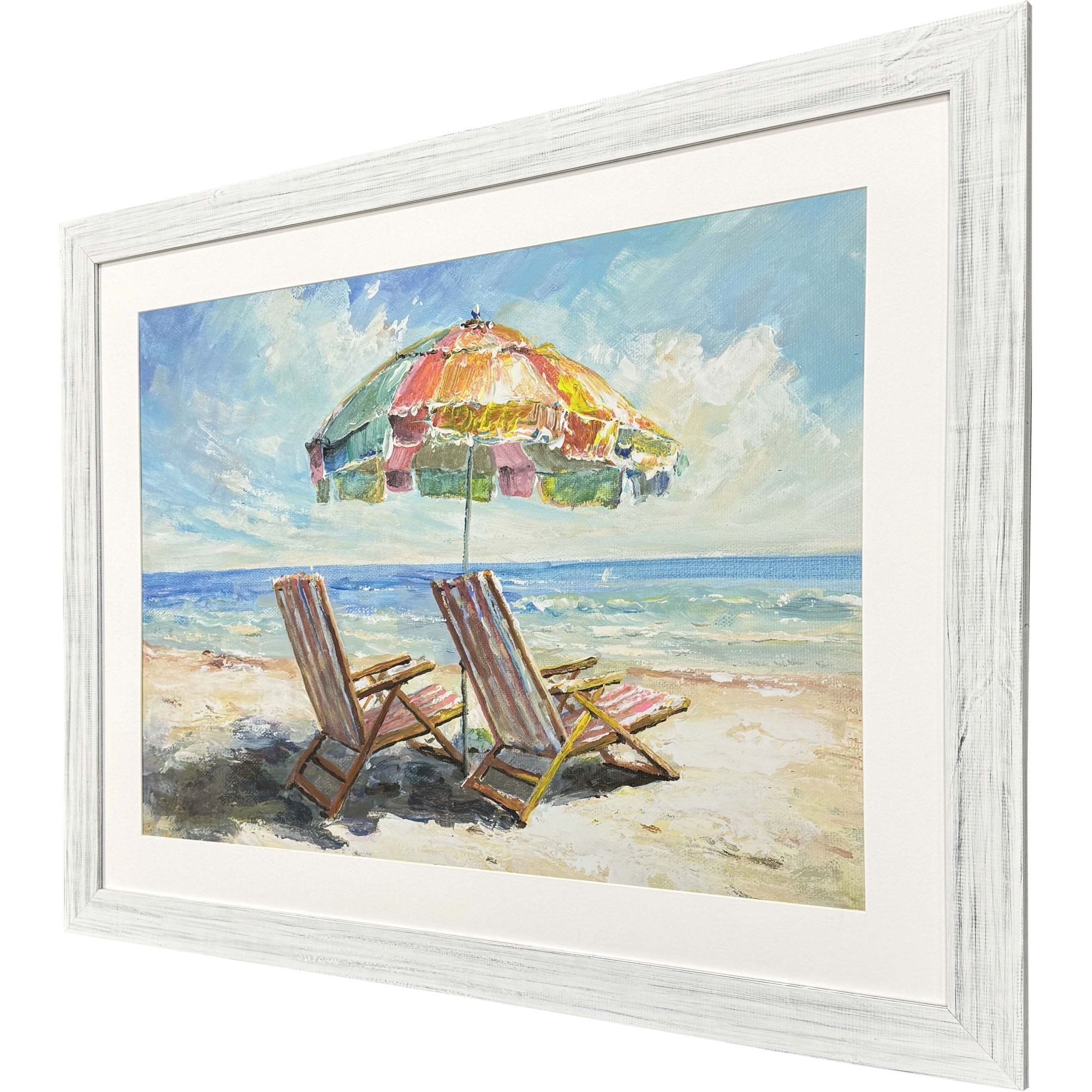 This beach vibe distressed white framed wall art will add a beautiful decorative accent to your decor. This block print is a way to express your artistic style and add some fashion to your walls. Reproduced for you on paper, this hanging decorative accent will be a trendy and fashionable way to dress your walls. Adding this hanging wall art to your space to make your room feel more finished and attractive. Utilize this opportunity to create a focal point in the room with this fabulous wall decor option. 36.00-inch h x 46.00-inch w x 1.00-inch d.