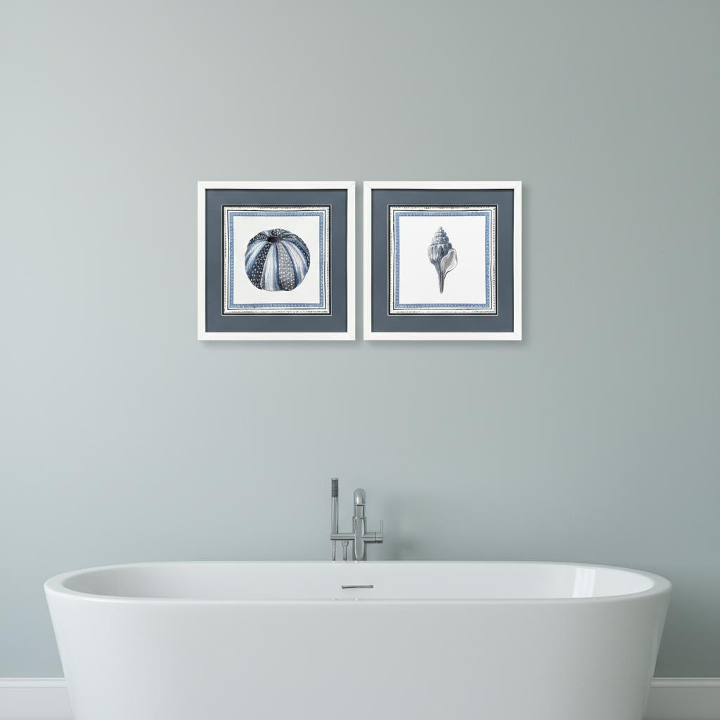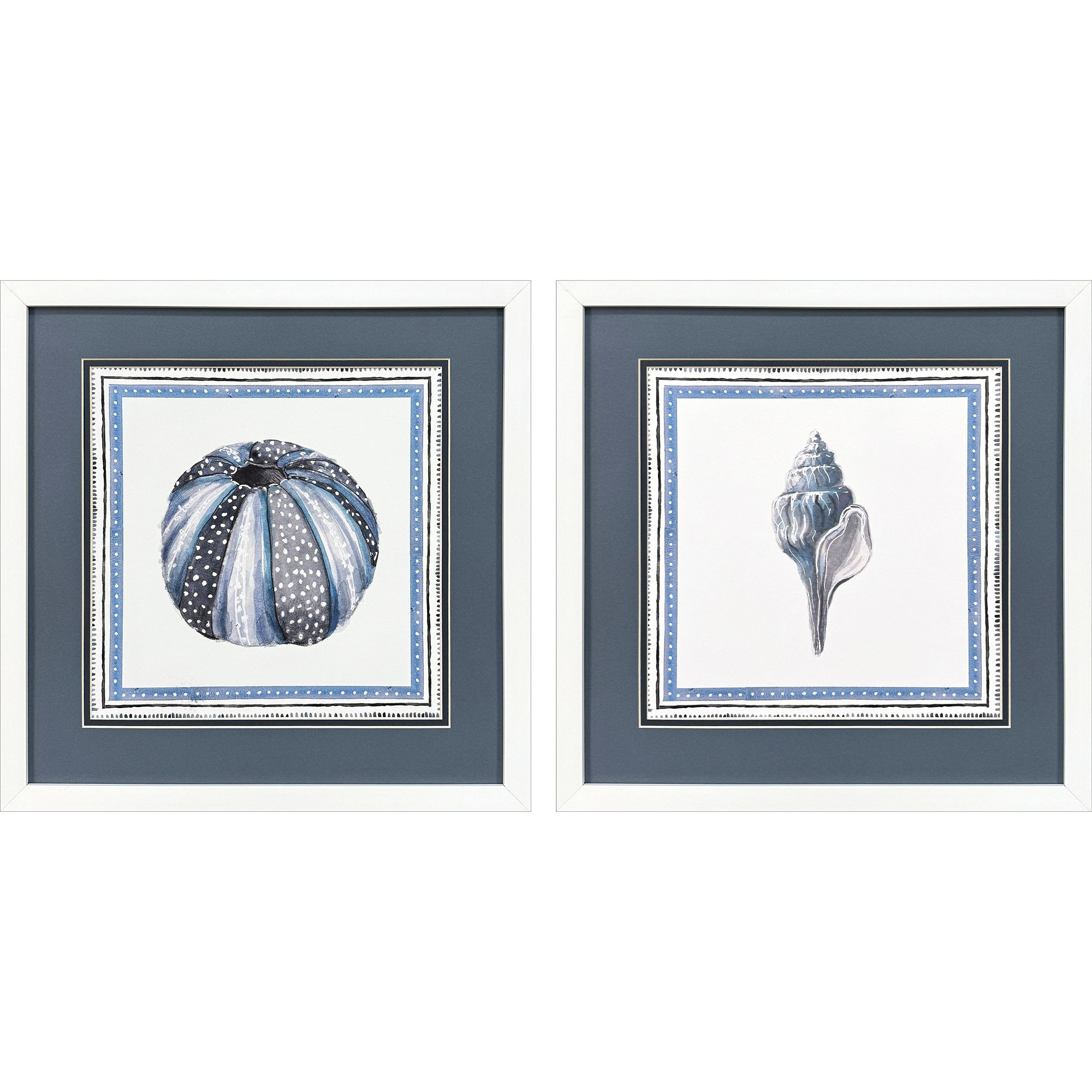 Add an air of fashion to your room and rejuvenate the space with this set of two seaside blues iii white framed wall art. This block print is a way to express your artistic style and add some fashion to your walls. Reproduced for you on paper, this hanging decorative accent will be a trendy and fashionable way to dress your walls. Hang on your wall to add some up to date fashion and decoration. Instantly liven up your space with this art that brings color and dimension to your walls. 17.00-inch h x 17.00-inch w x 2.00-inch d.