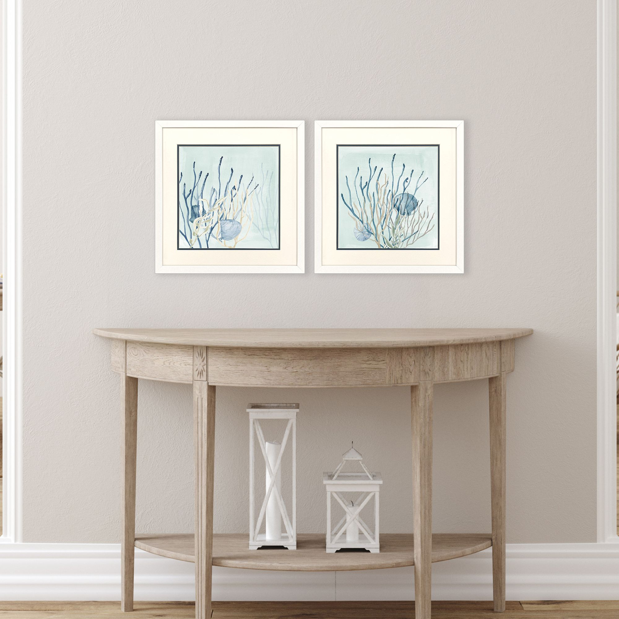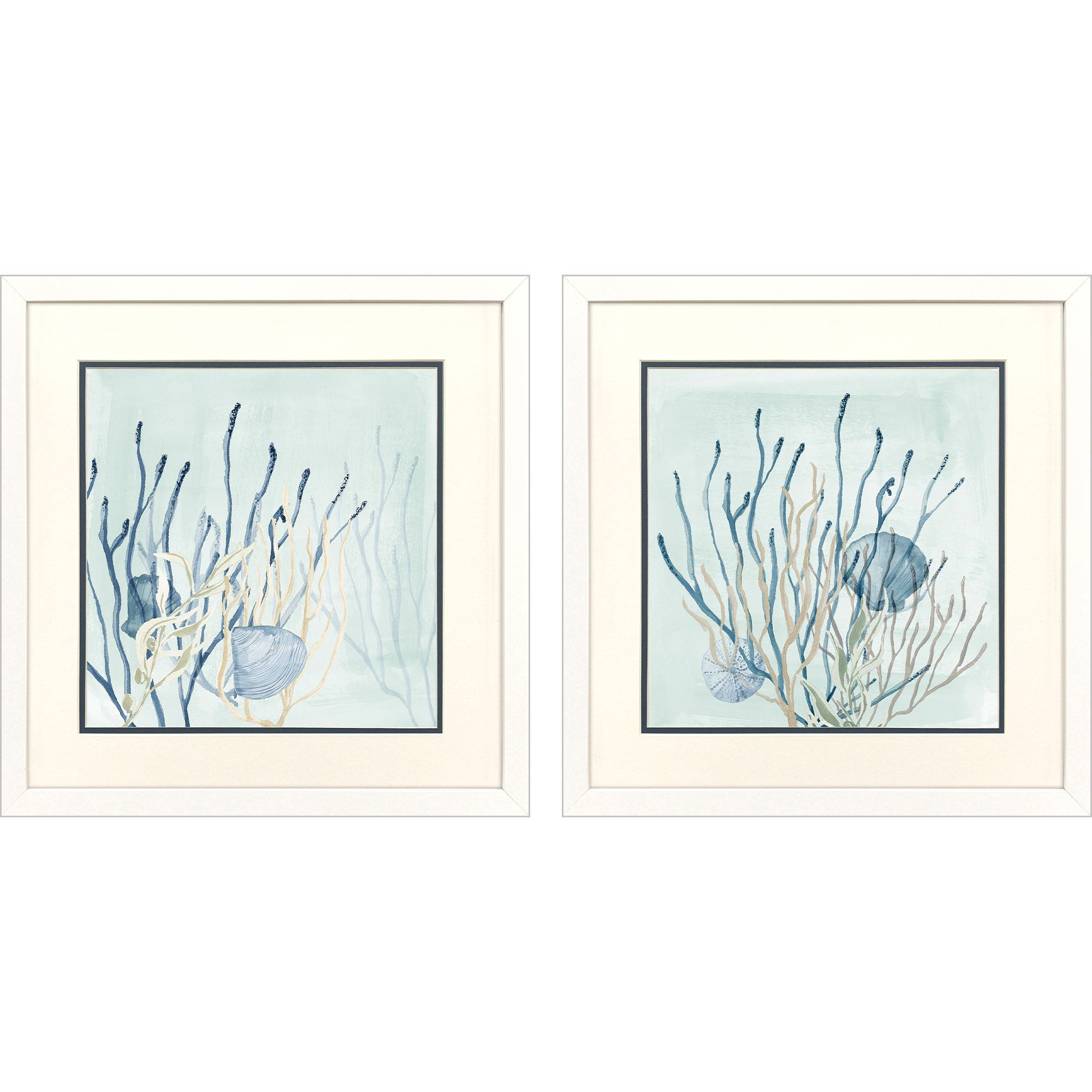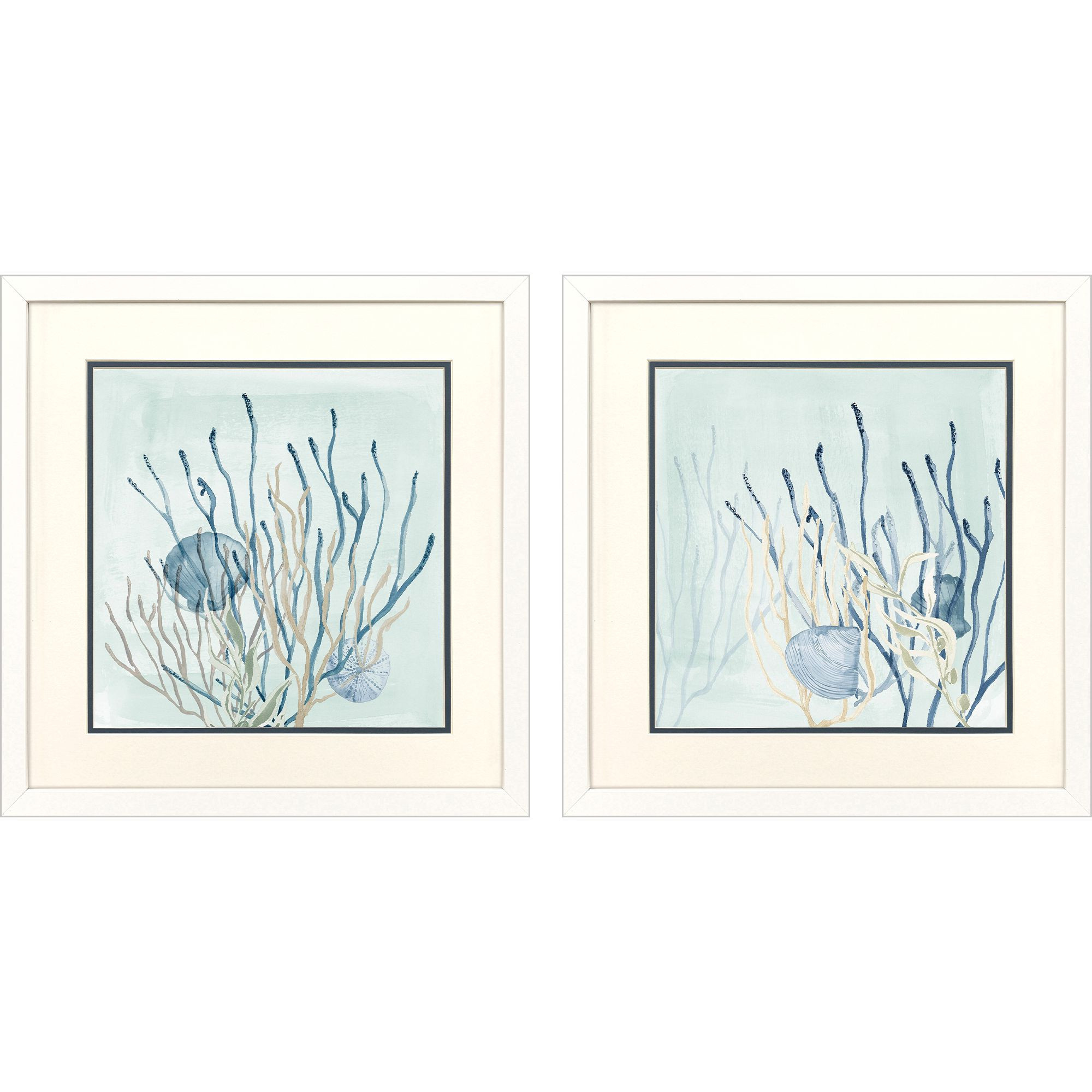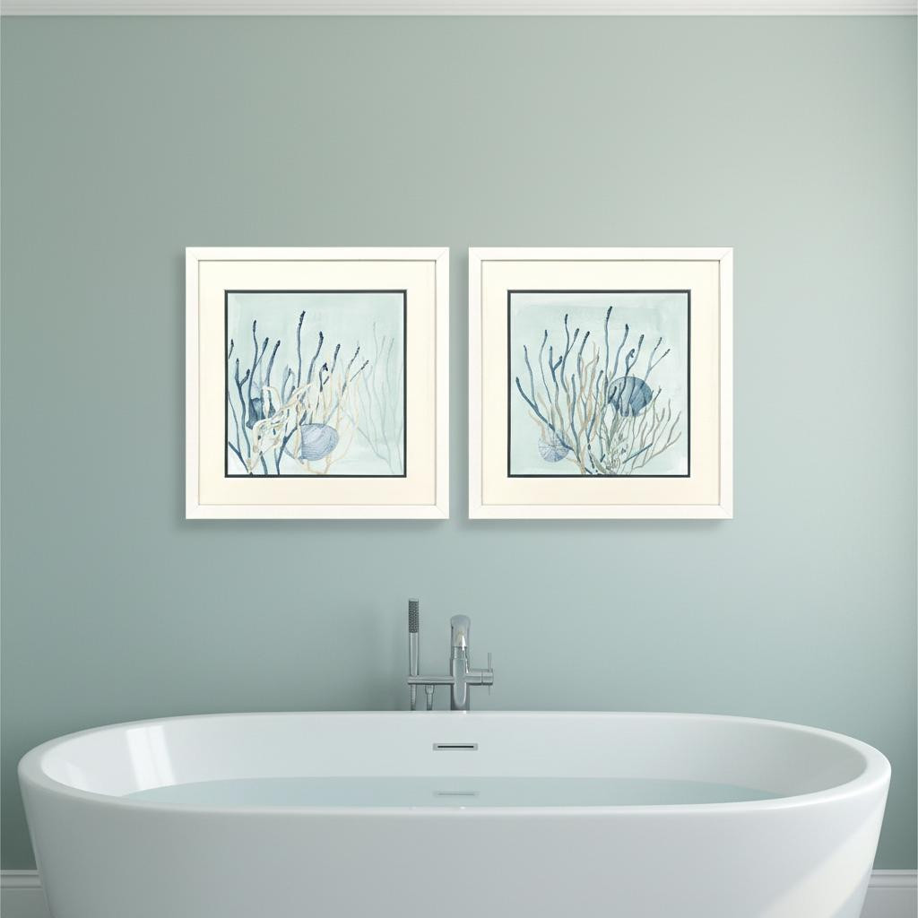Add an air of fashion to your room and rejuvenate the space with this set of two under the sea coral white framed wall art. This block print is a way to express your artistic style and add some fashion to your walls. Reproduced for you on paper, this hanging decorative accent will be a trendy and fashionable way to dress your walls. Hang on your wall to add some up to date fashion and decoration. Instantly liven up your space with this art that brings color and dimension to your walls. 17.00-inch h x 17.00-inch w x 2.00-inch d.