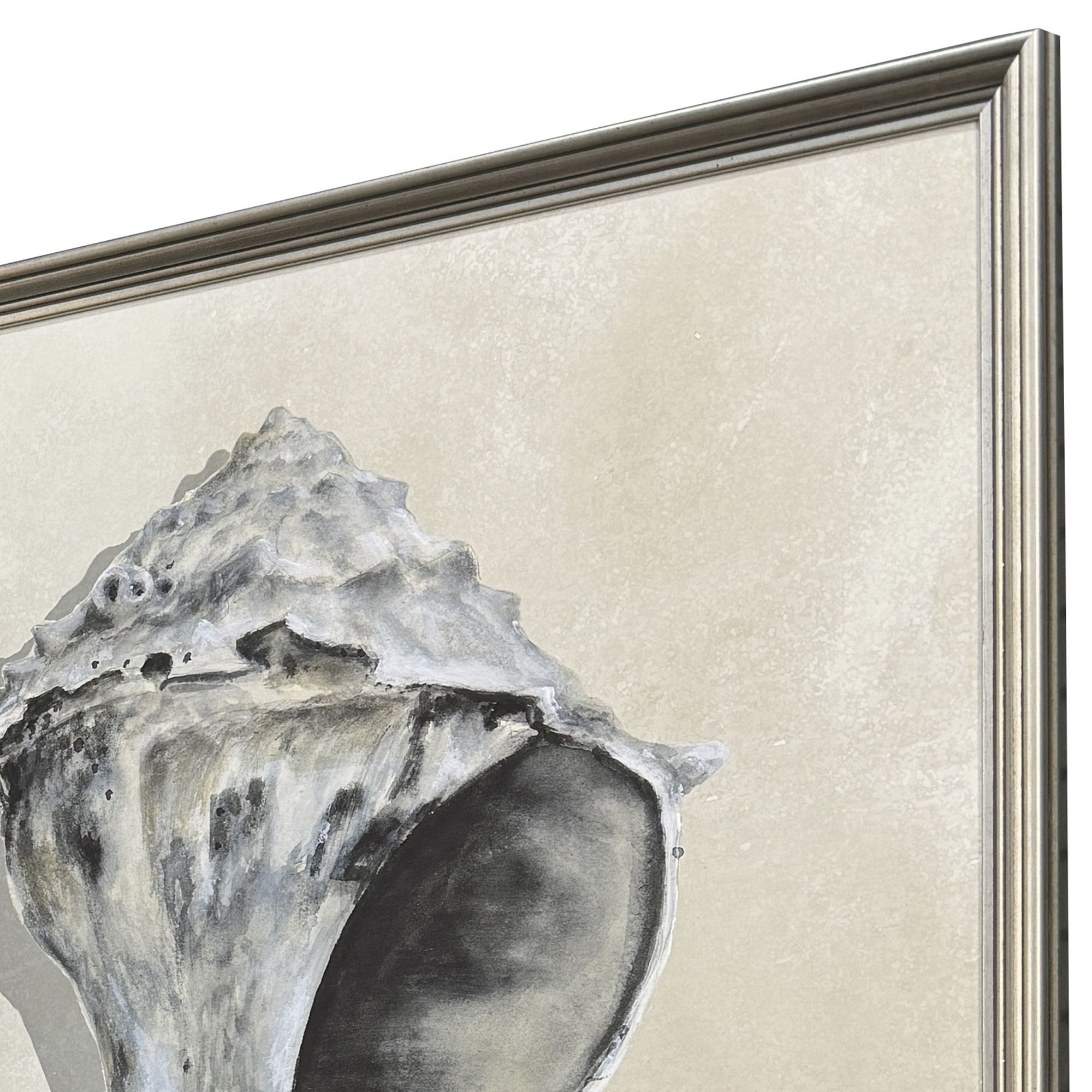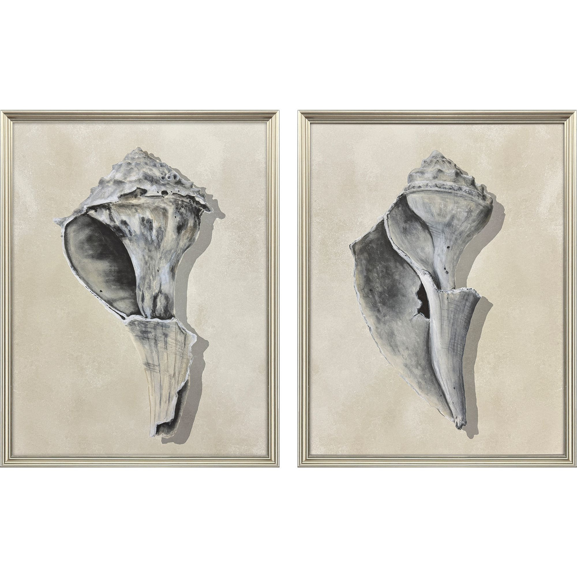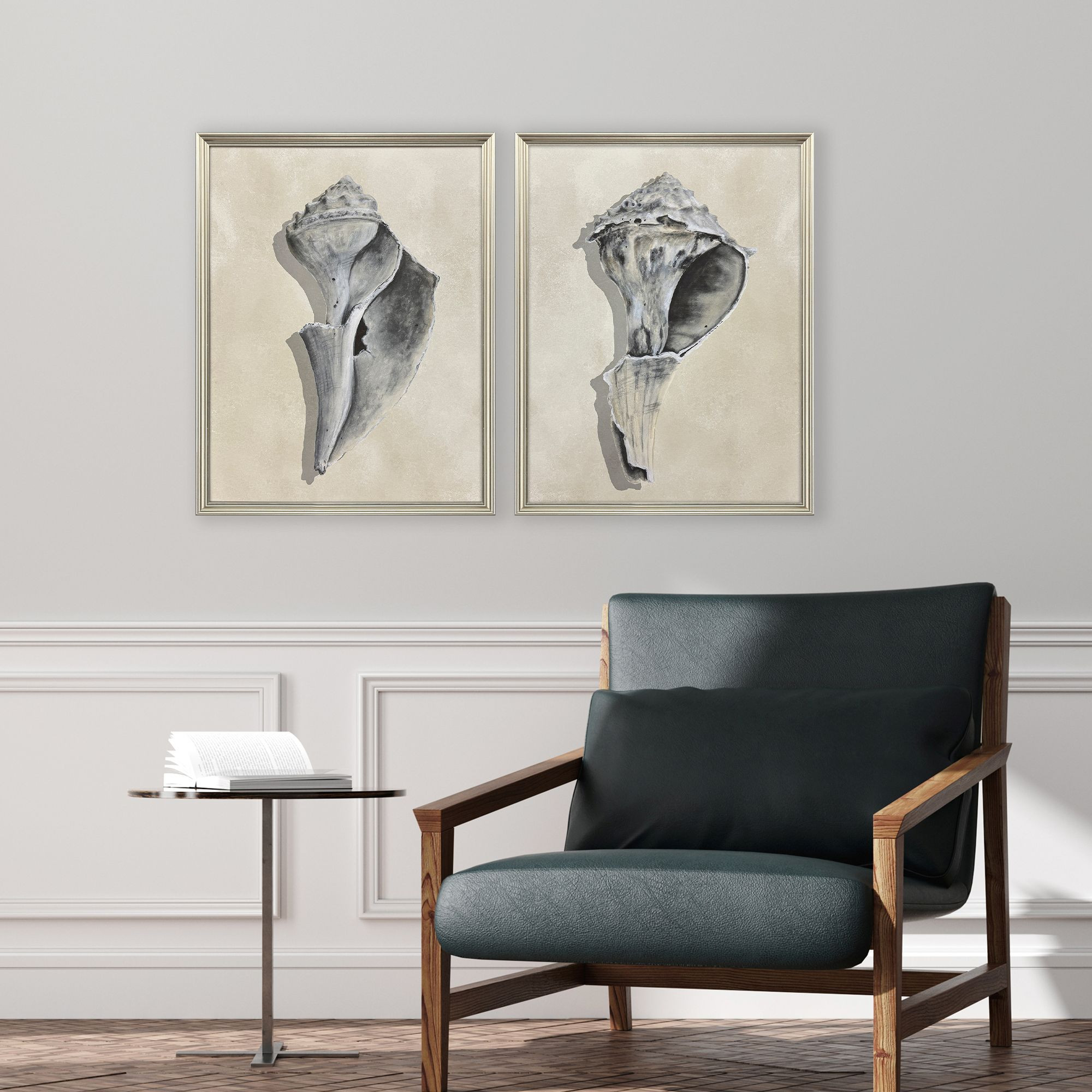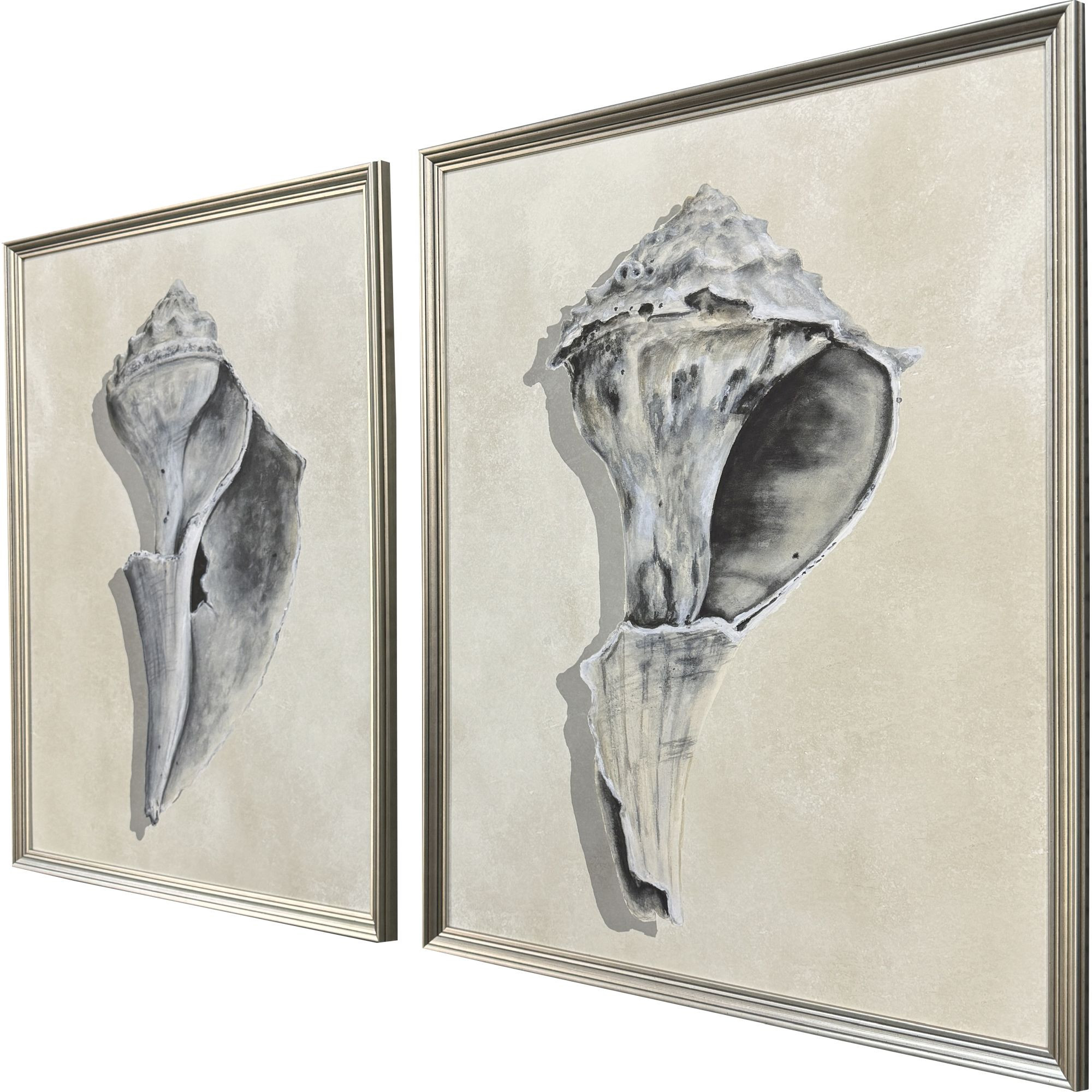 This set of two broken shells i silver framed wall art will add a beautiful decorative accent to your decor. This block print is a way to express your artistic style and add some fashion to your walls. Reproduced for you on paper, this hanging decorative accent will be a trendy and fashionable way to dress your walls. Hang on your wall to add some up to date fashion and decoration. Instantly liven up your space with this art that brings color and dimension to your walls. 27.00-inch h x 21.00-inch w x 1.00-inch d.