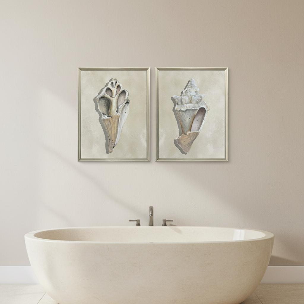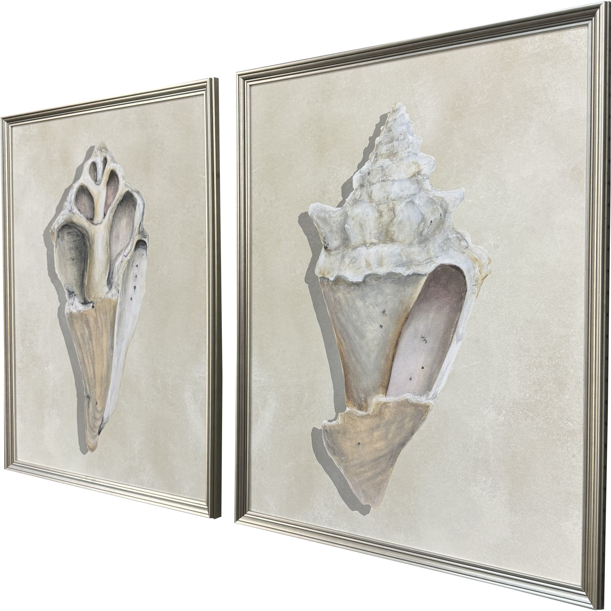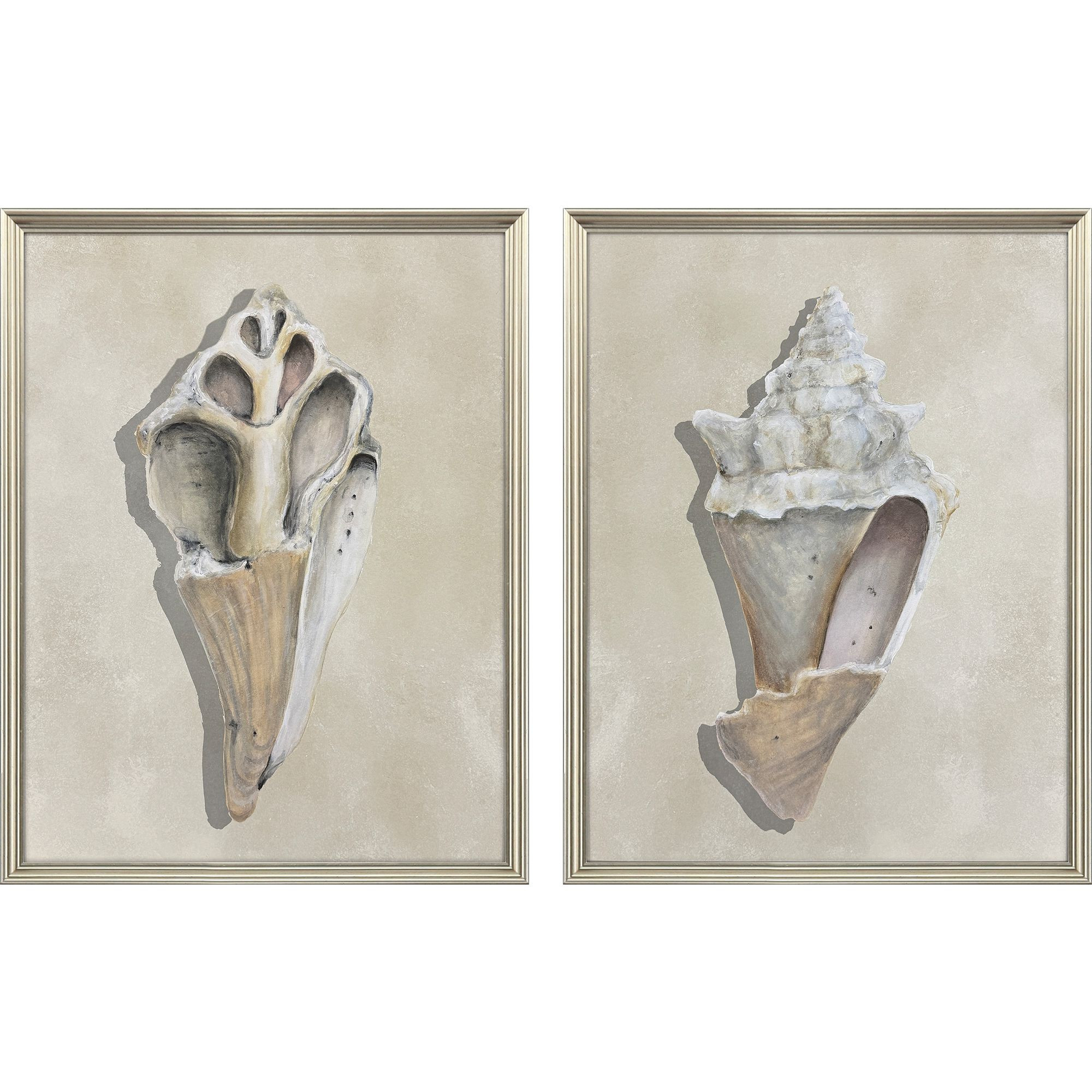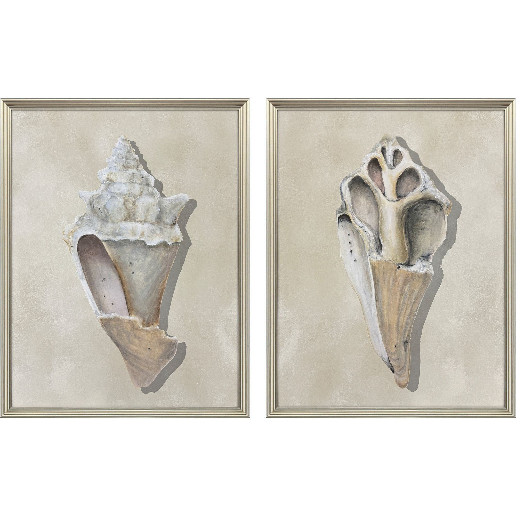 Bring some sizzle to your space with this eye-catching set of two broken shells ii silver framed wall art. This block print is a way to express your artistic style and add some fashion to your walls. Reproduced for you on paper, this hanging decorative accent will be a trendy and fashionable way to dress your walls. Hang on your wall to add some up to date fashion and decoration. Utilize this opportunity to create a focal point in the room with this fabulous wall decor option. 27.00-inch h x 21.00-inch w x 1.00-inch d.