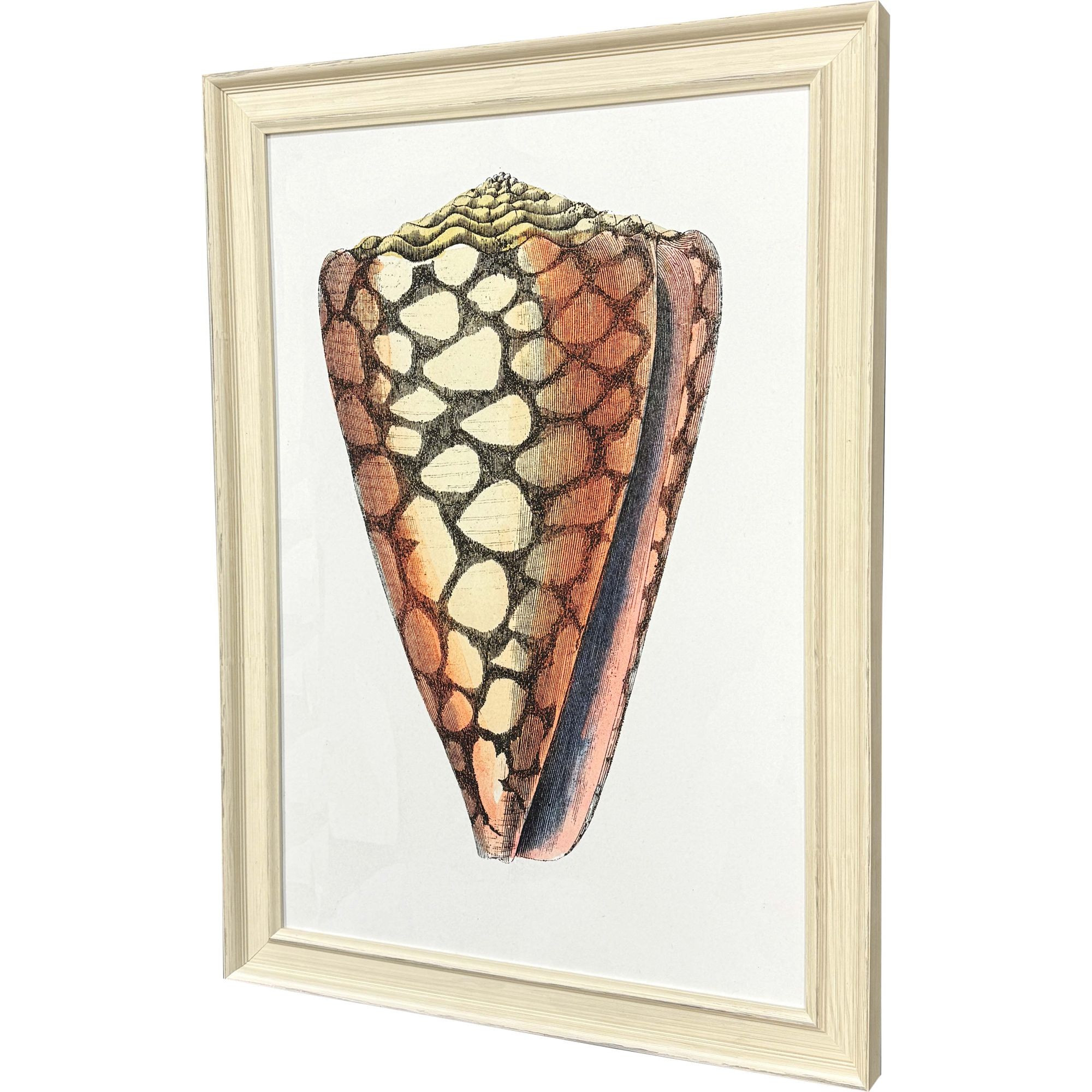 The conch study i distressed white framed wall art is the perfect decorative accessory for your home. This block print is a way to express your artistic style and add some fashion to your walls. Reproduced for you on paper, this hanging decorative accent will be a trendy and fashionable way to dress your walls. Adding this hanging wall art to your space to make your room feel more finished and attractive. Instantly liven up your space with this art that brings color and dimension to your walls. 34.00-inch h x 24.00-inch w x 2.00-inch d.