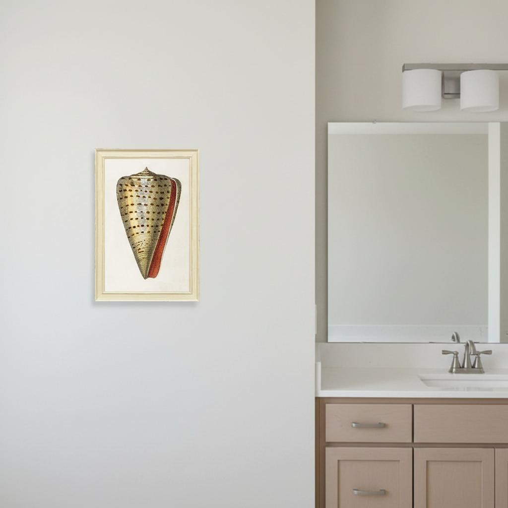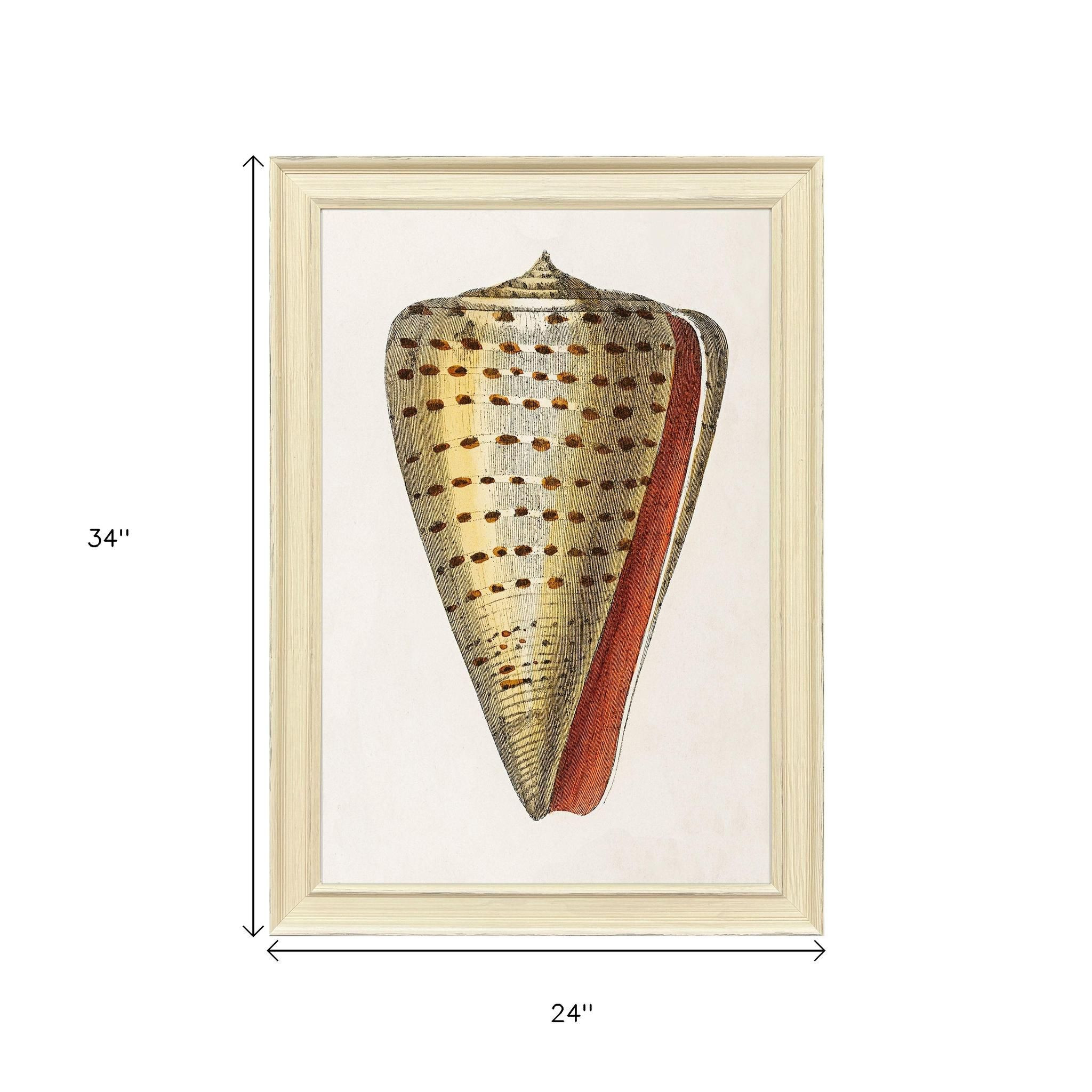 Unique and decorative, this conch study ii distressed white framed wall art will leave a lasting impression. This block print is a way to express your artistic style and add some fashion to your walls. Reproduced for you on paper, this hanging decorative accent will be a trendy and fashionable way to dress your walls. Hang on your wall to add some up to date fashion and decoration. Utilize this opportunity to create a focal point in the room with this fabulous wall decor option. 34.00-inch h x 24.00-inch w x 2.00-inch d.