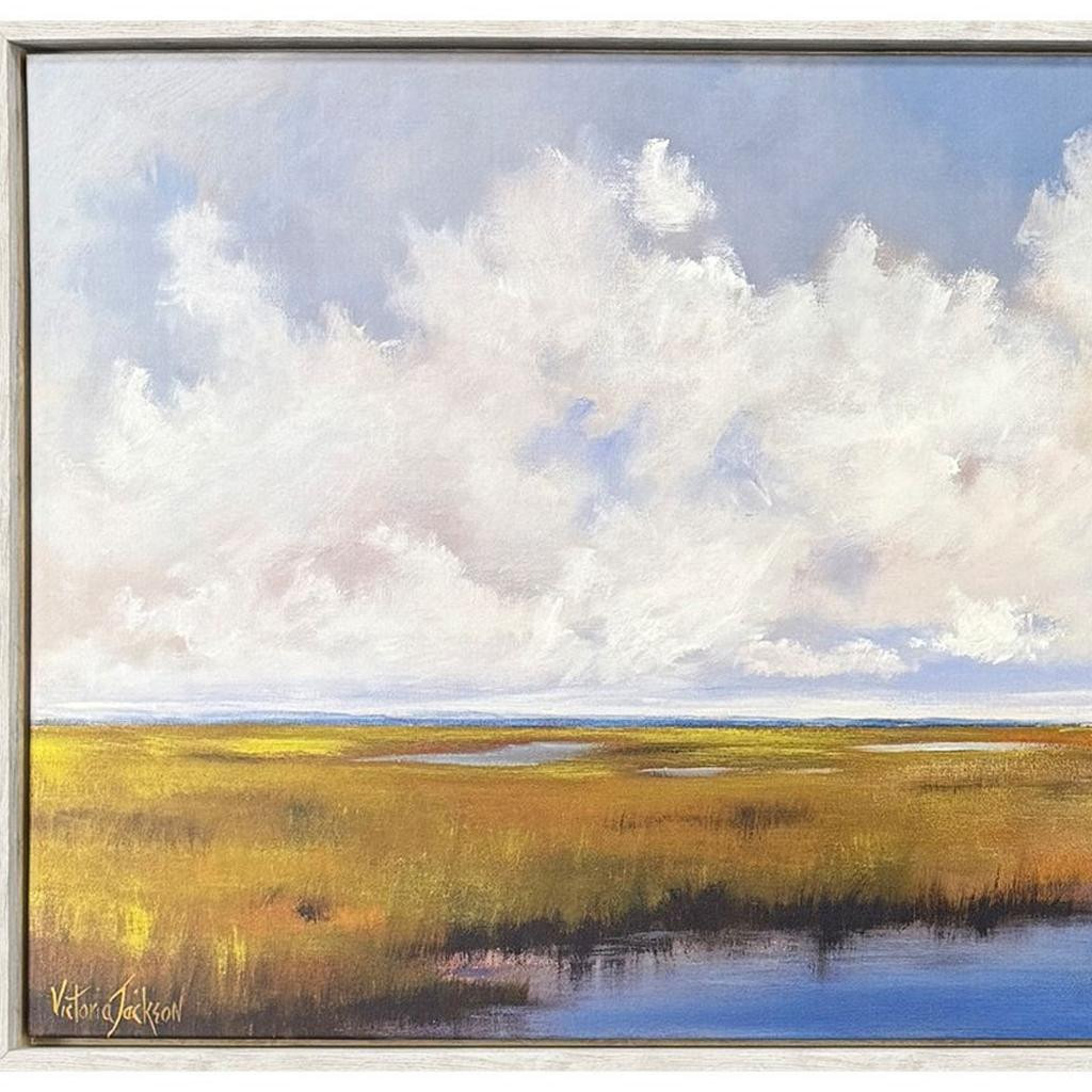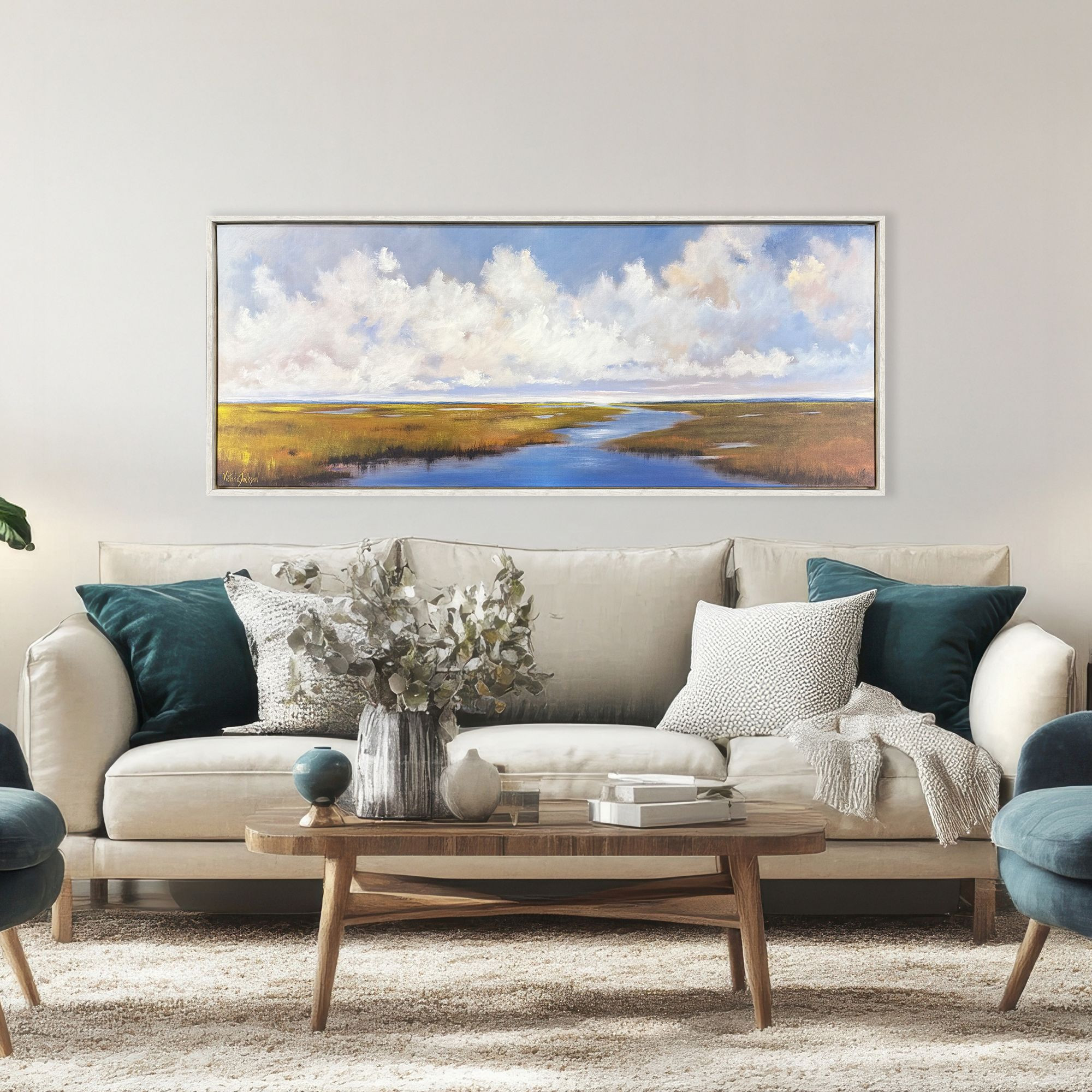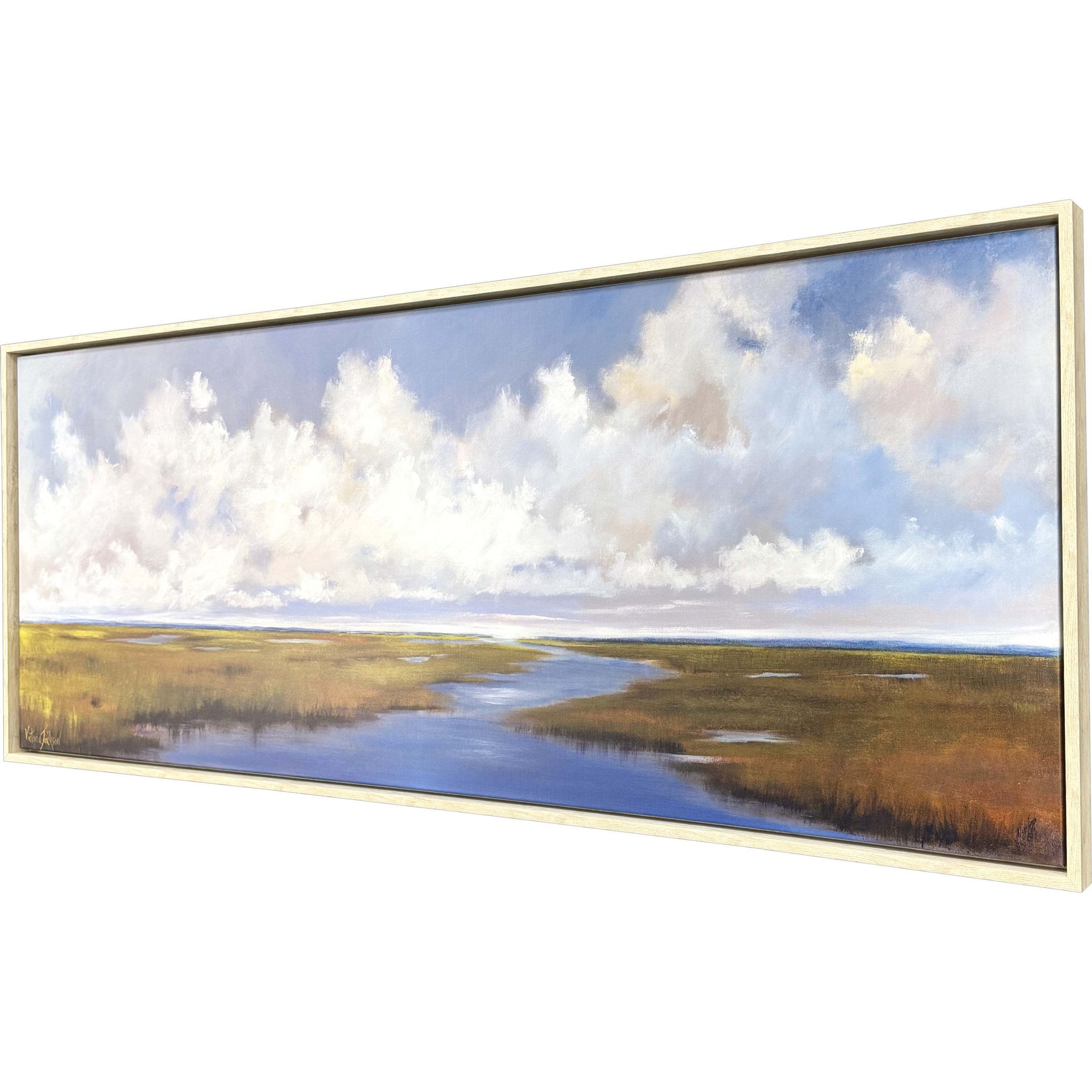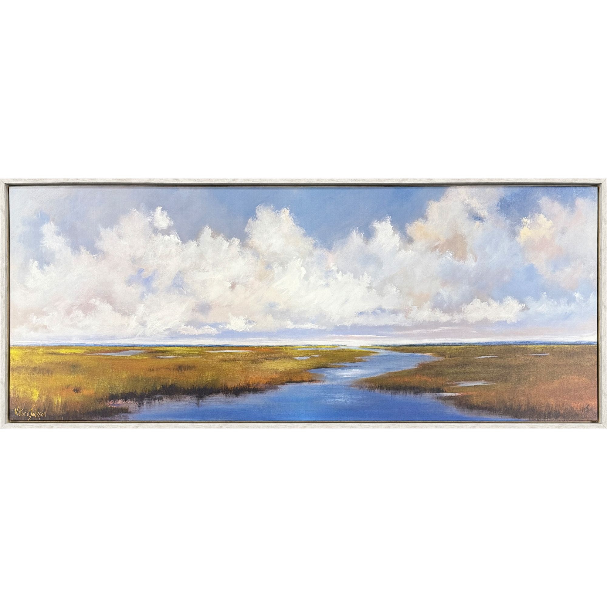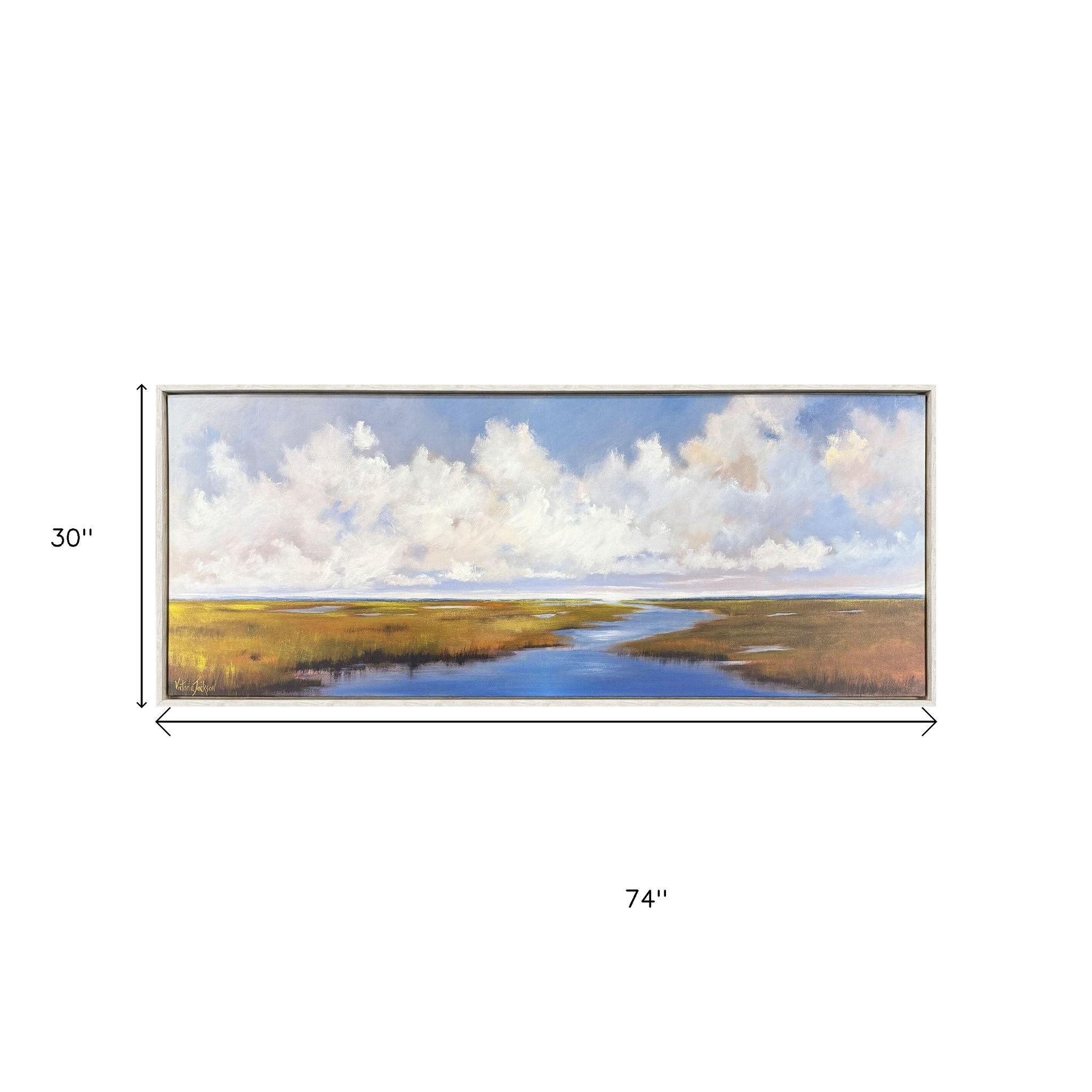Unique and decorative, this departing ii distressed white floater frame wall art will leave a lasting impression. This block print is a way to express your artistic style and add some fashion to your walls. Reproduced for you on canvas, this hanging decorative accent will be a trendy and fashionable way to dress your walls. Hang on your wall to add some up to date fashion and decoration. Instantly liven up your space with this art that brings color and dimension to your walls. 30.00-inch h x 74.00-inch w x 3.00-inch d.