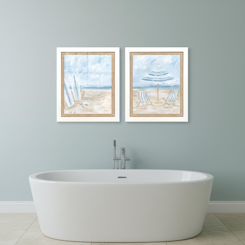 Bring some sizzle to your space with this eye-catching set of two beaching it white framed wall art. This block print is a way to express your artistic style and add some fashion to your walls. Reproduced for you on paper, this hanging decorative accent will be a trendy and fashionable way to dress your walls. Adding this hanging wall art to your space to make your room feel more finished and attractive. Utilize this opportunity to create a focal point in the room with this fabulous wall decor option. 24.00-inch h x 20.00-inch w x 2.00-inch d.