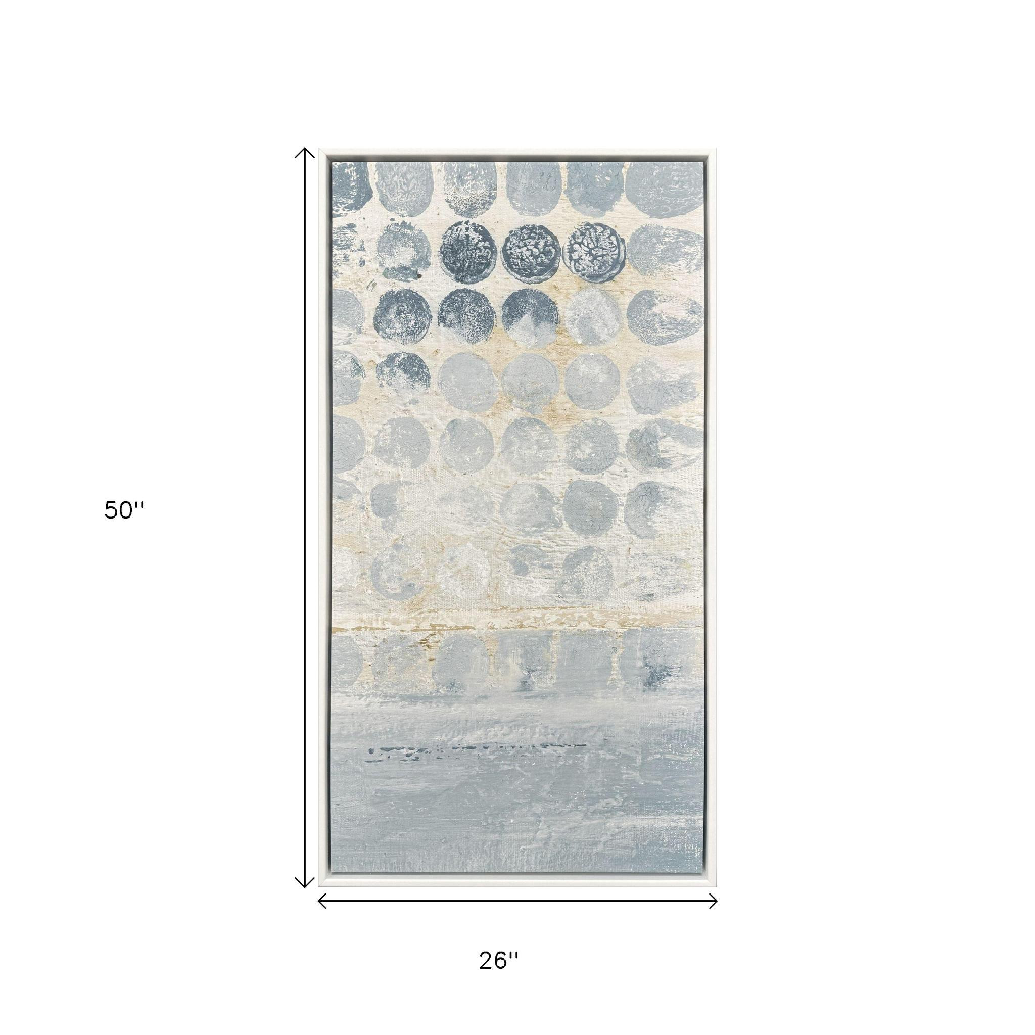 The blue dots ii white framed wall art is the perfect decorative accessory for your home. This block print is a way to express your artistic style and add some fashion to your walls. Reproduced for you on canvas, this hanging decorative accent will be a trendy and fashionable way to dress your walls. Adding this hanging wall art to your space to make your room feel more finished and attractive. Instantly liven up your space with this art that brings color and dimension to your walls. 50.00-inch h x 26.00-inch w x 2.00-inch d.
