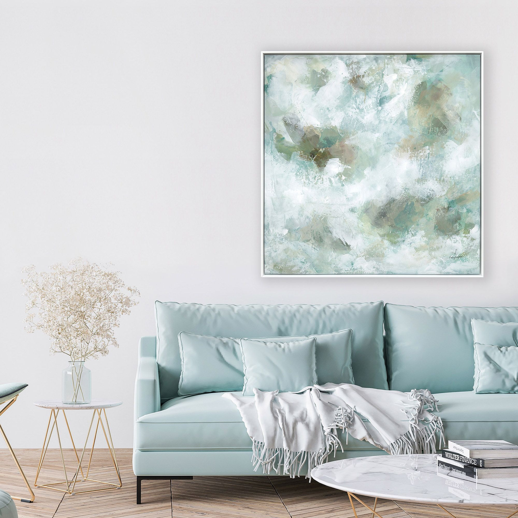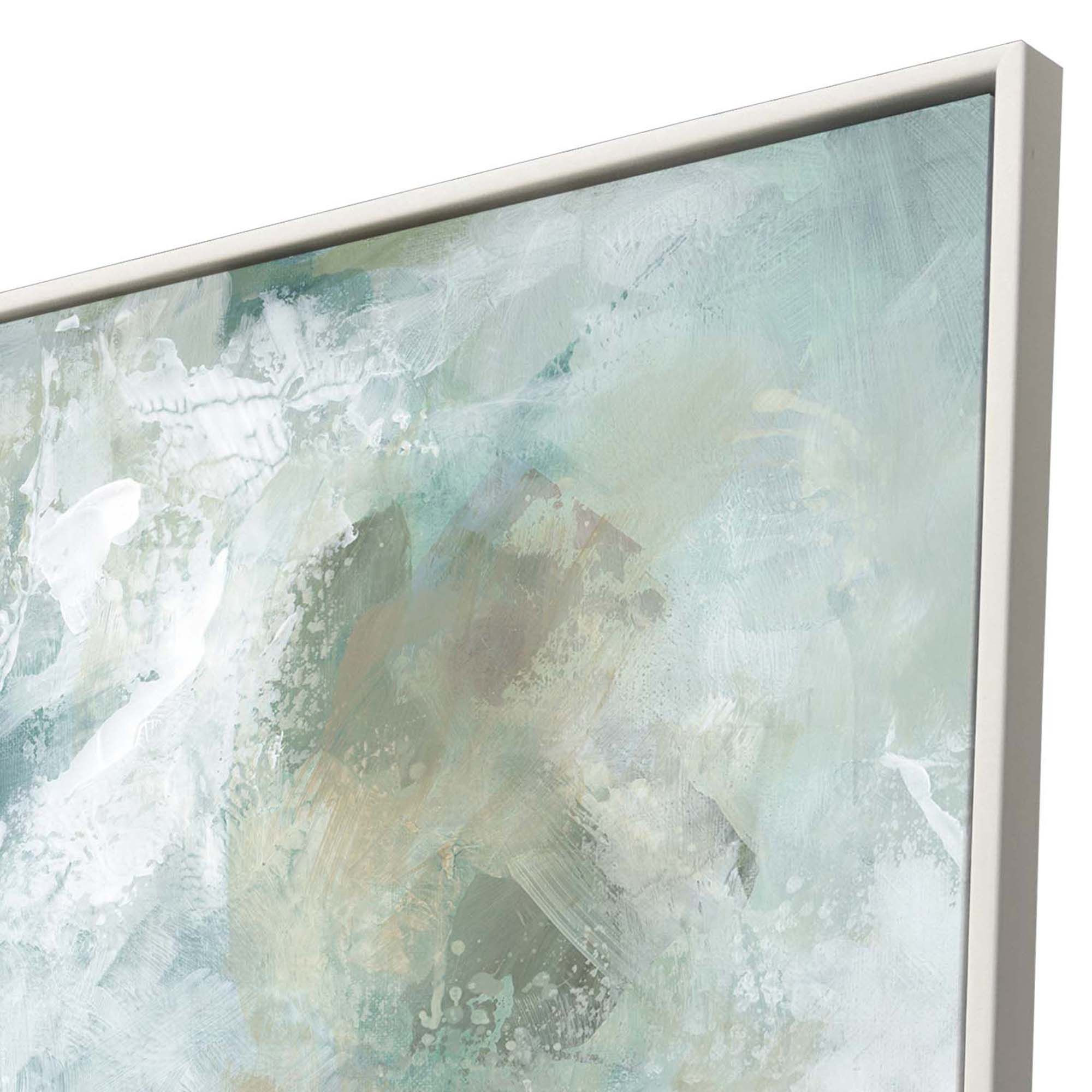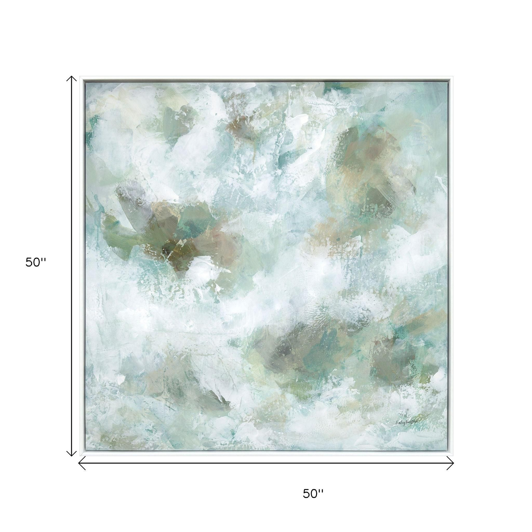 Add an air of fashion to your room and rejuvenate the space with this seaglass white framed wall art. This block print is a way to express your artistic style and add some fashion to your walls. Reproduced for you on canvas, this hanging decorative accent will be a trendy and fashionable way to dress your walls. Hang on your wall to add some up to date fashion and decoration. Instantly liven up your space with this art that brings color and dimension to your walls. 50.00-inch h x 50.00-inch w x 2.00-inch d.