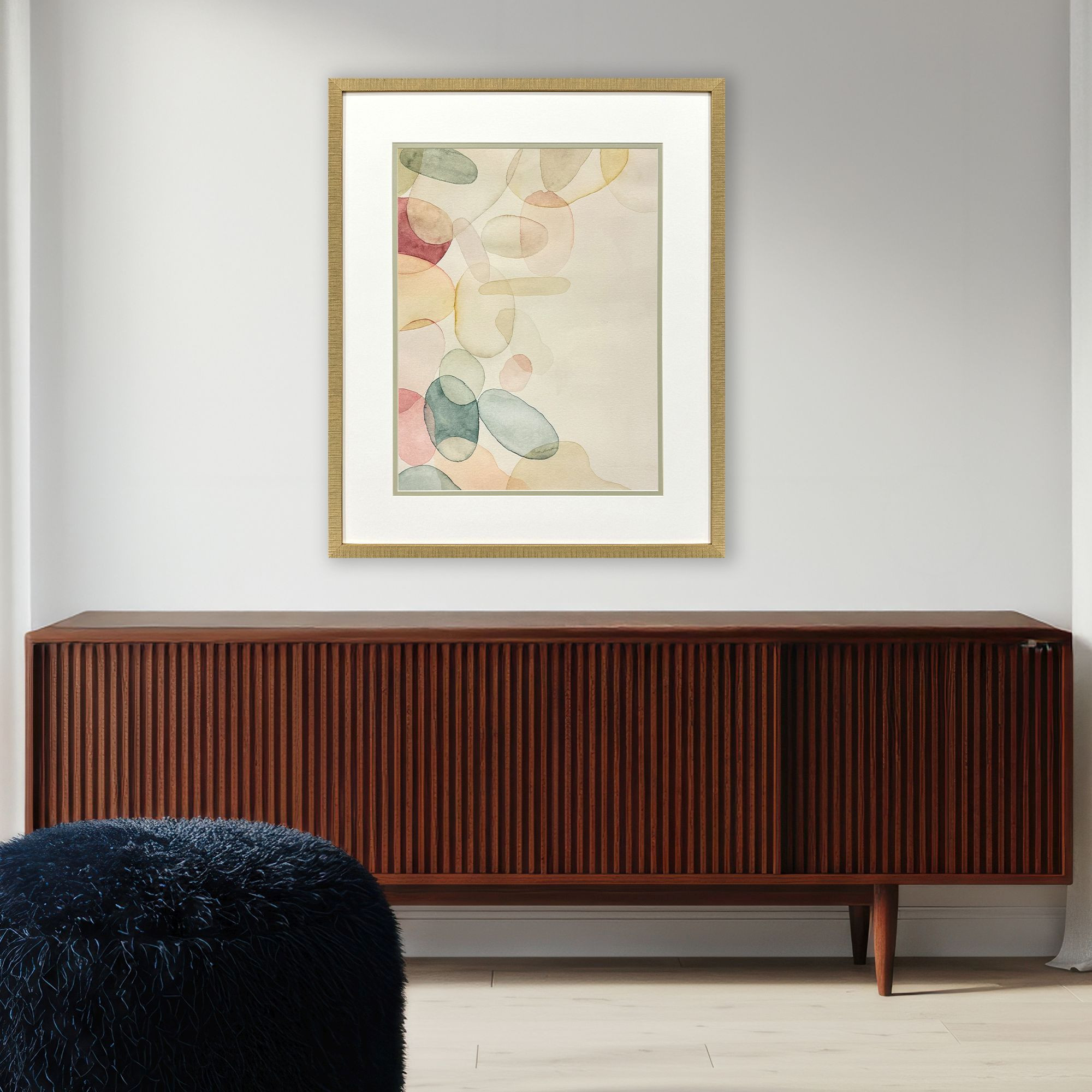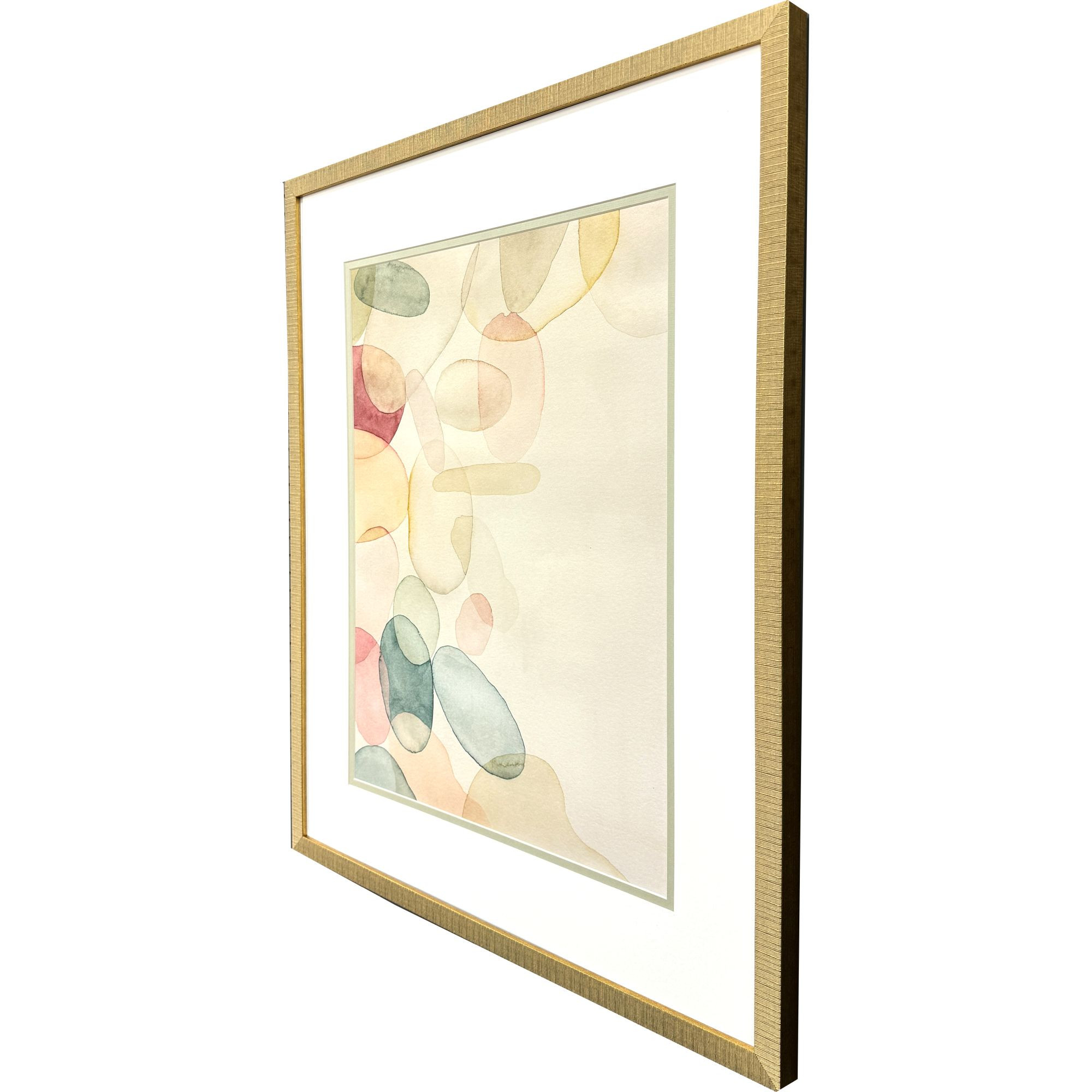 Unique and decorative, this pastel river rock i distressed gold framed wall art will leave a lasting impression. This block print is a way to express your artistic style and add some fashion to your walls. Reproduced for you on paper, this hanging decorative accent will be a trendy and fashionable way to dress your walls. Hang on your wall to add some up to date fashion and decoration. Utilize this opportunity to create a focal point in the room with this fabulous wall decor option. 36.00-inch h x 30.00-inch w x 2.00-inch d.
