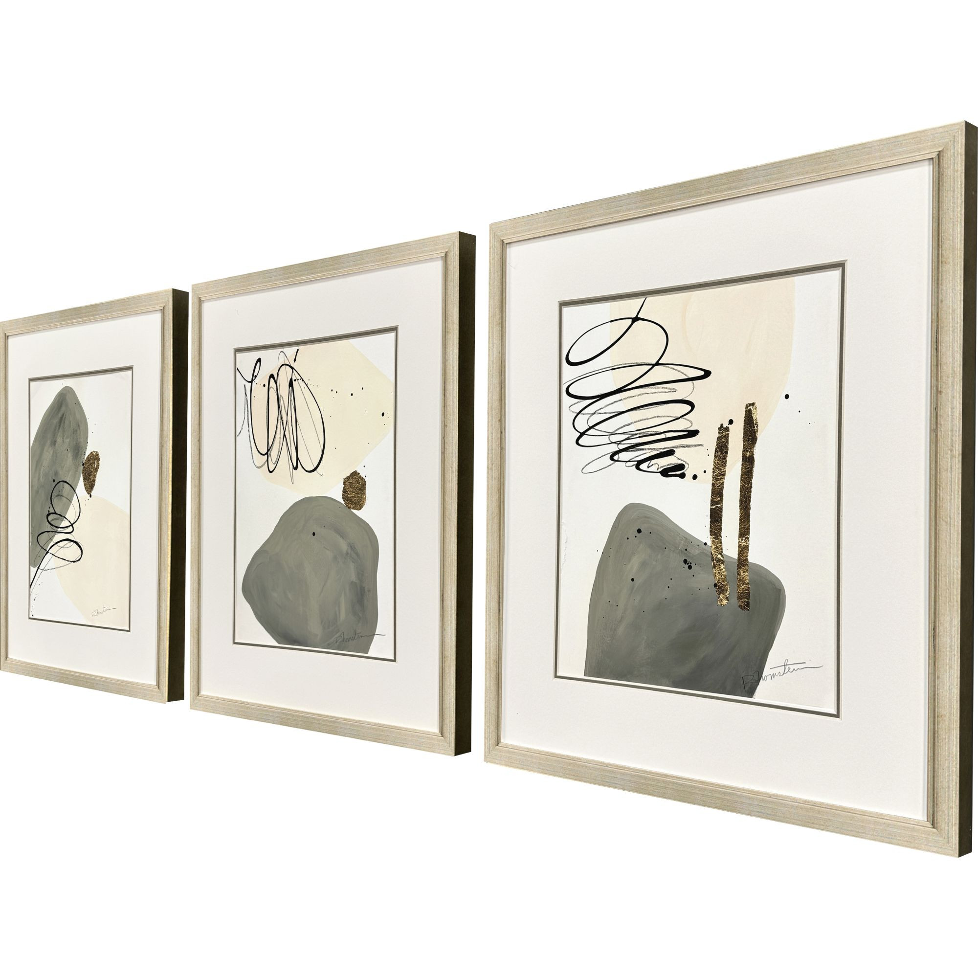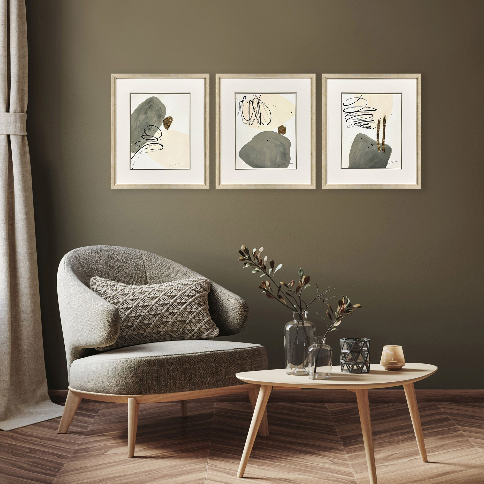 Add an air of fashion to your room and rejuvenate the space with this set of three rock garden gold framed wall art. This block print is a way to express your artistic style and add some fashion to your walls. Reproduced for you on paper, this hanging decorative accent will be a trendy and fashionable way to dress your walls. Hang on your wall to add some up to date fashion and decoration. Utilize this opportunity to create a focal point in the room with this fabulous wall decor option. 15.00-inch h x 13.00-inch w x 1.00-inch d.