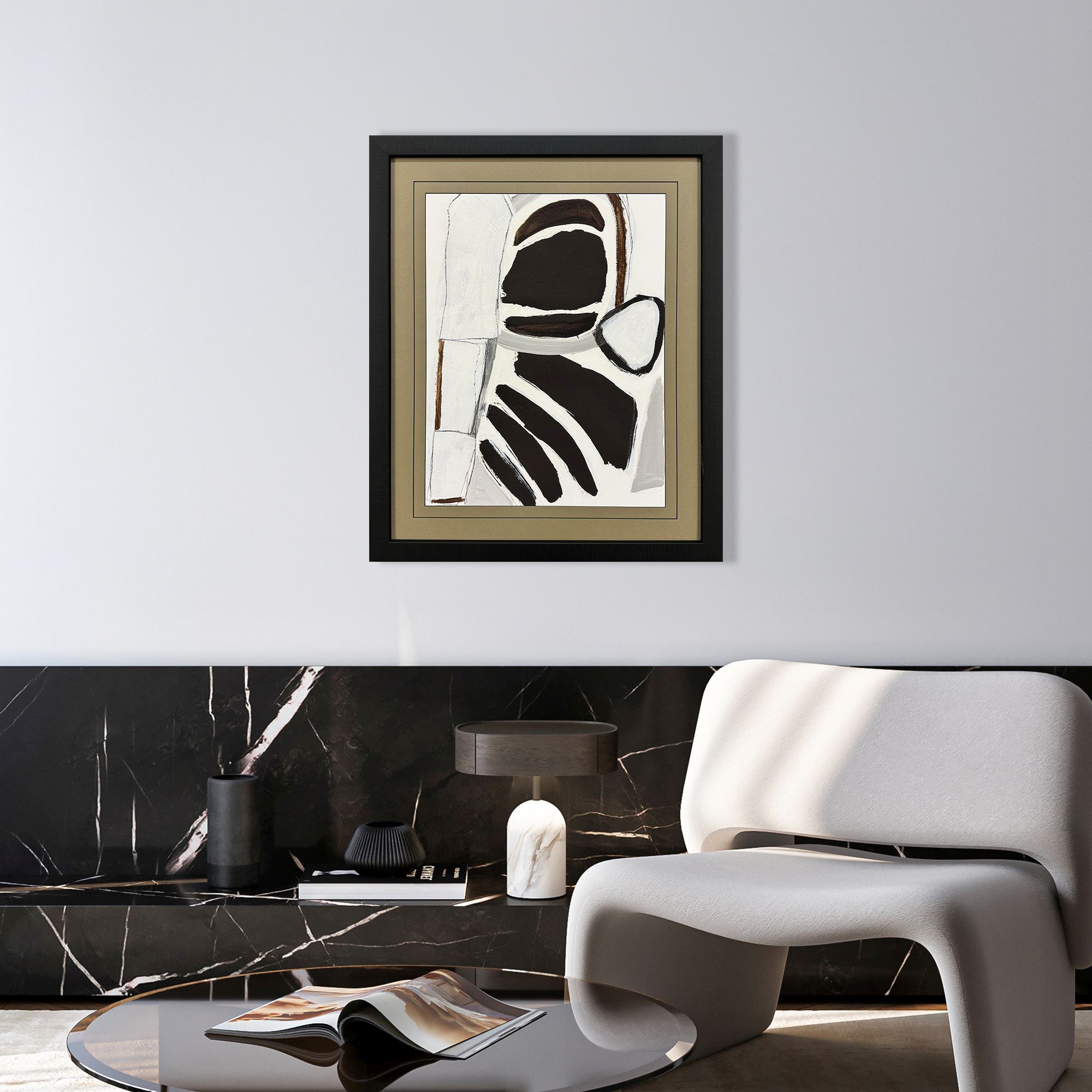 Unique and decorative, this graphic shape shift ii black framed wall art will leave a lasting impression. This block print is a way to express your artistic style and add some fashion to your walls. Reproduced for you on paper, this hanging decorative accent will be a trendy and fashionable way to dress your walls. Hang on your wall to add some up to date fashion and decoration. Utilize this opportunity to create a focal point in the room with this fabulous wall decor option. 35.00-inch h x 29.00-inch w x 2.00-inch d.
