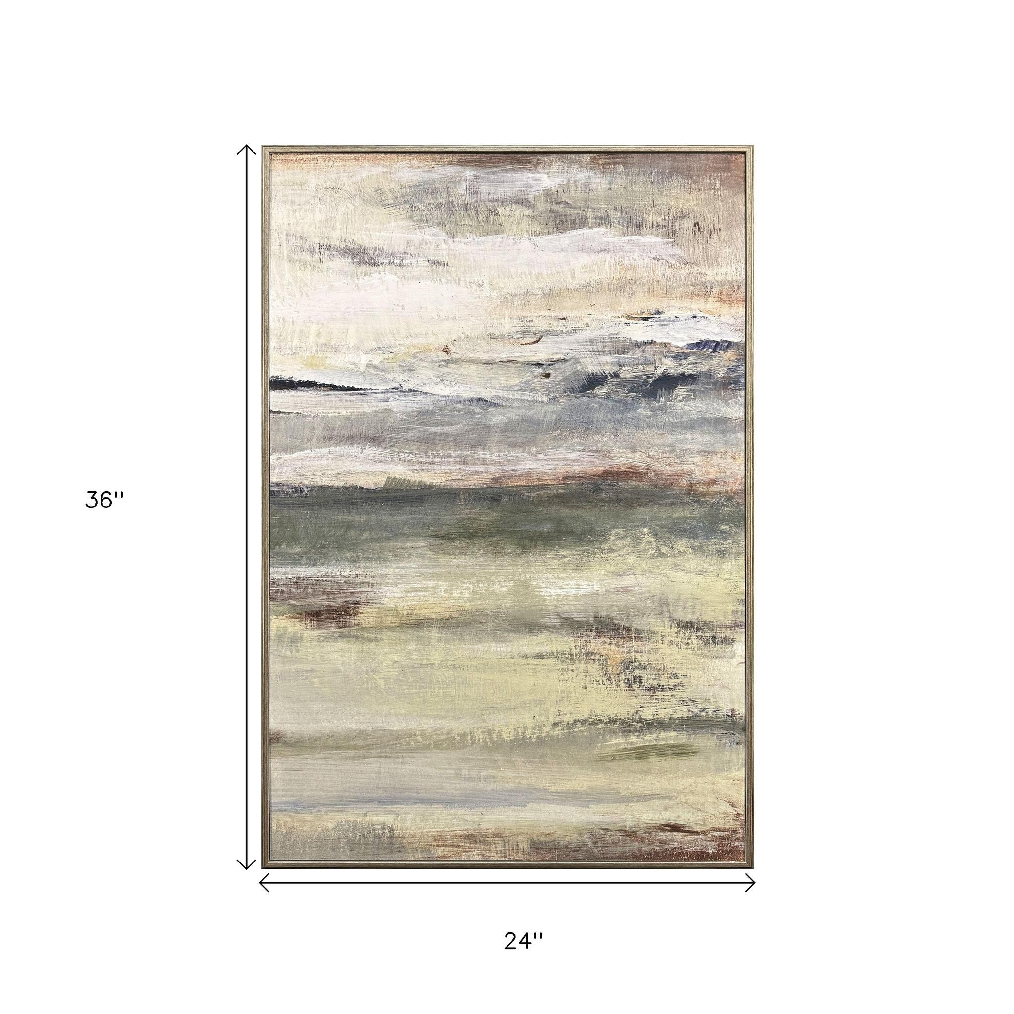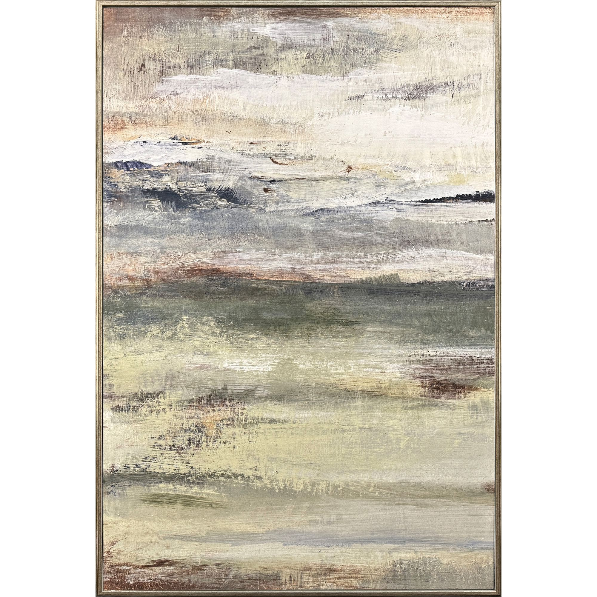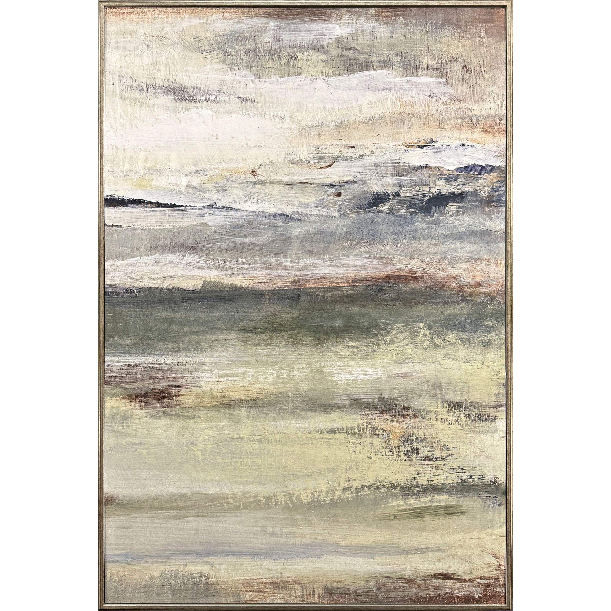 Unique and decorative, this the land breathes ii distressed silver framed wall art will leave a lasting impression. This block print is a way to express your artistic style and add some fashion to your walls. Reproduced for you on paper, this hanging decorative accent will be a trendy and fashionable way to dress your walls. Hang on your wall to add some up to date fashion and decoration. Instantly liven up your space with this art that brings color and dimension to your walls. 36.00-inch h x 24.00-inch w x 3.00-inch d.