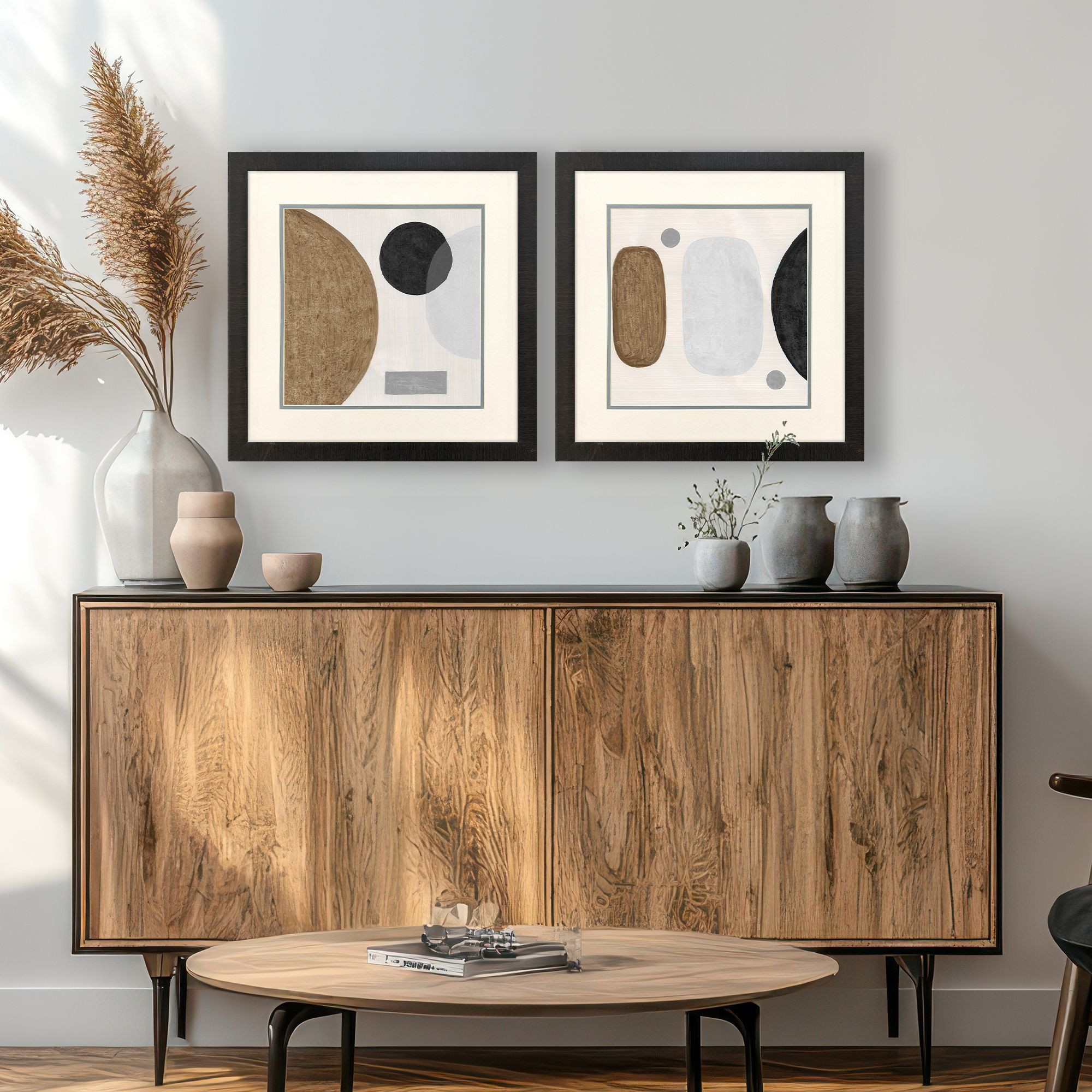 Unique and decorative, this set of two neutral stones brown framed wall art will leave a lasting impression. This block print is a way to express your artistic style and add some fashion to your walls. Reproduced for you on paper, this hanging decorative accent will be a trendy and fashionable way to dress your walls. Adding this hanging wall art to your space to make your room feel more finished and attractive. Utilize this opportunity to create a focal point in the room with this fabulous wall decor option. 18.00-inch h x 18.00-inch w x 2.00-inch d.